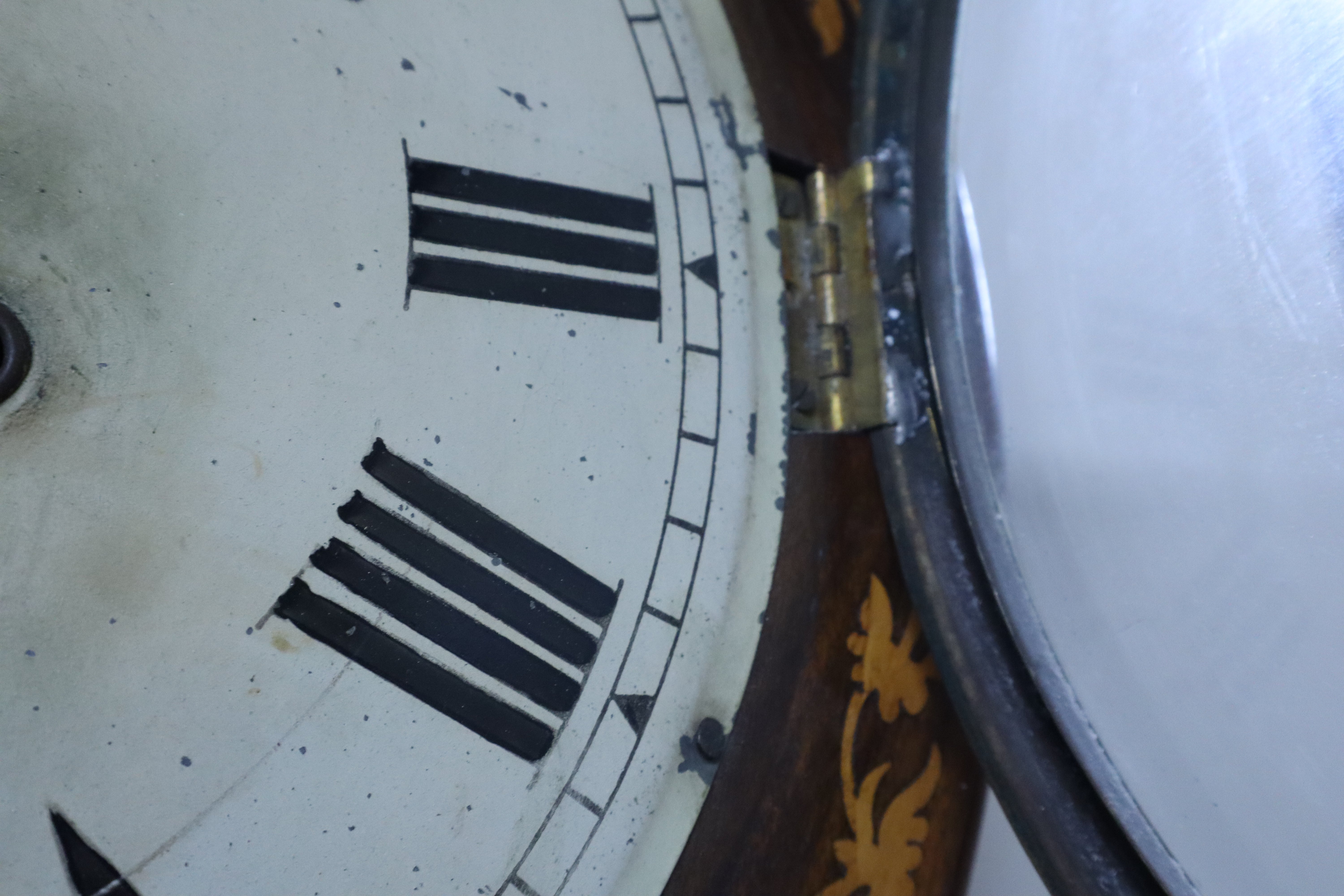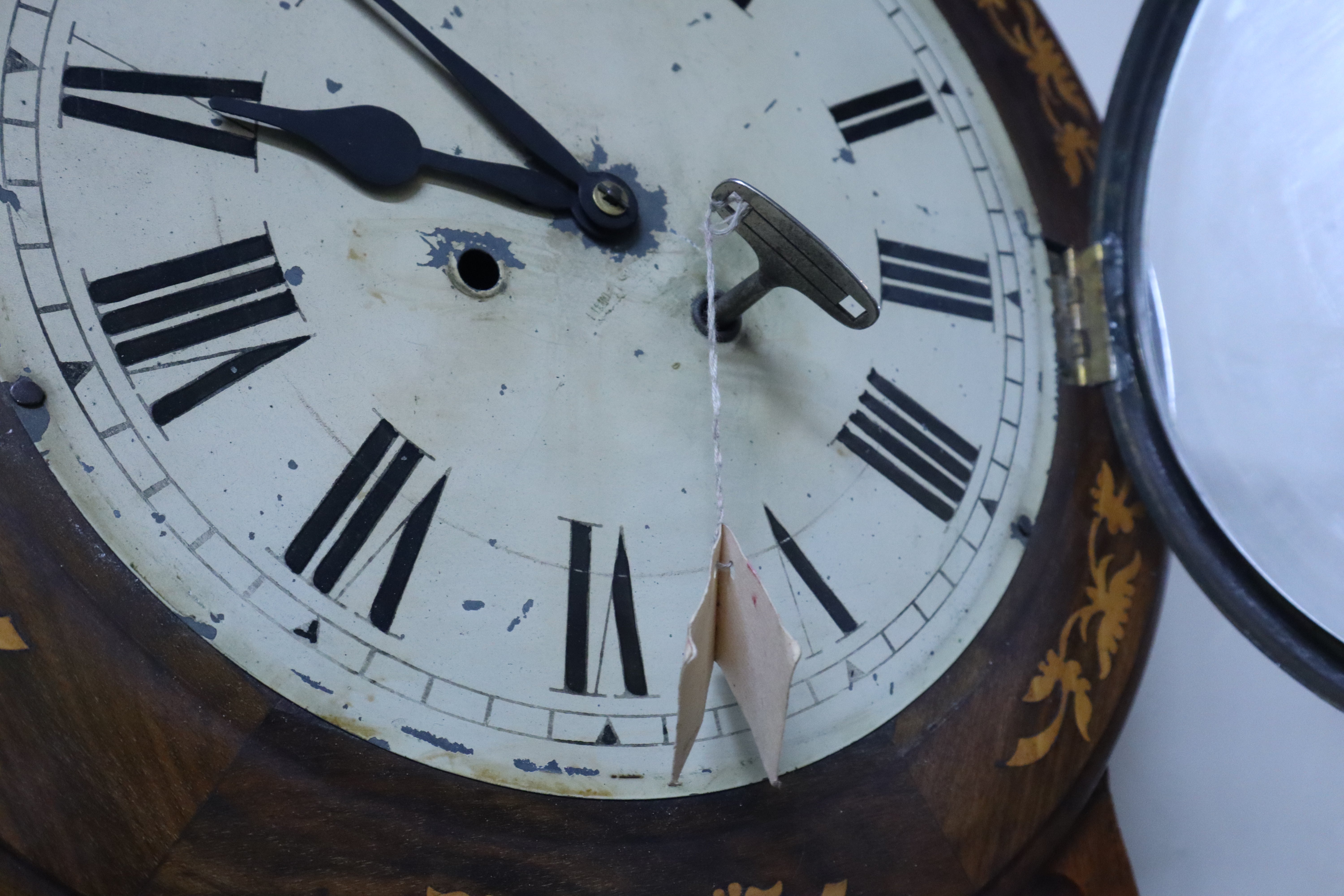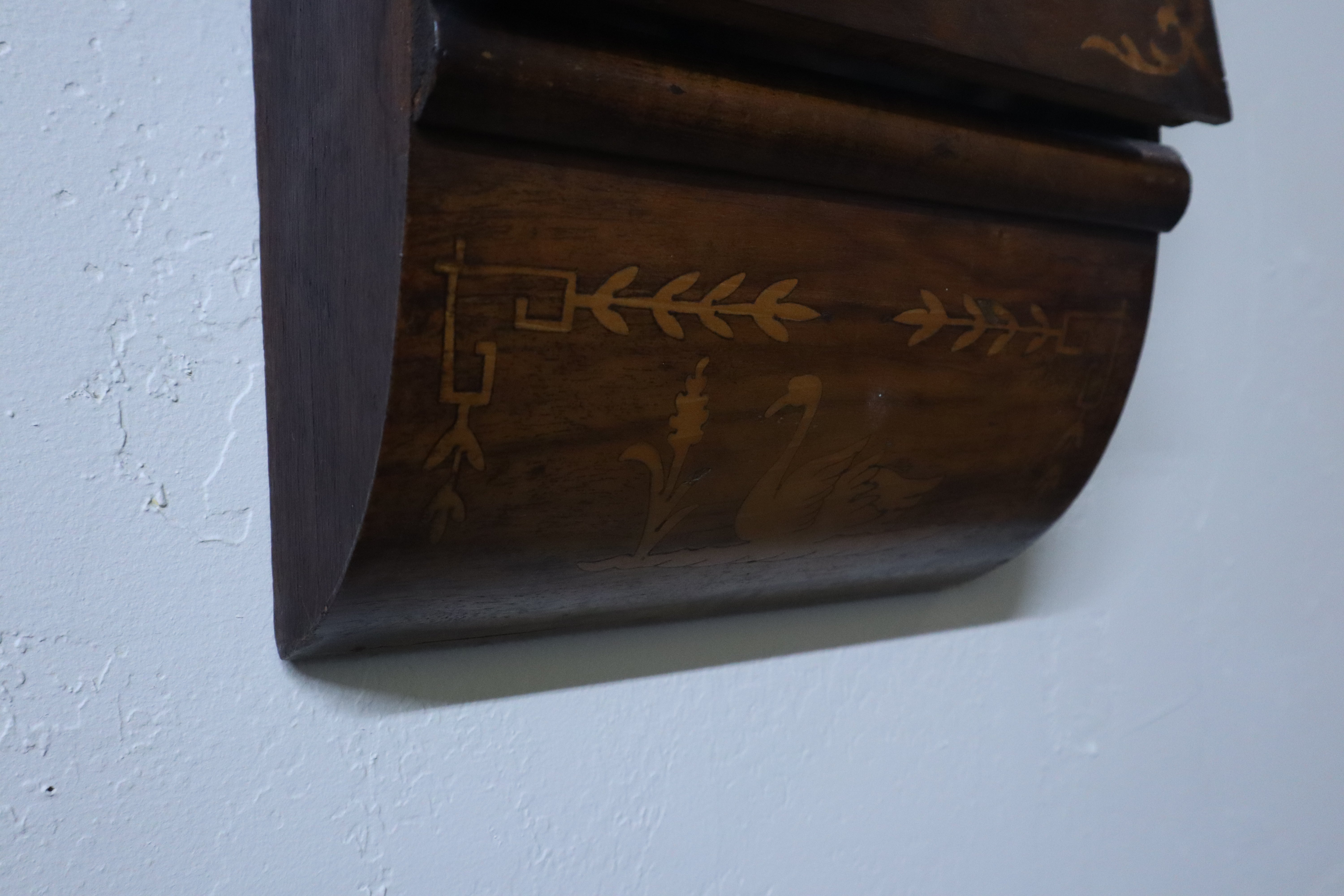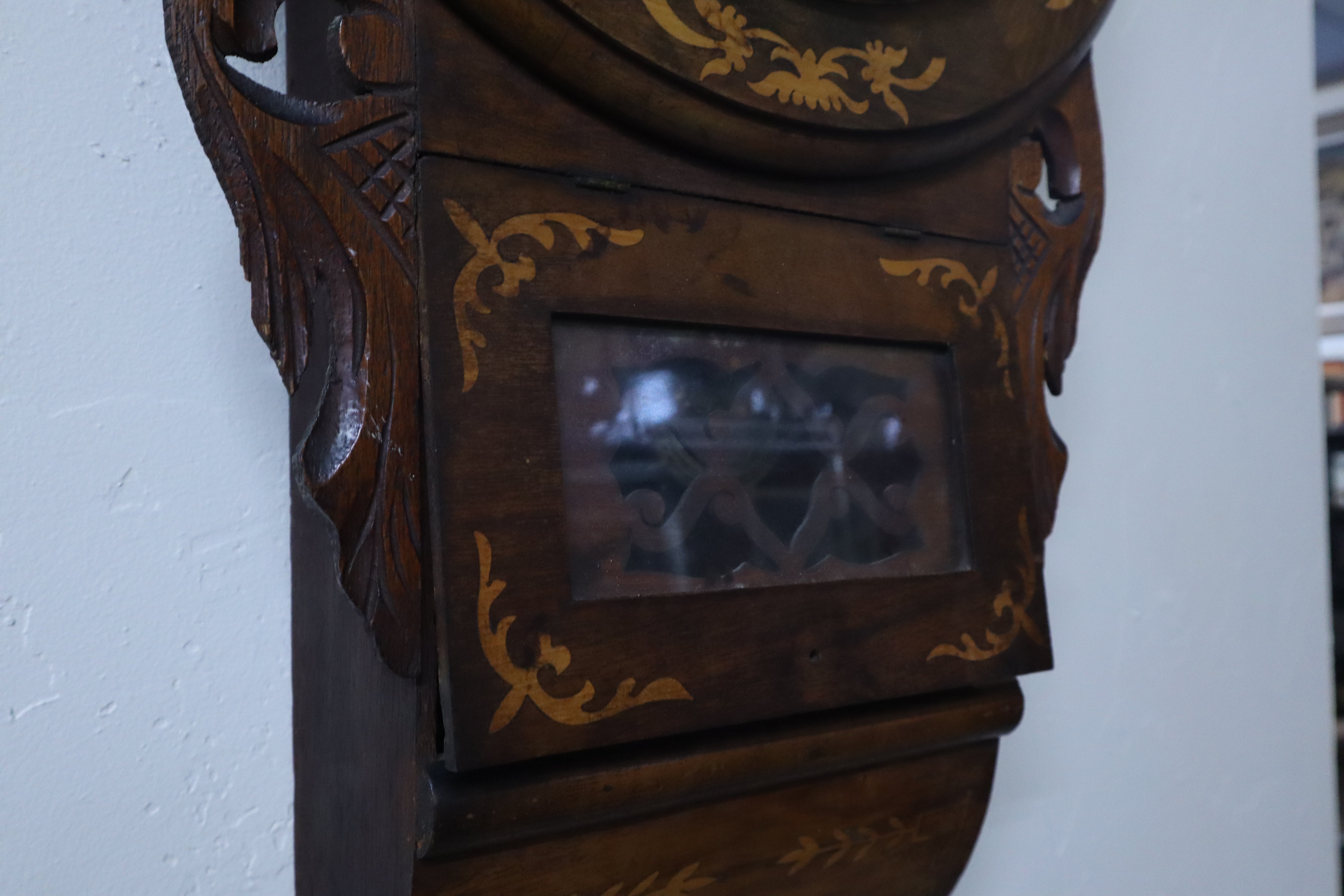 19th Century Marquetry Wall Clock with Wood Inlay & Original Key