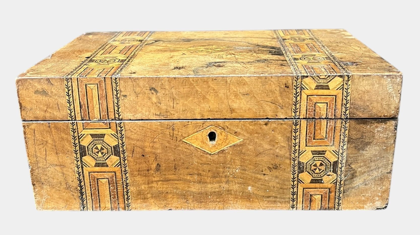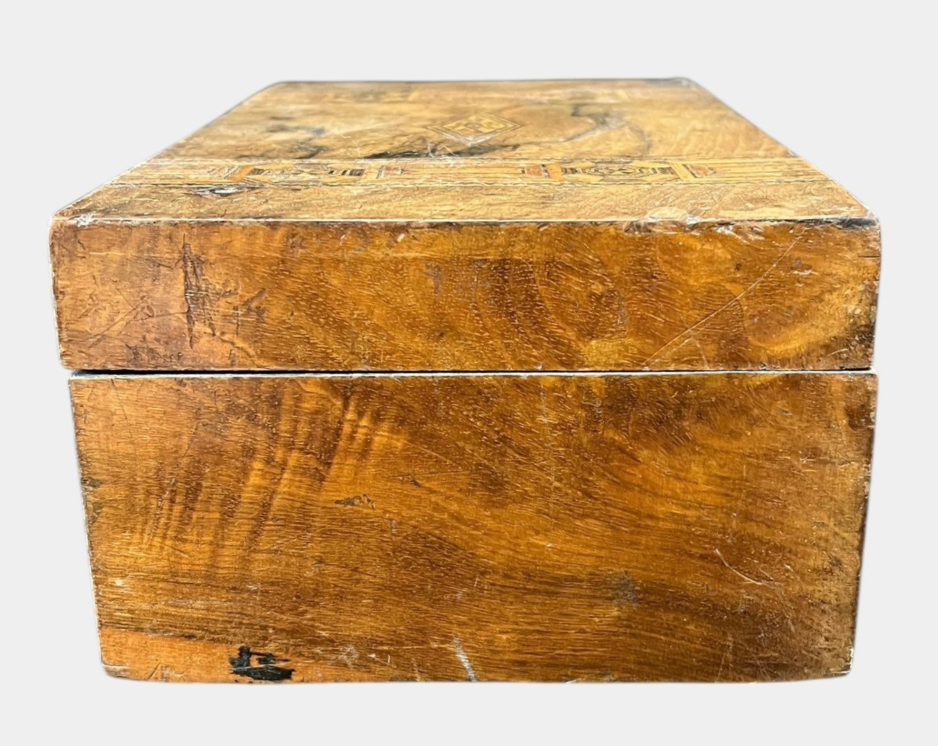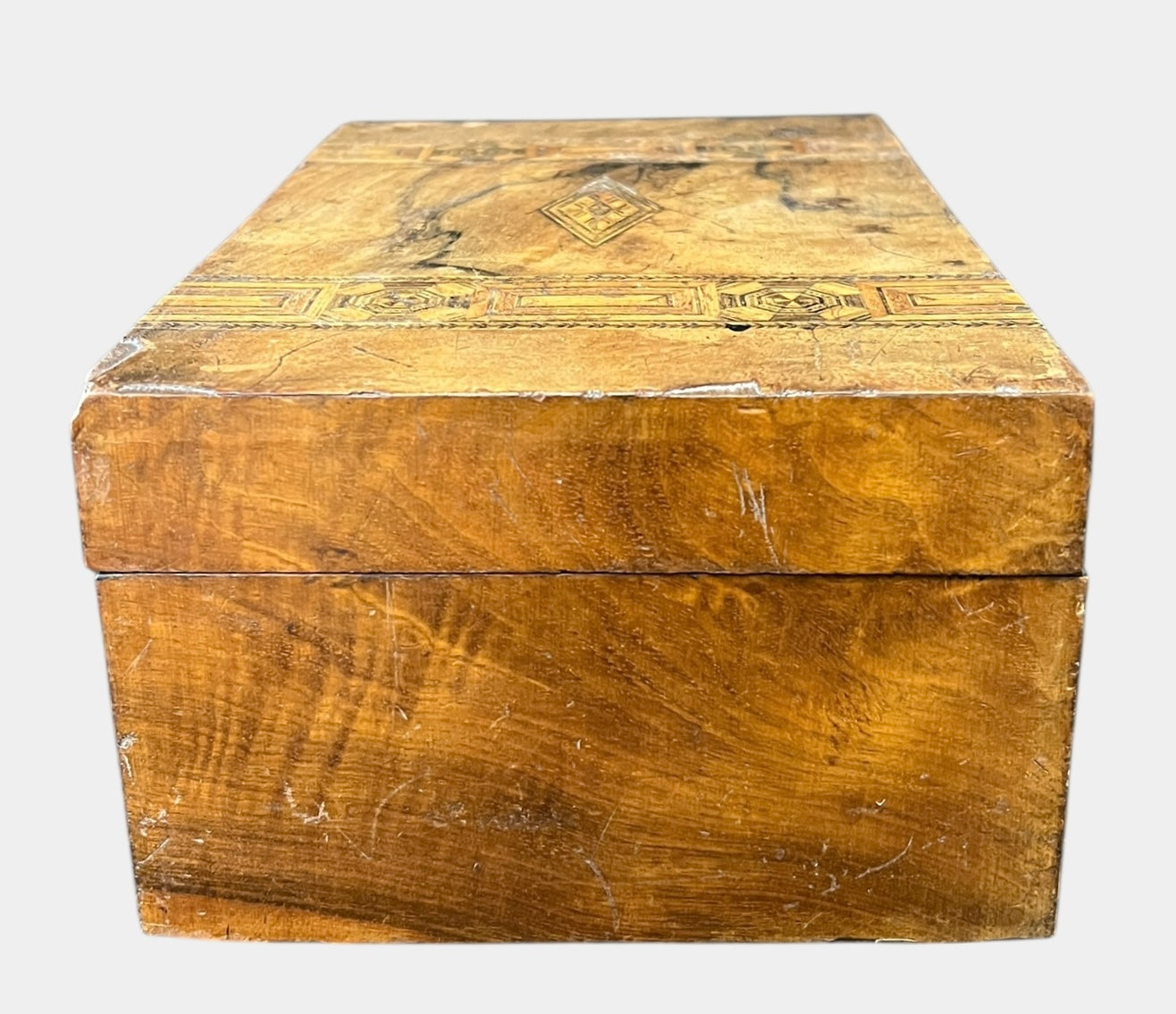 Antique Beautiful 19th C Walnut Burl w/ Wood Inlay Trinket or Jewelry Box