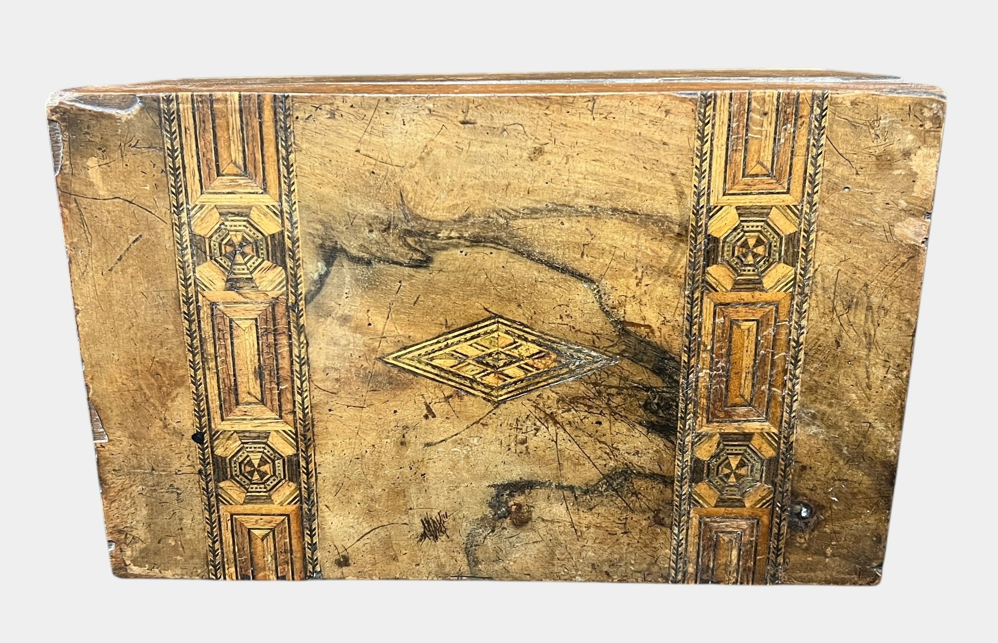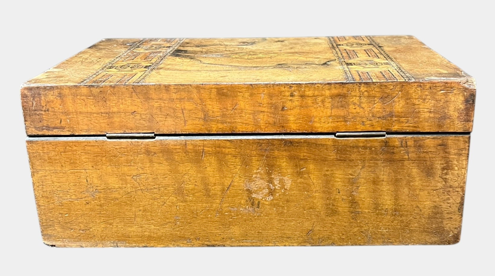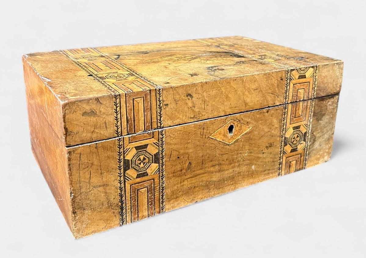Antique Beautiful 19th C Walnut Burl w/ Wood Inlay Trinket or Jewelry Box