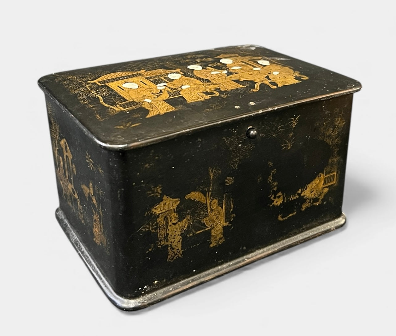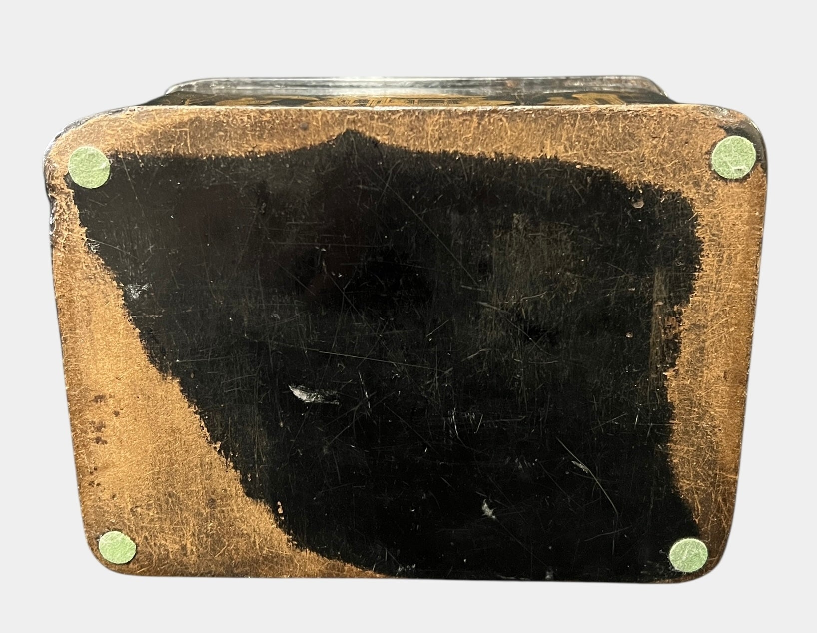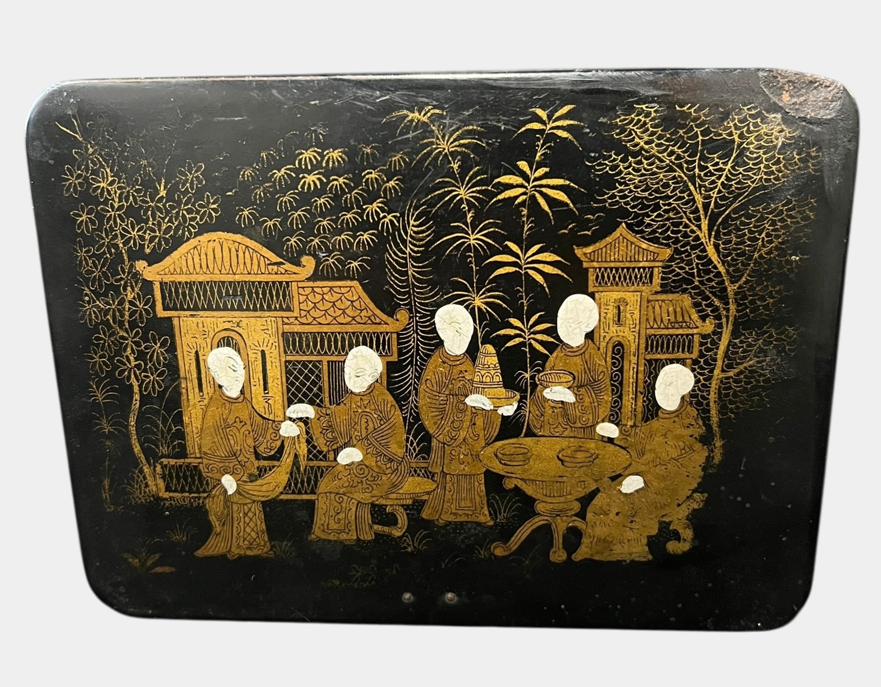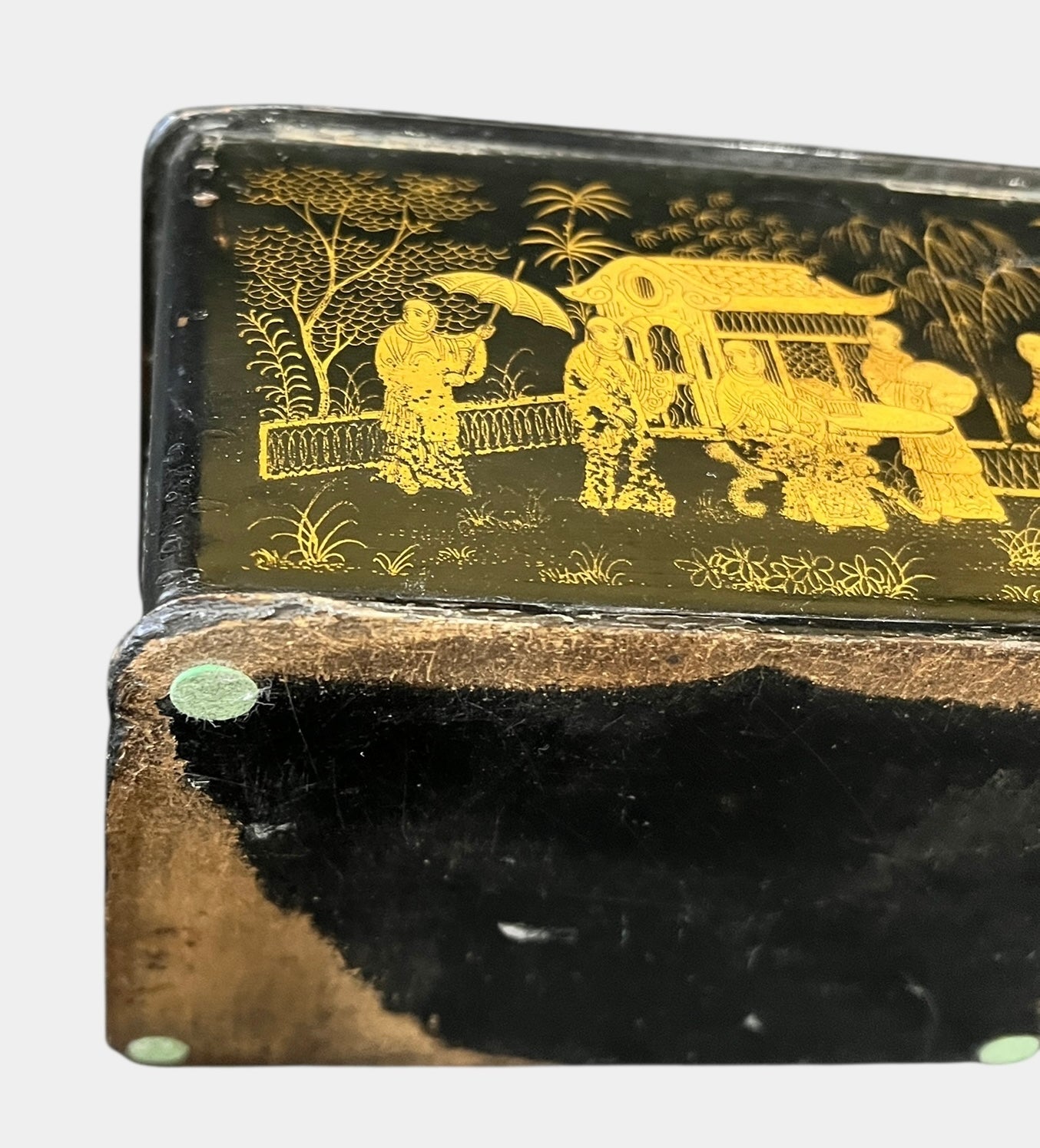 Antique 19th C Chinese Export Gilt Lacquer Black and Gold Tea Caddy Box