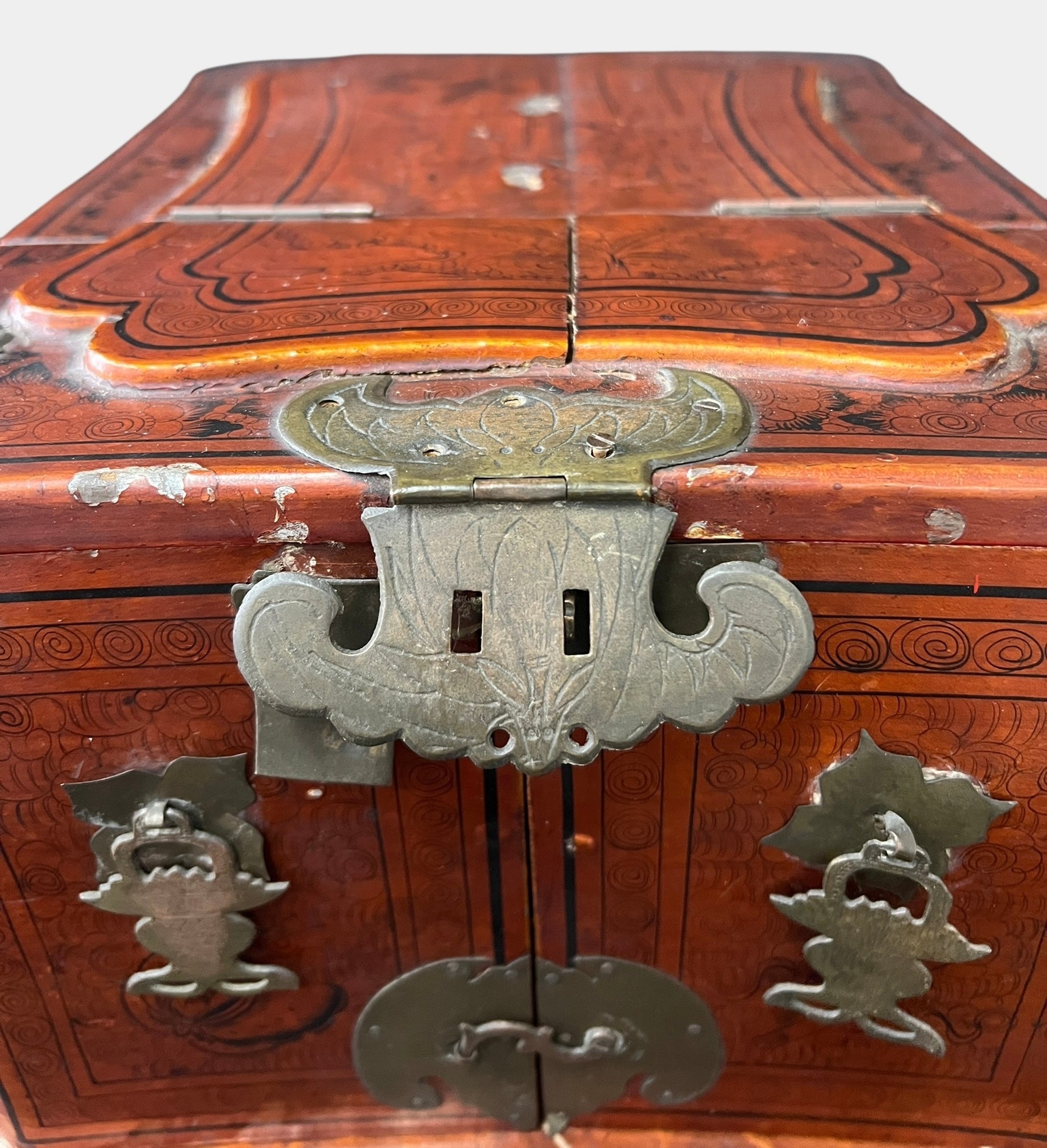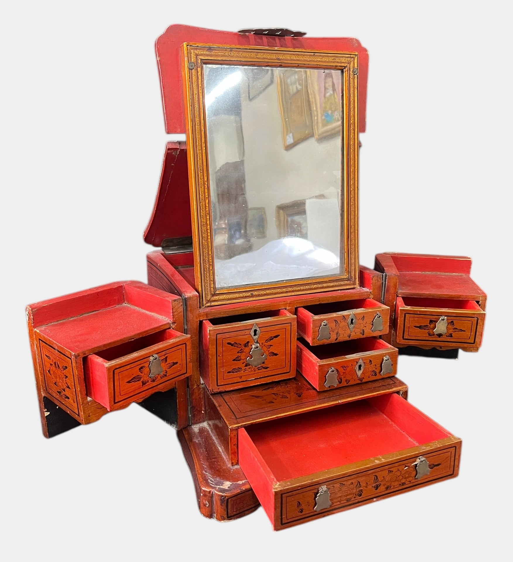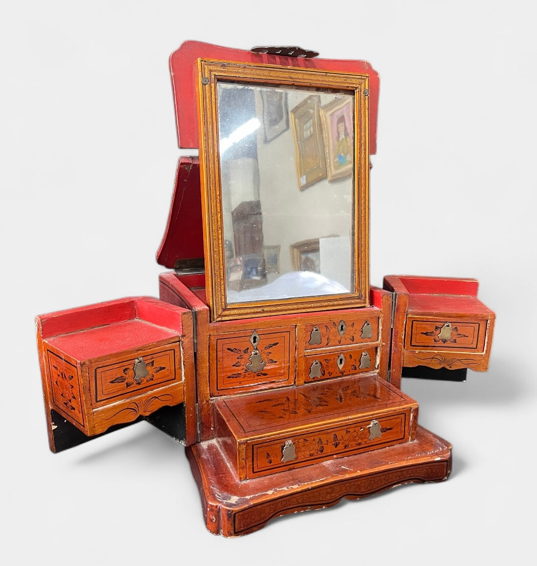 ANTIQUE 19th C Chinese Qing Dynasty Hand-Painted Jewelry Box w/ Mirror