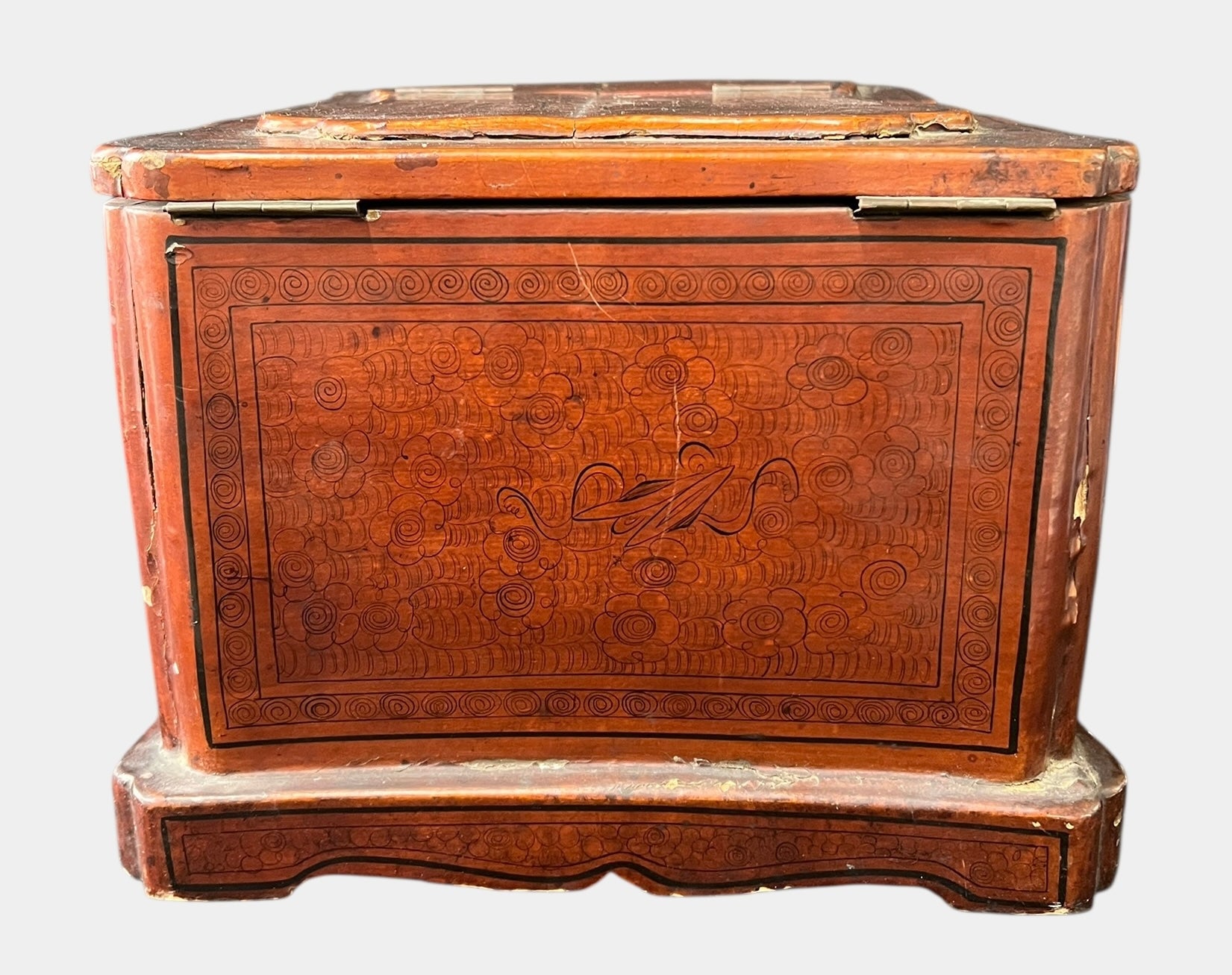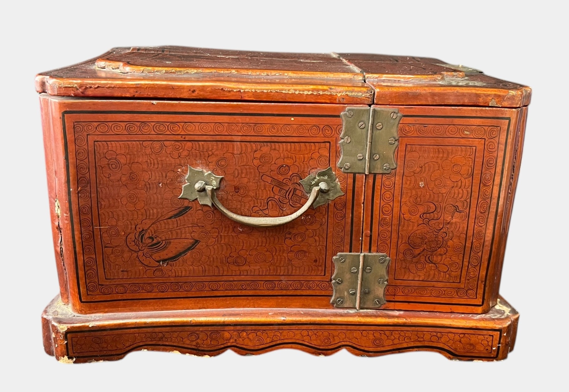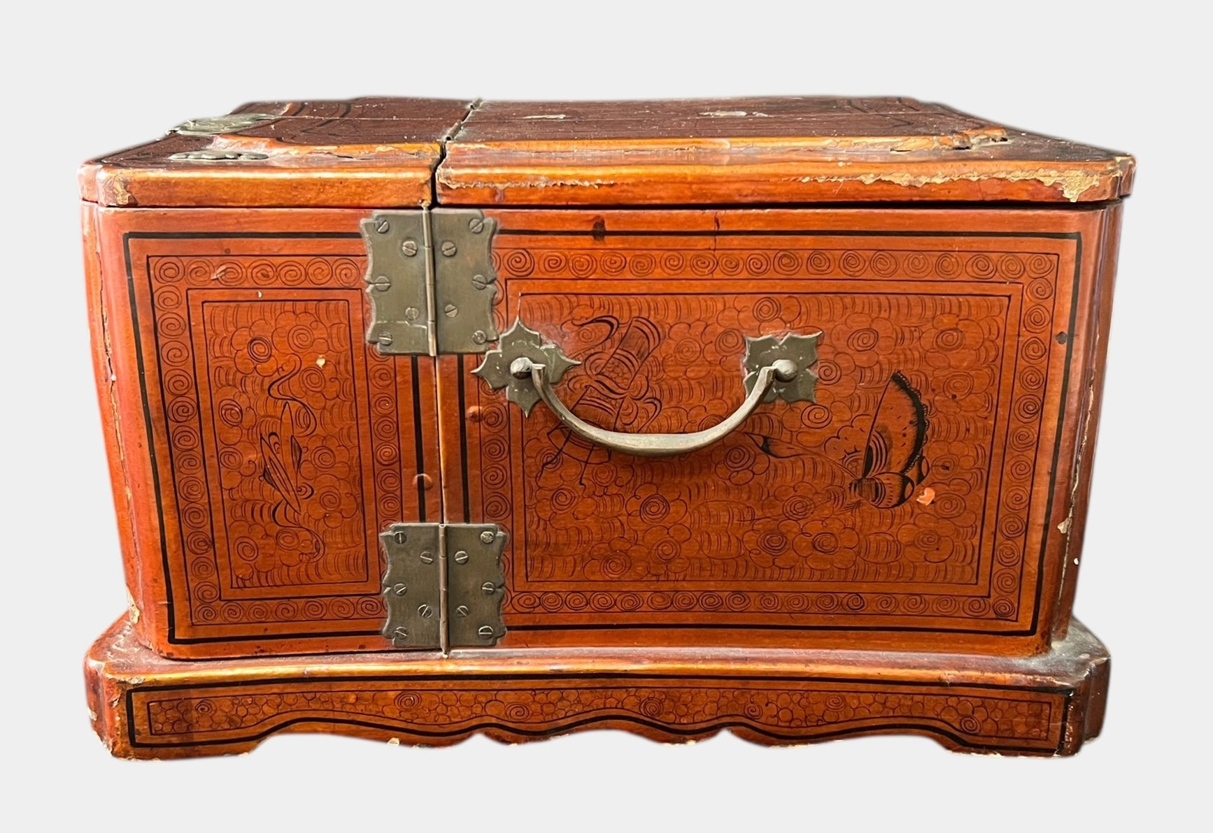 ANTIQUE 19th C Chinese Qing Dynasty Hand-Painted Jewelry Box w/ Mirror