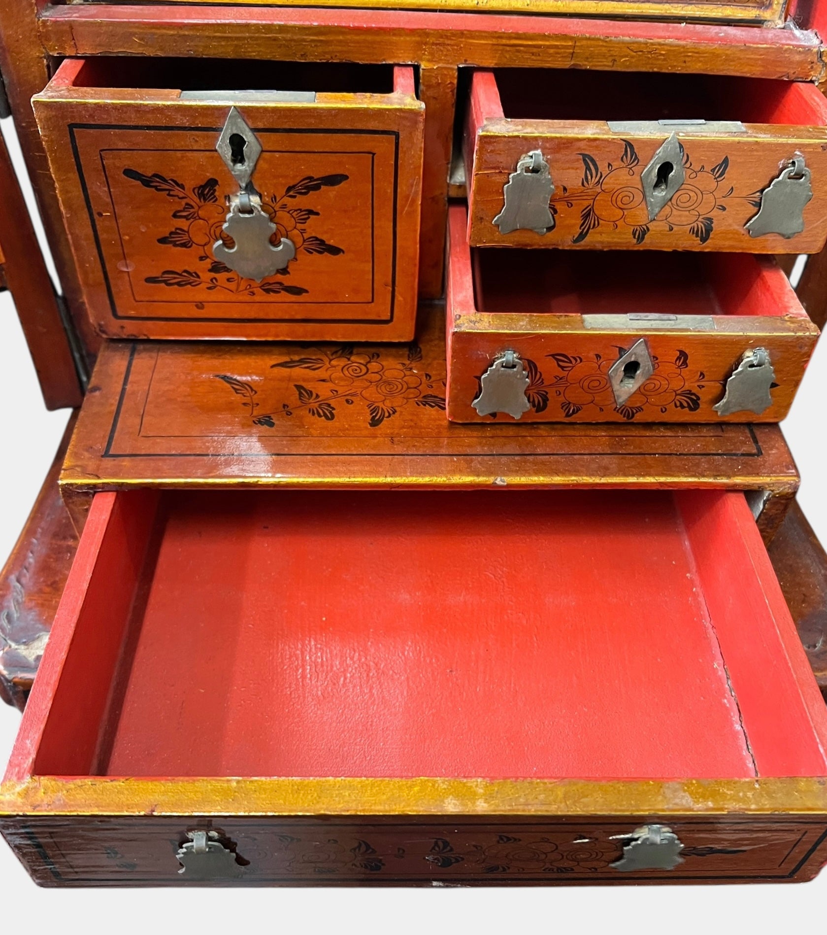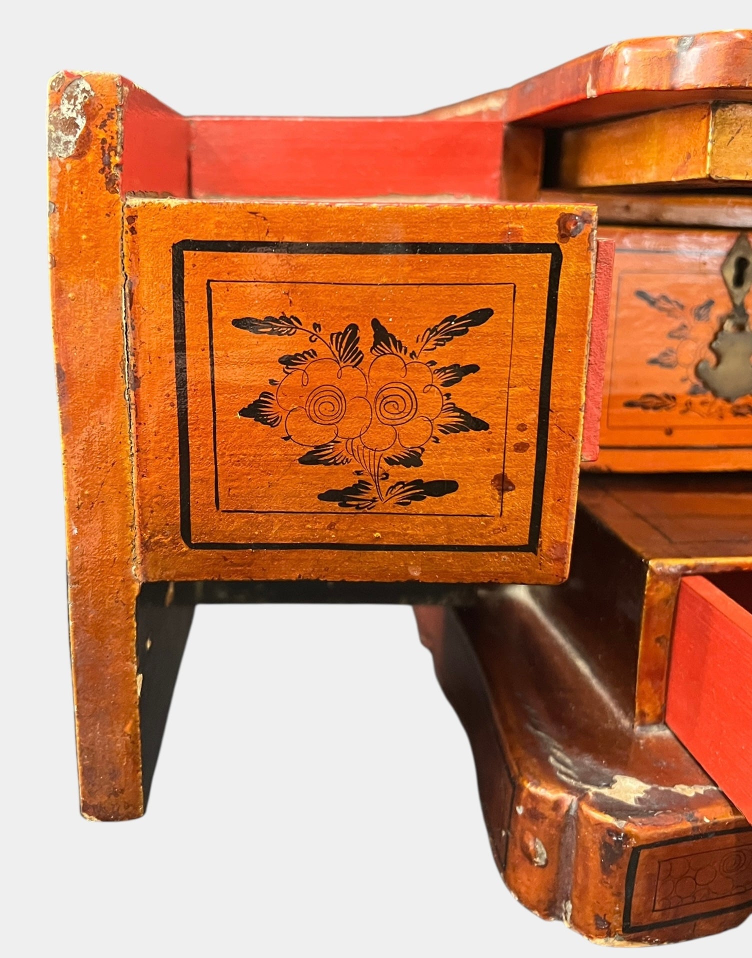 Has a beautiful floral pattern on the sides and fronts of the drawers.