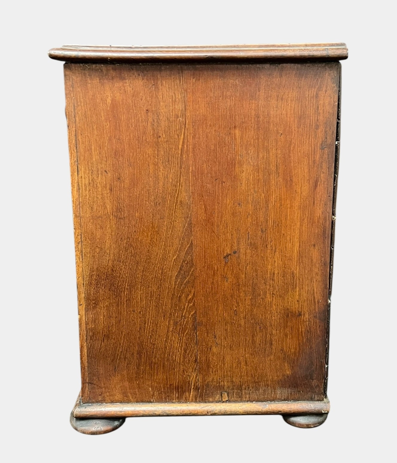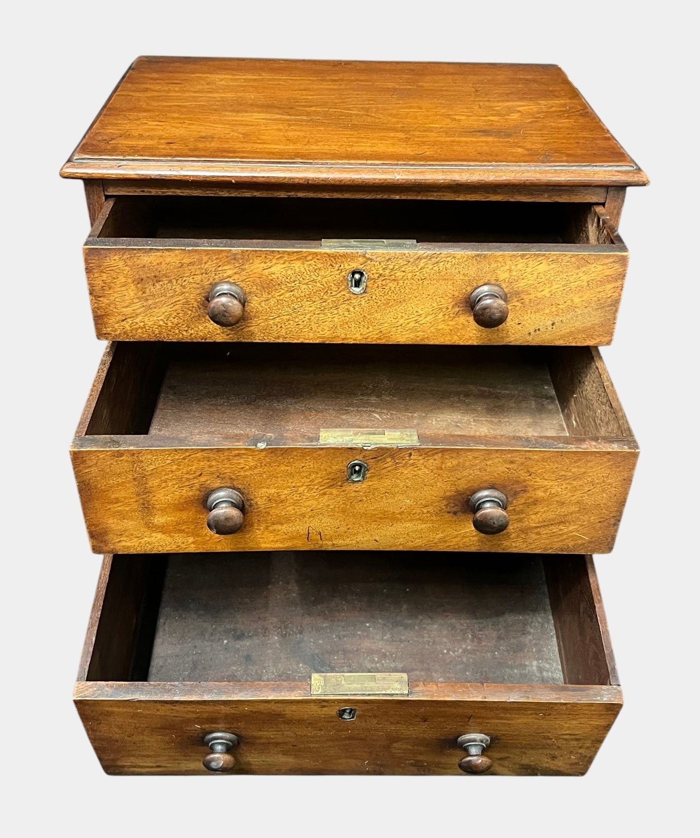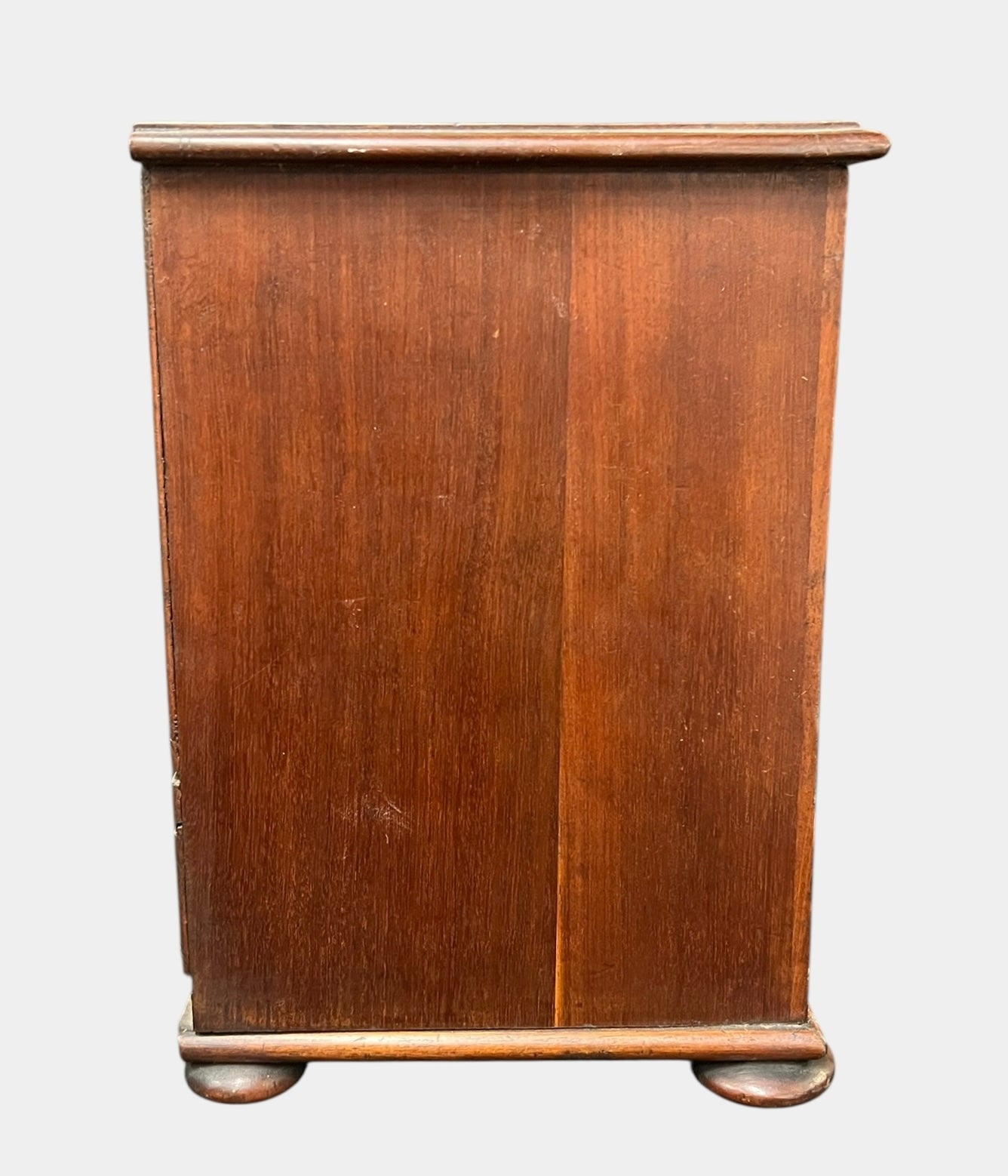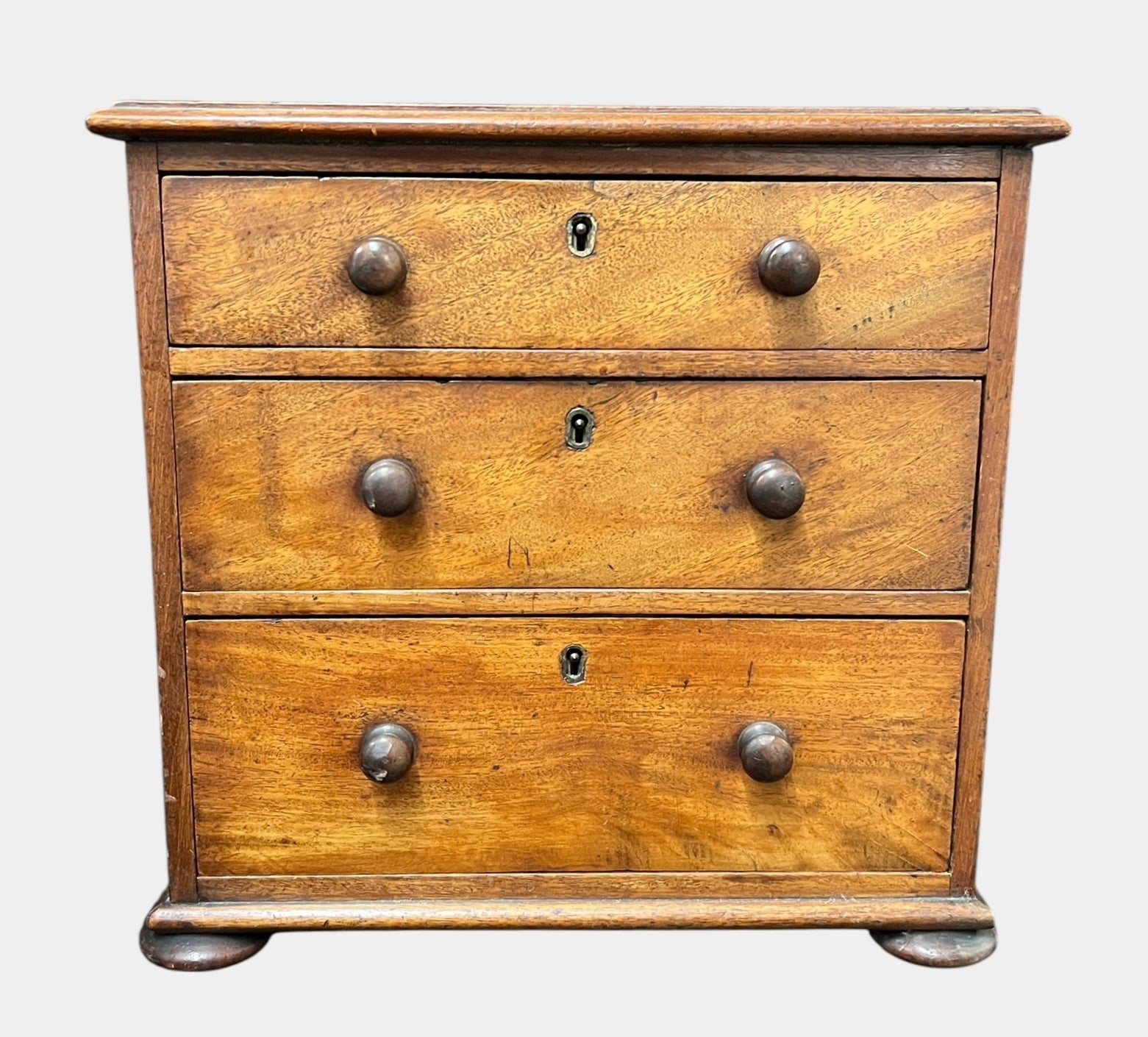 ANTIQUE 19th Century Mahogany Miniature Chest of Drawers w/ Bun Feet & Key