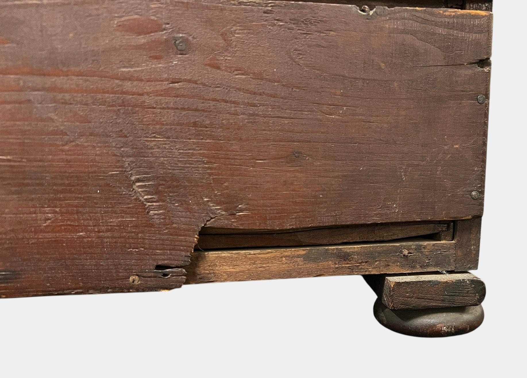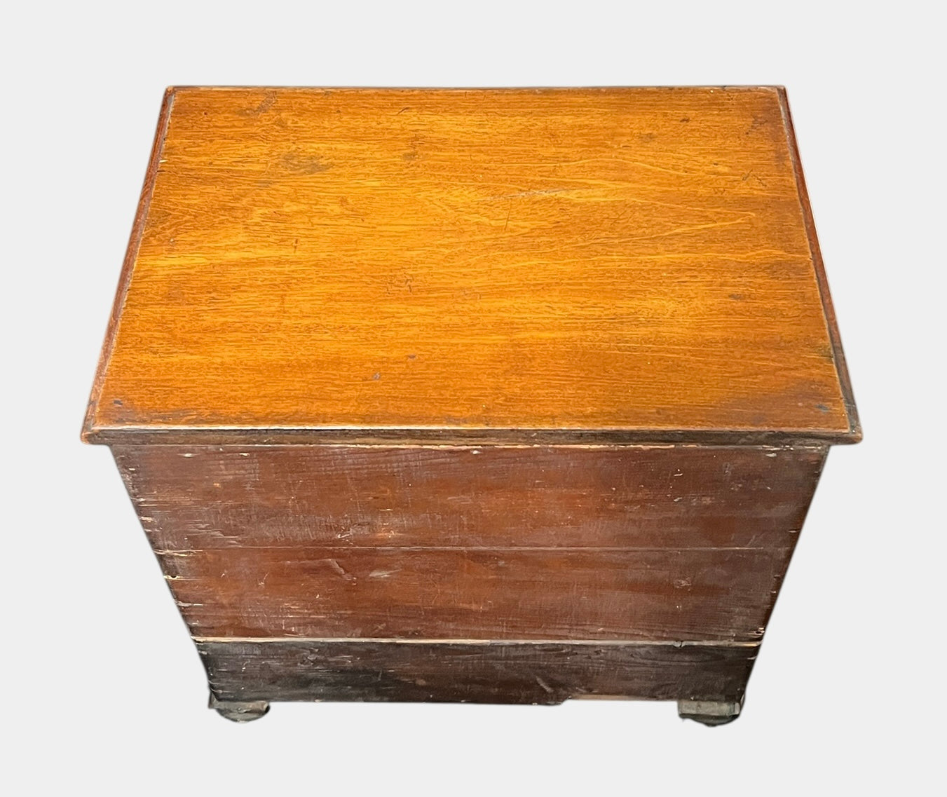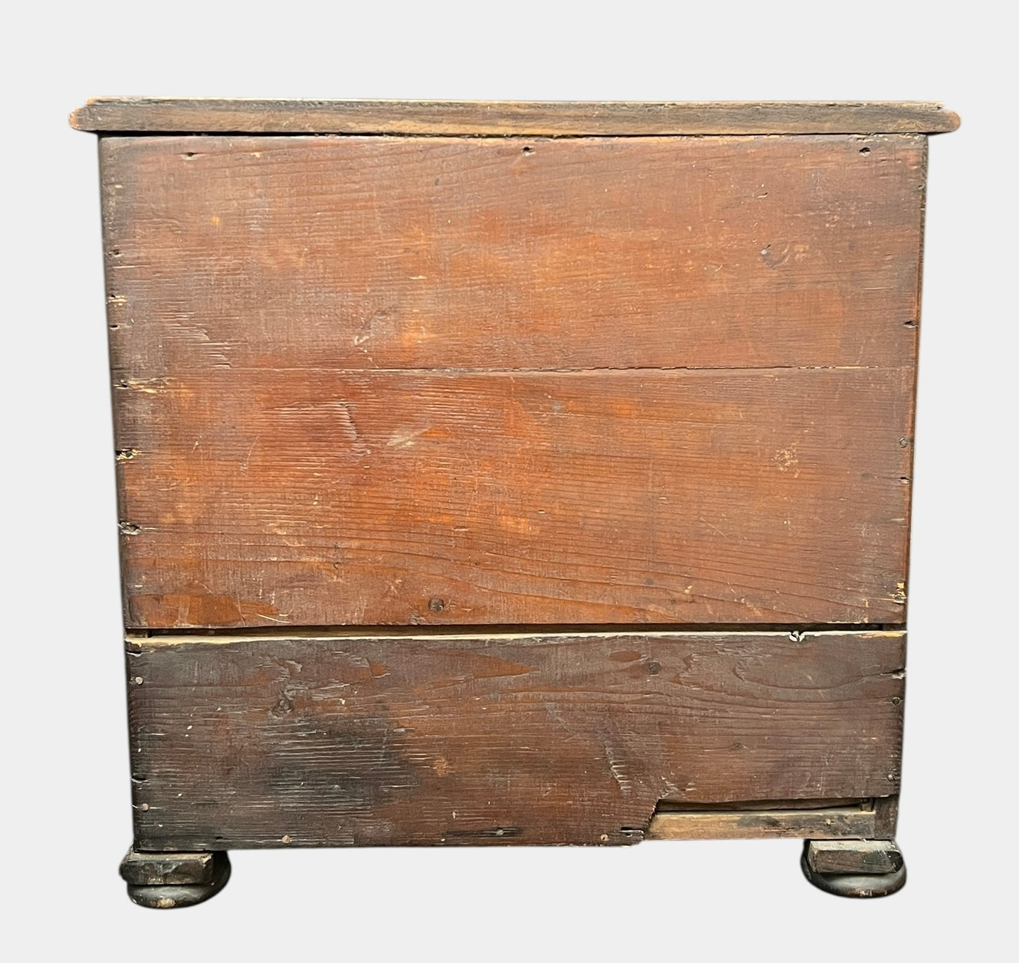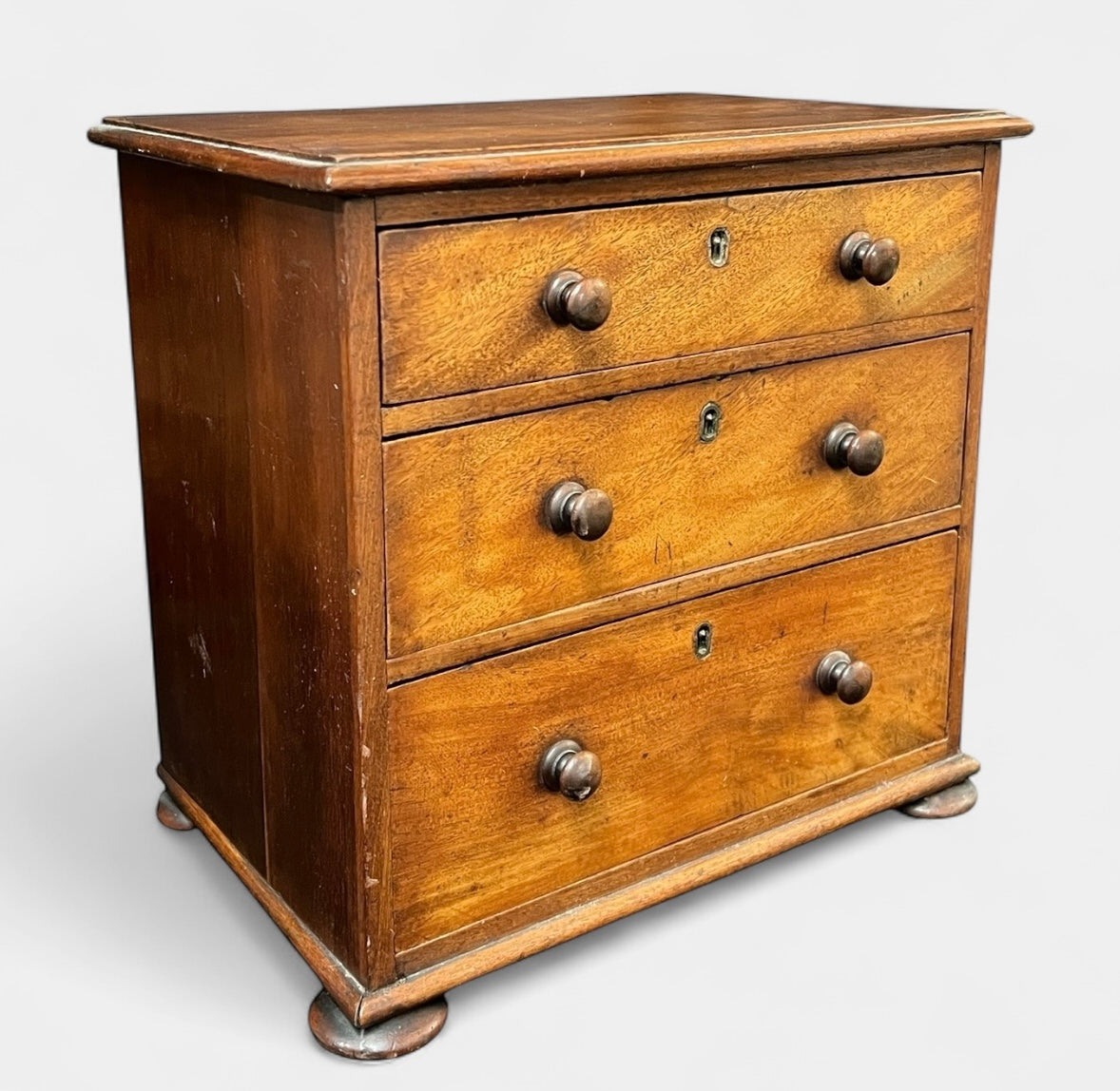ANTIQUE 19th Century Mahogany Miniature Chest of Drawers w/ Bun Feet & Key