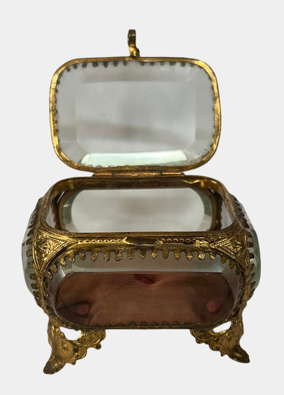 Antique 19th or 20th C Beveled French Royal Jewelry Casket Trinket Box