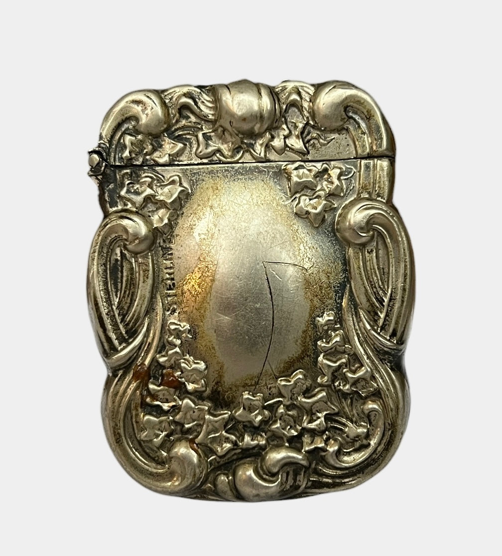 Antique Art Nouveau Late 19th or 20th C 21g Sterling Silver Repousse Match Case