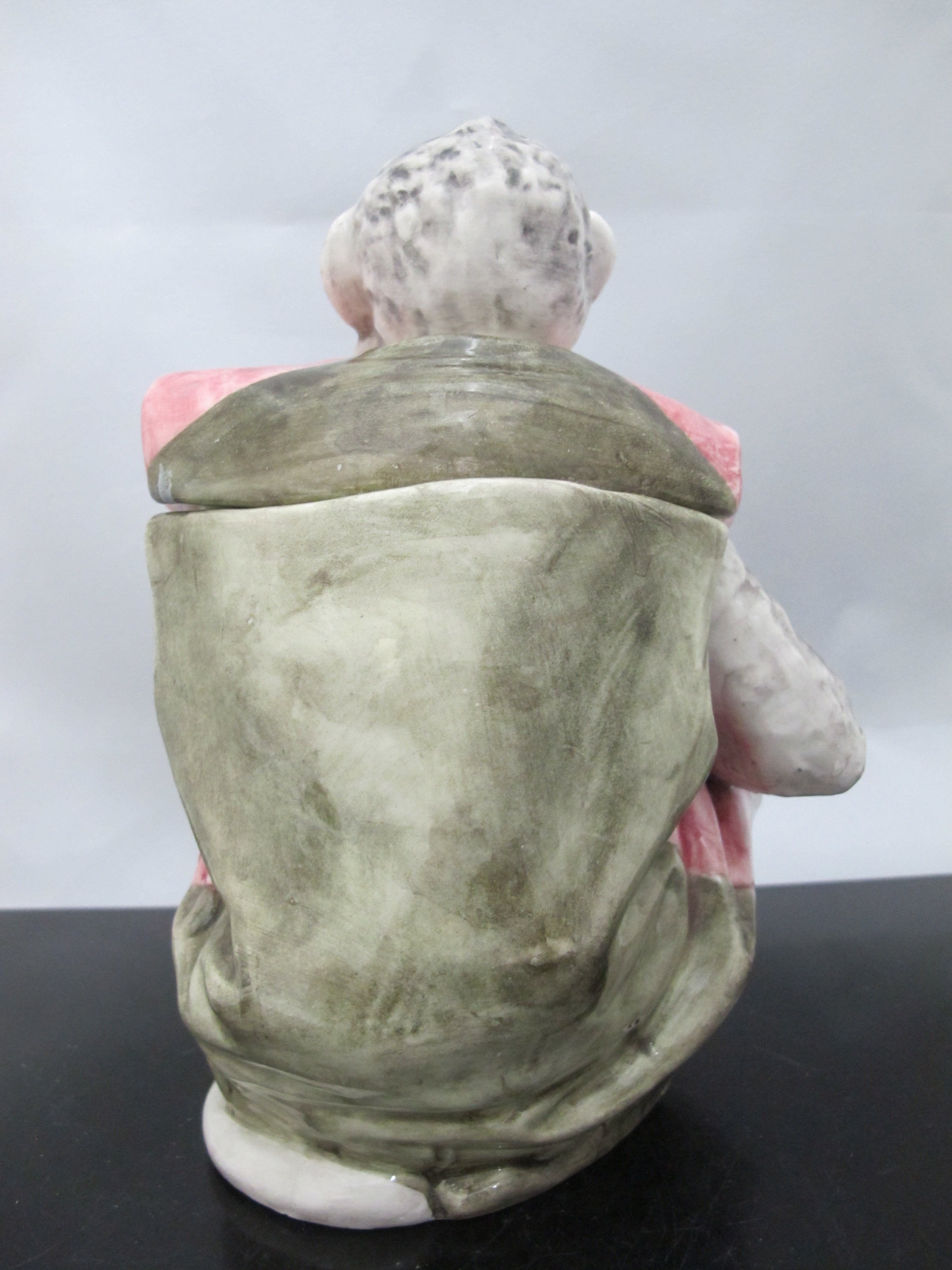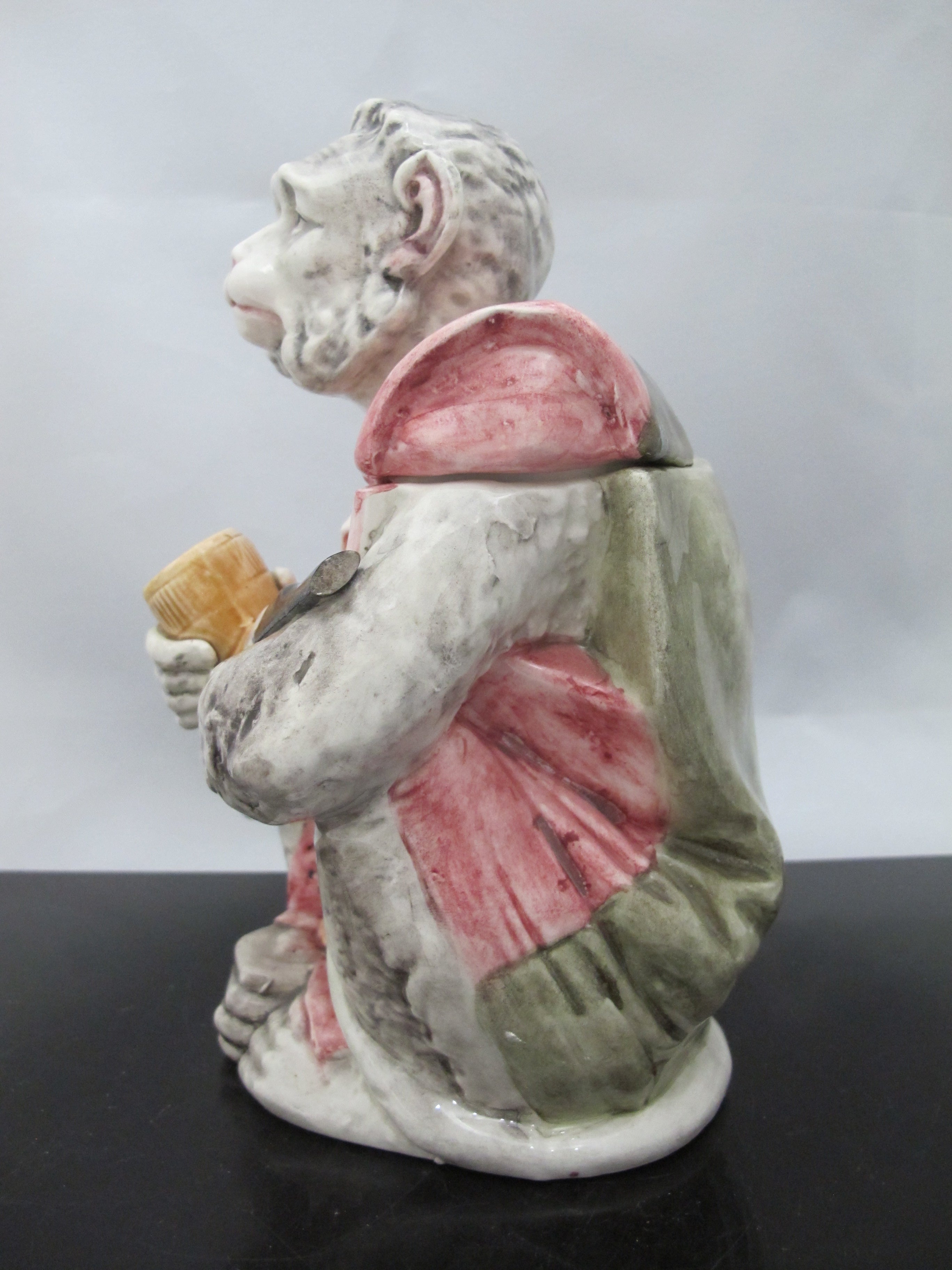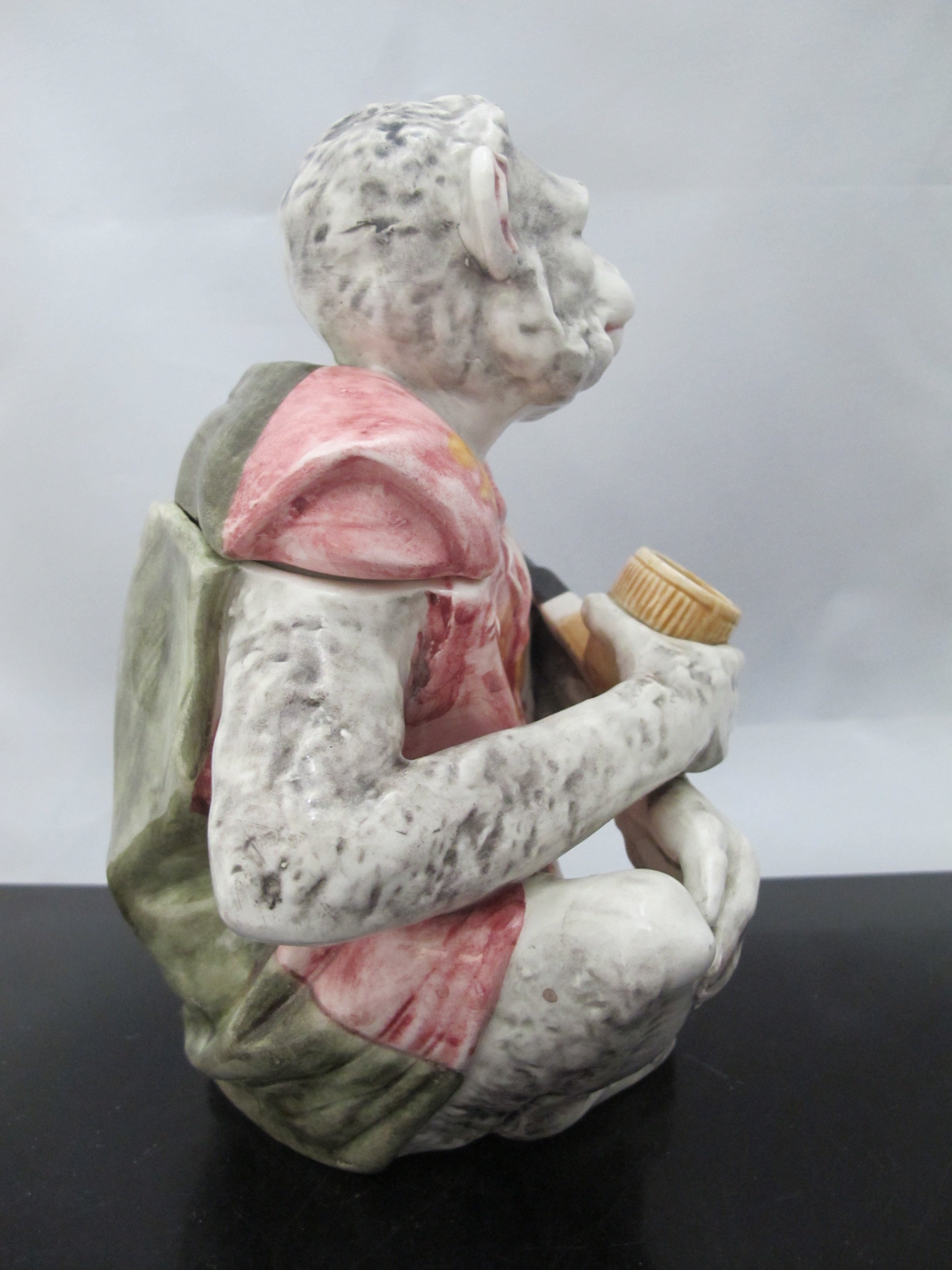 Antique Austria MAJOLICA Pipe Smoking MONKEY Tobacco Humidor Jar w/Lid