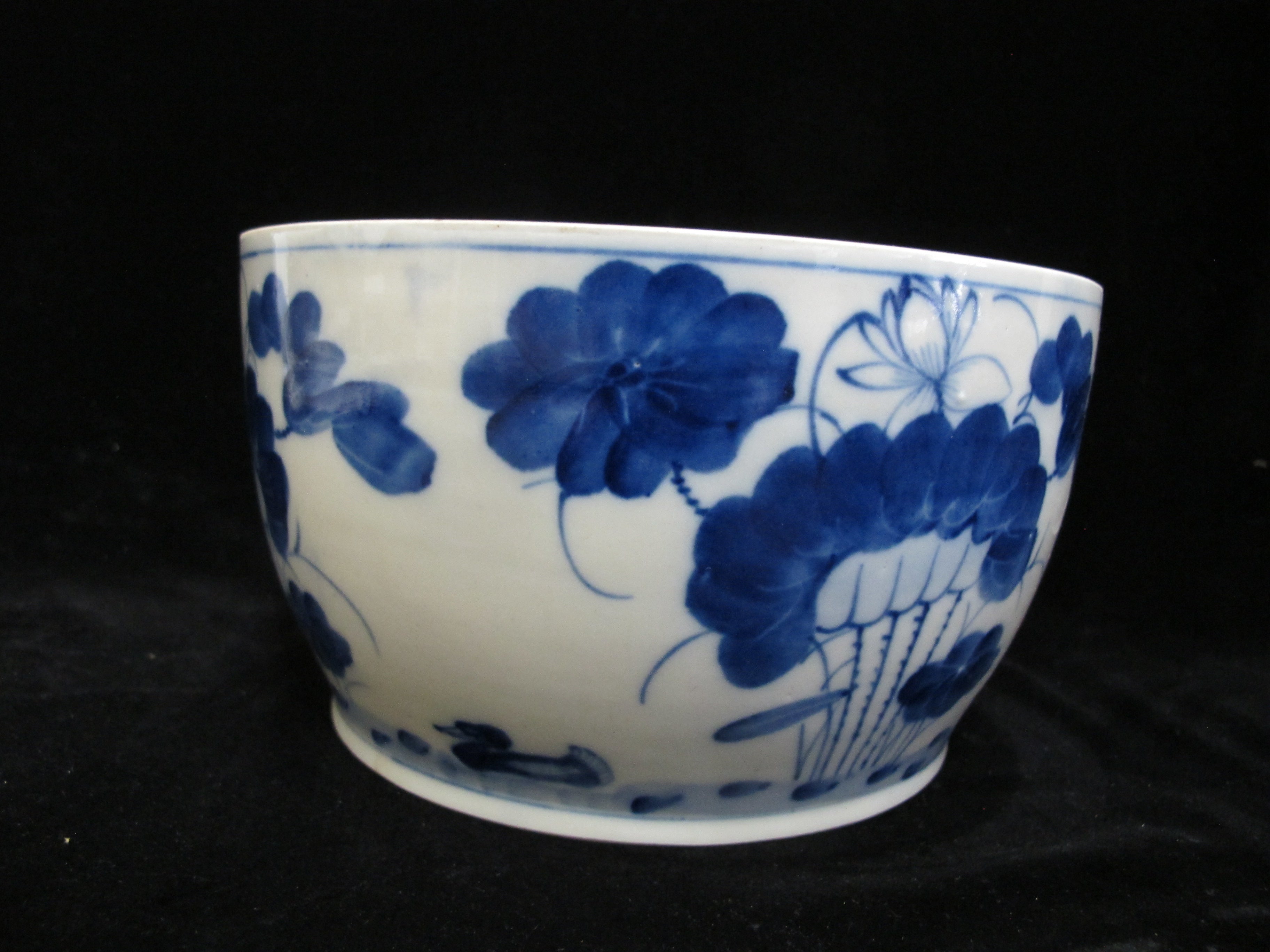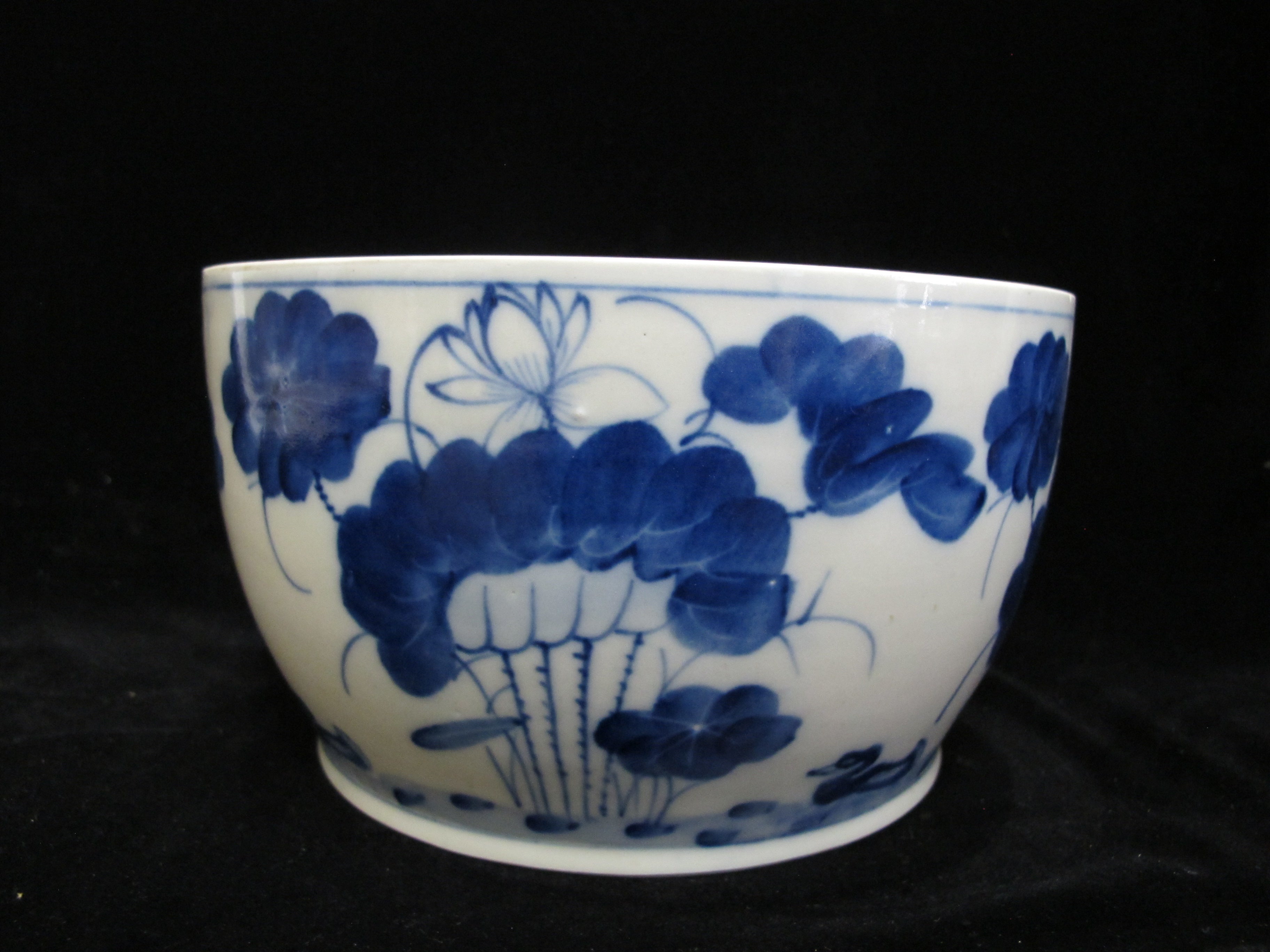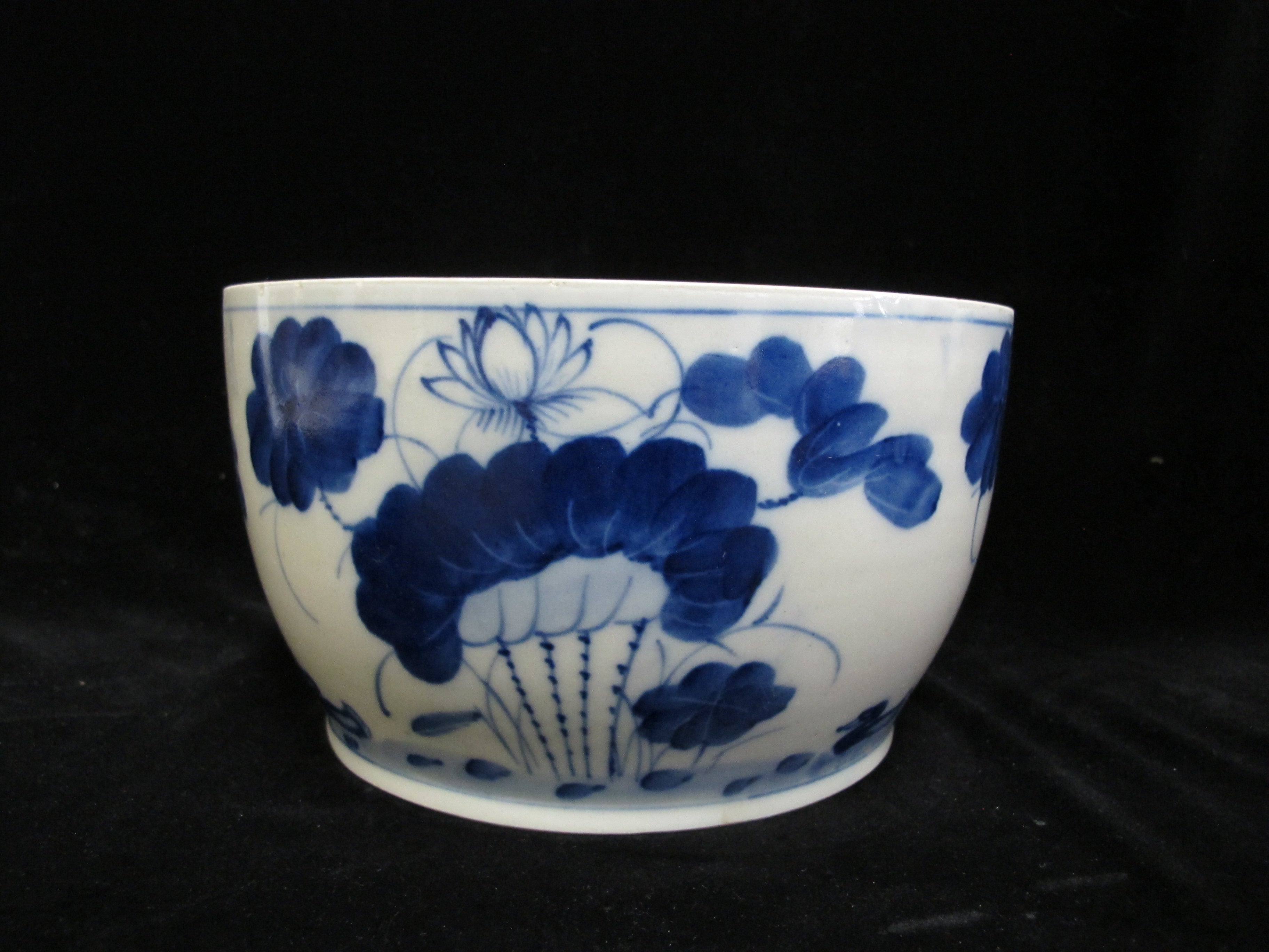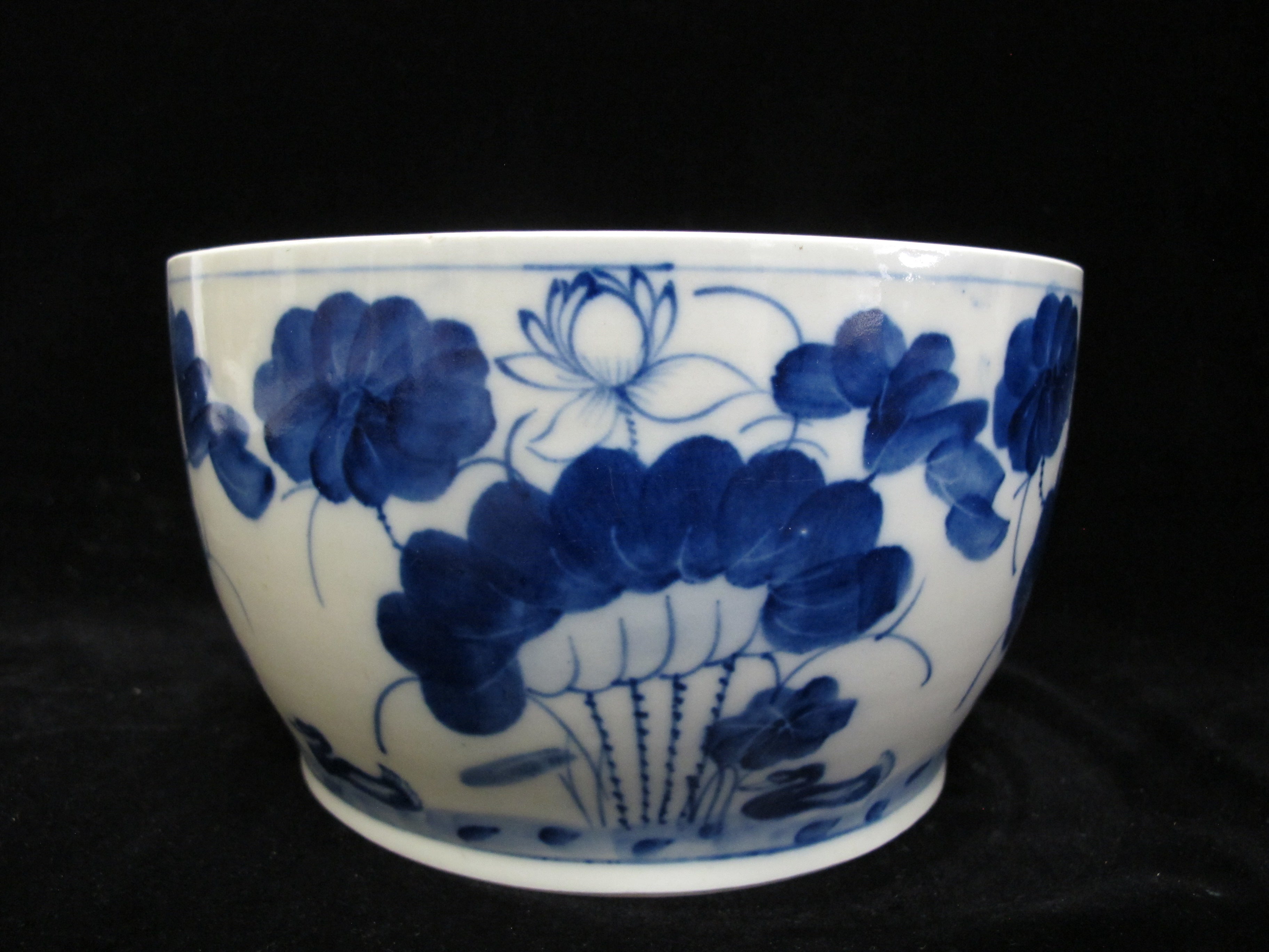 Antique CHINESE Porcelain Blue & White LOTUS Flower GINGER Jar or Planter