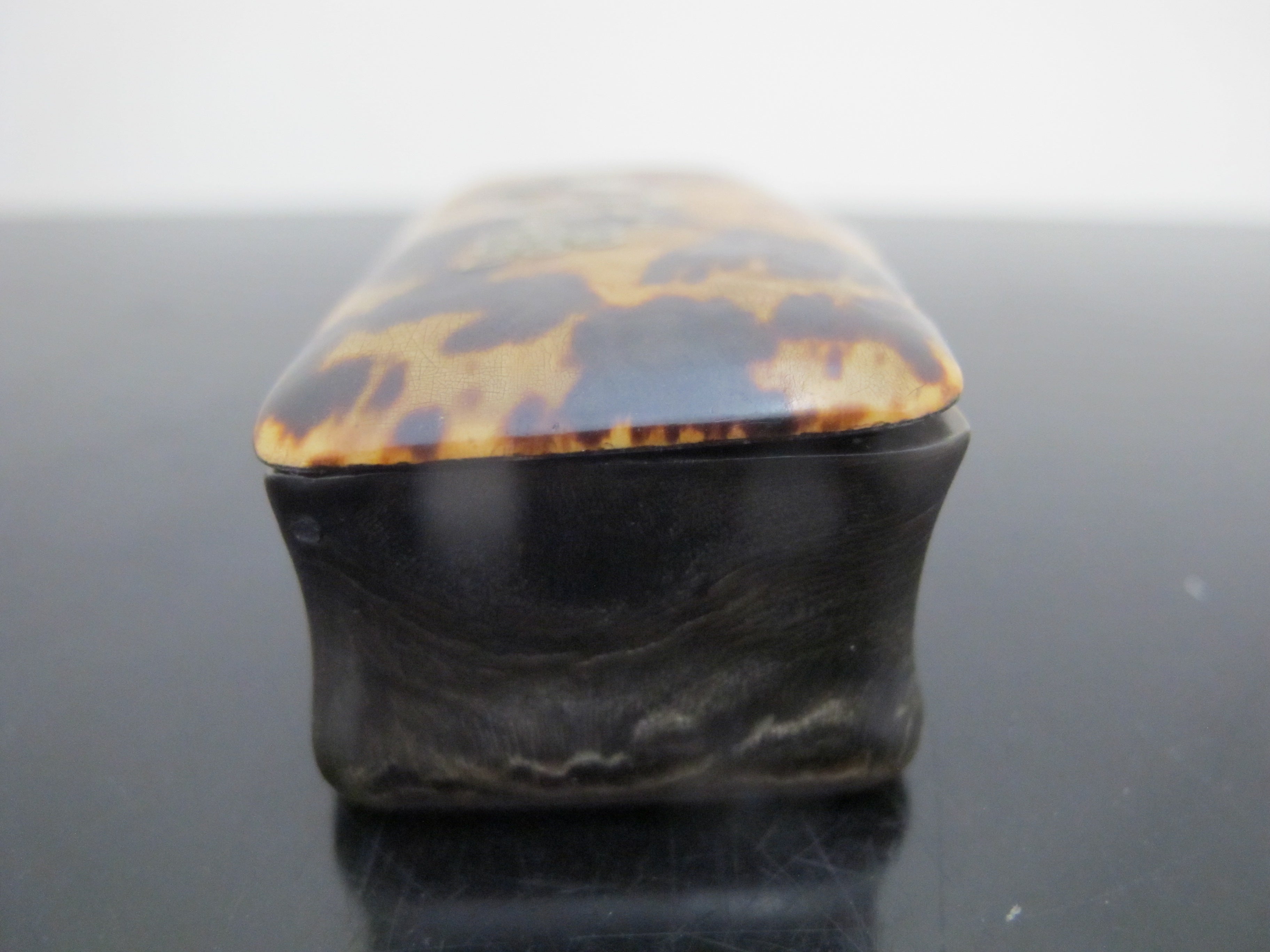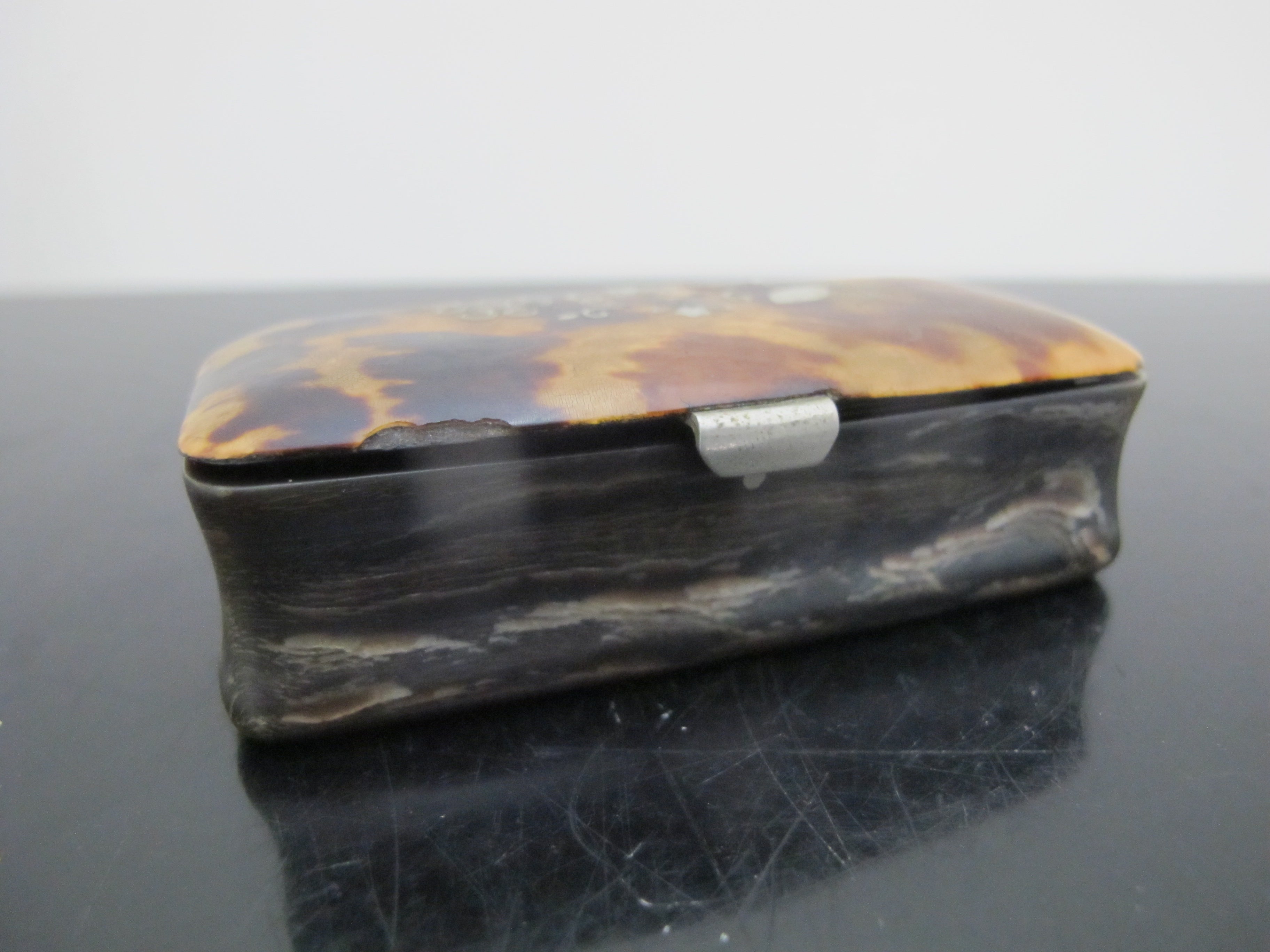 Antique VICTORIAN Pressed HORN & TORTOISESHELL Silver Inlaid Pill Snuff Box