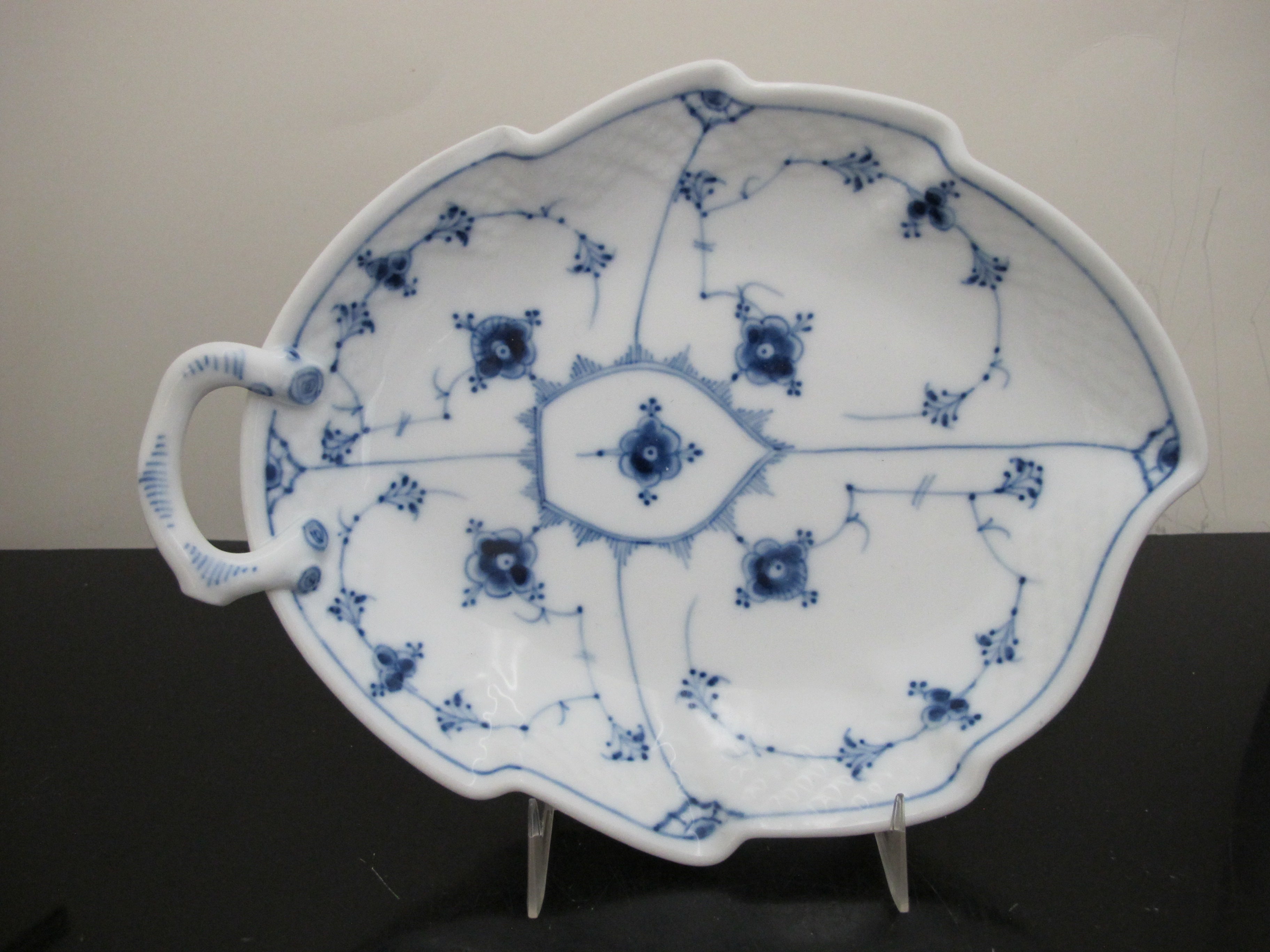 B&G BING & GRONDAHL Royal Copenhagen Plain Blue Leaf PASTRY Pickle Serving Dish
