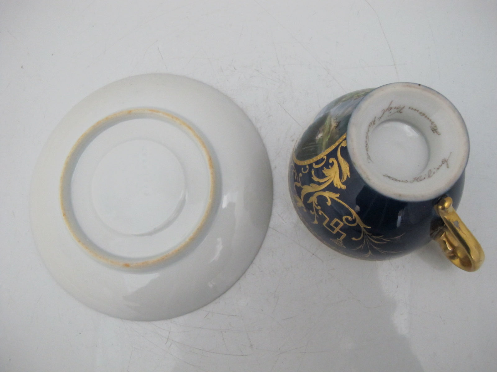 Saucer measures 5 5/8", imprint showing Carl Knoll Carlsbad.