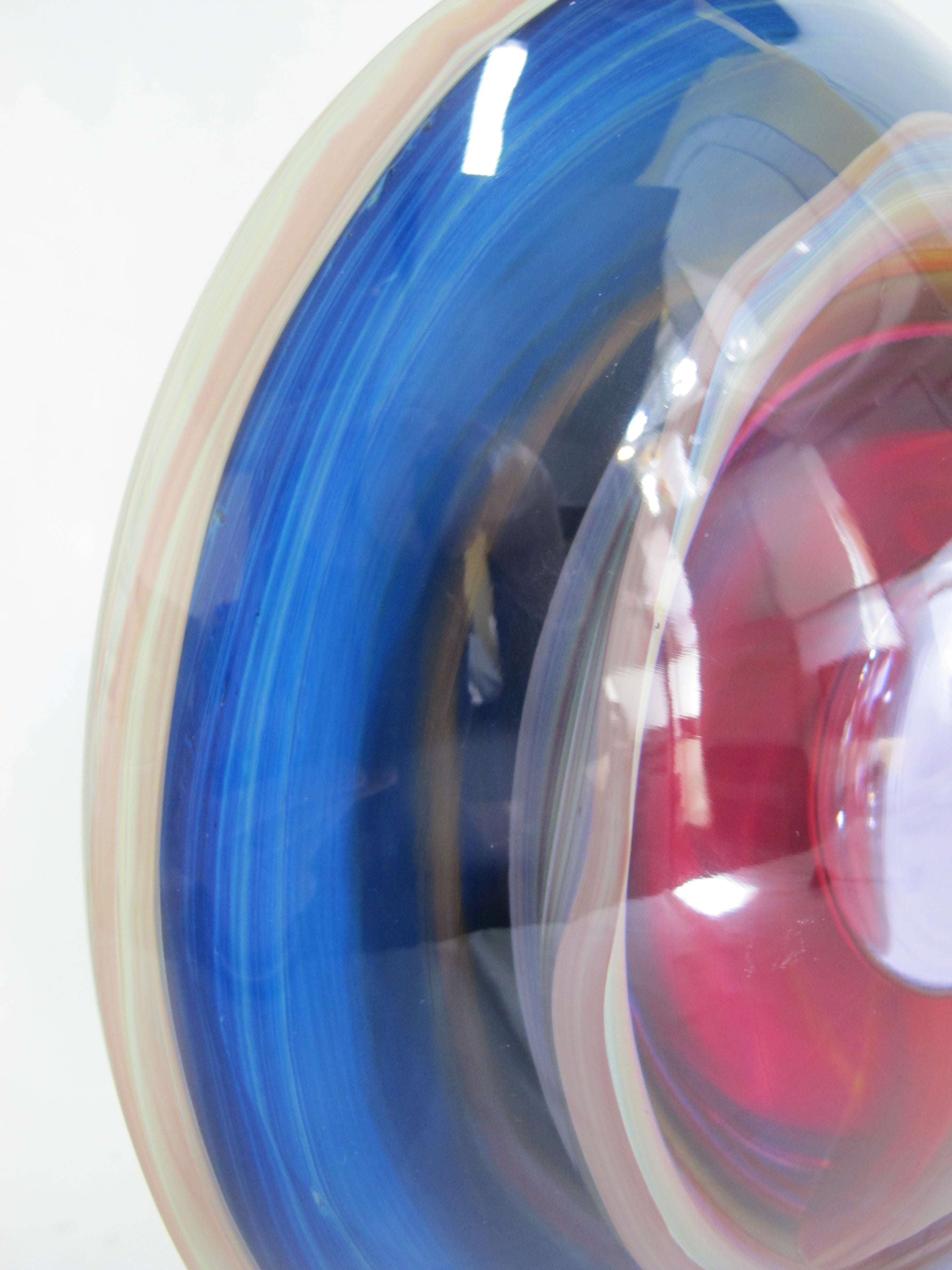 Perhaps most important to the success of Dino's sculpture is his use of the material called "calcedonia." Dino rediscovered the formula for this unique, striated glass in the early 1980's and has continued to improve the coloration. Today he is able to achieve brilliant cobalt blues, deep rose and even a fiery red, varying on the metals used, temperature and duration the glass is in the furnace. Each piece is different; the exact flow of lines and color of calcedonia cannot be duplicated. There are many styles to choose from but no two are ever identical. In Dino Rosin's works, the designs are similar but colors will always vary.