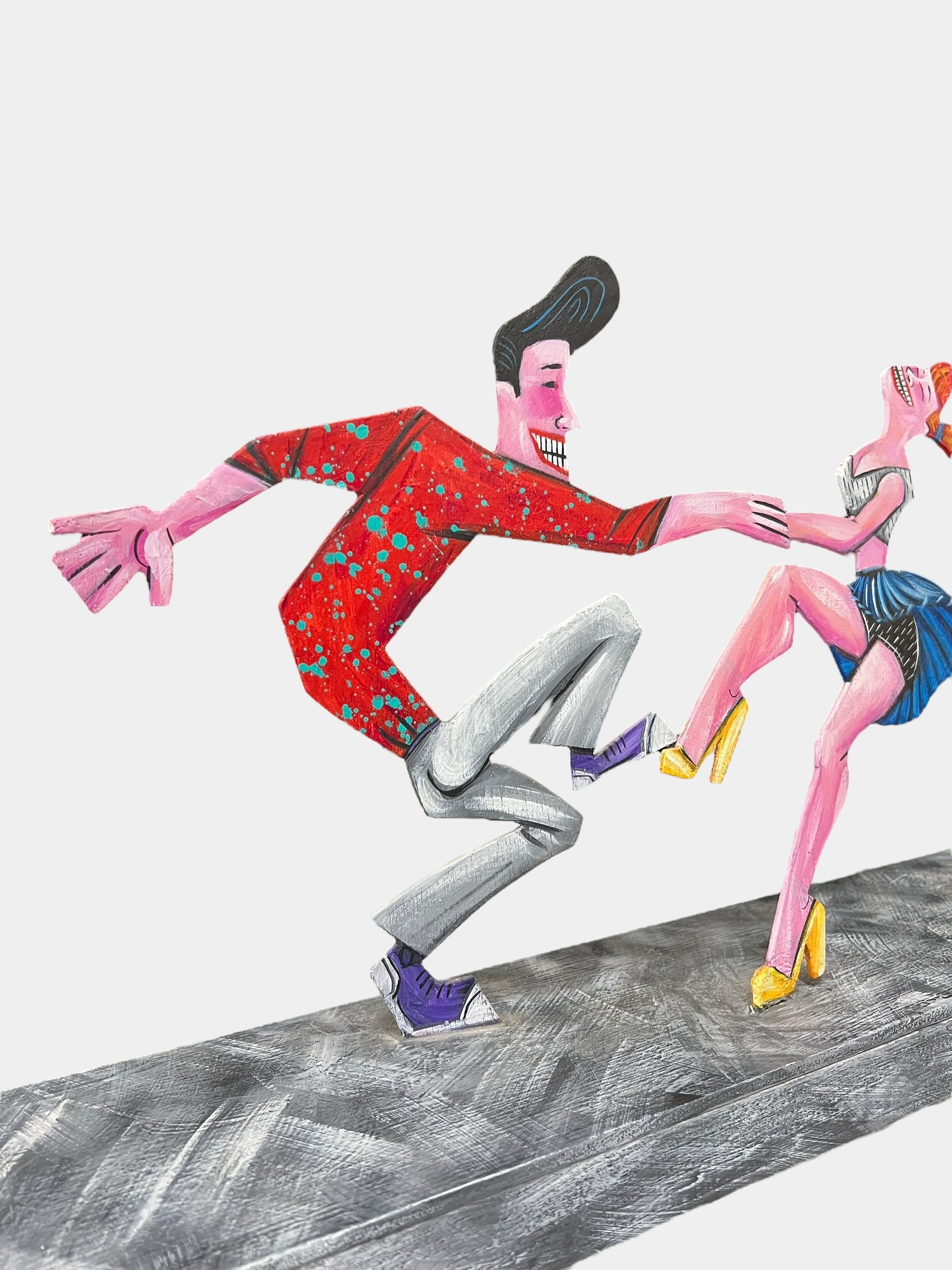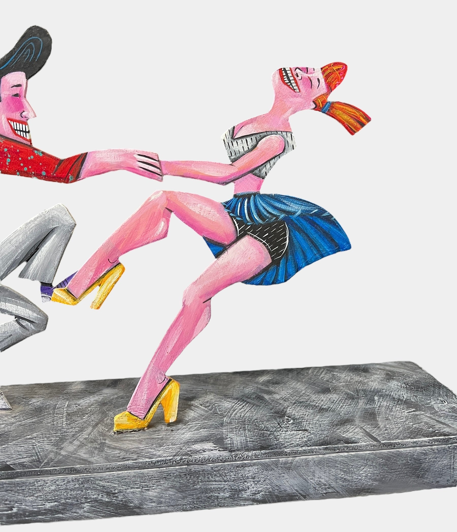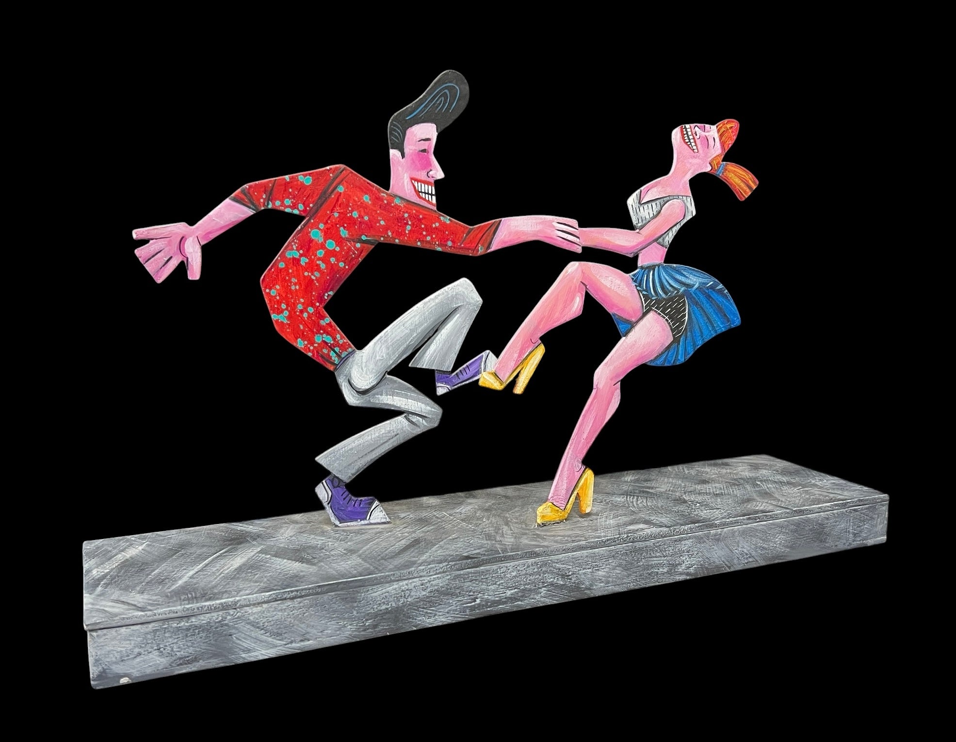 ECCENTRIC Wiese "Nestor and Minerva" Dancing Mahogany Wood Art Box Statue