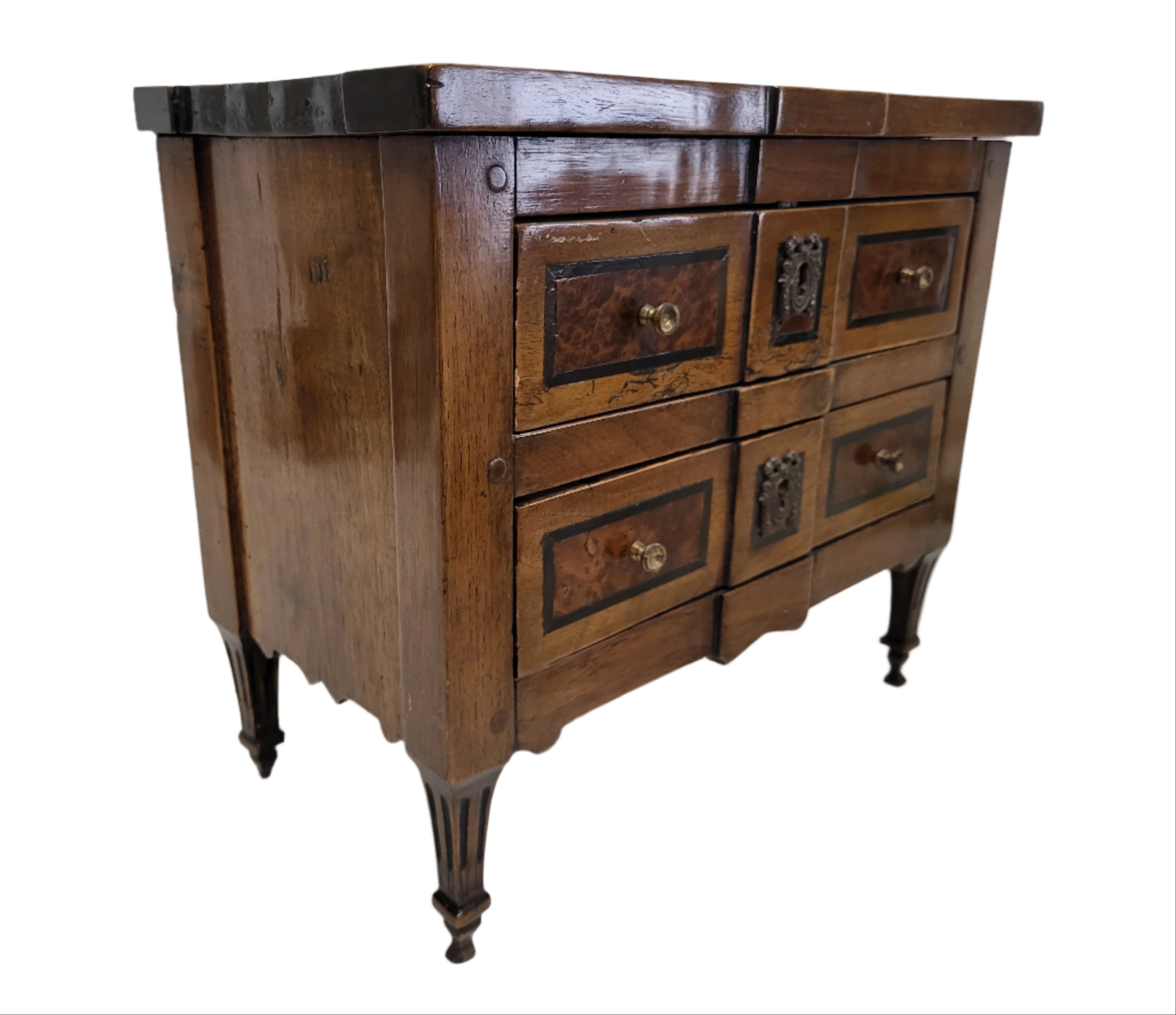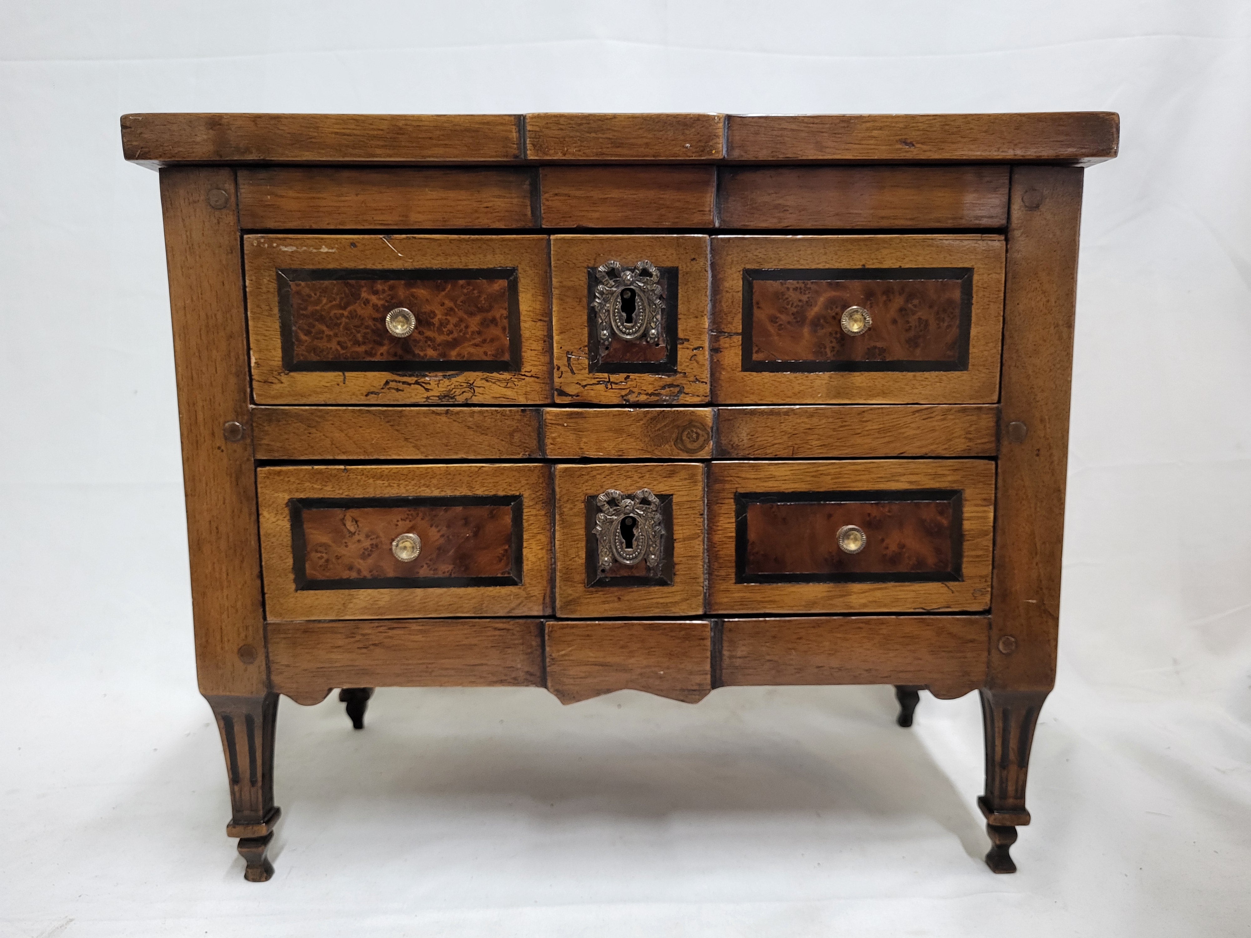 ITALIAN 19th Century Miniature BAROQUE Wood Inlaid 2 Drawer COMMODE Chest Box