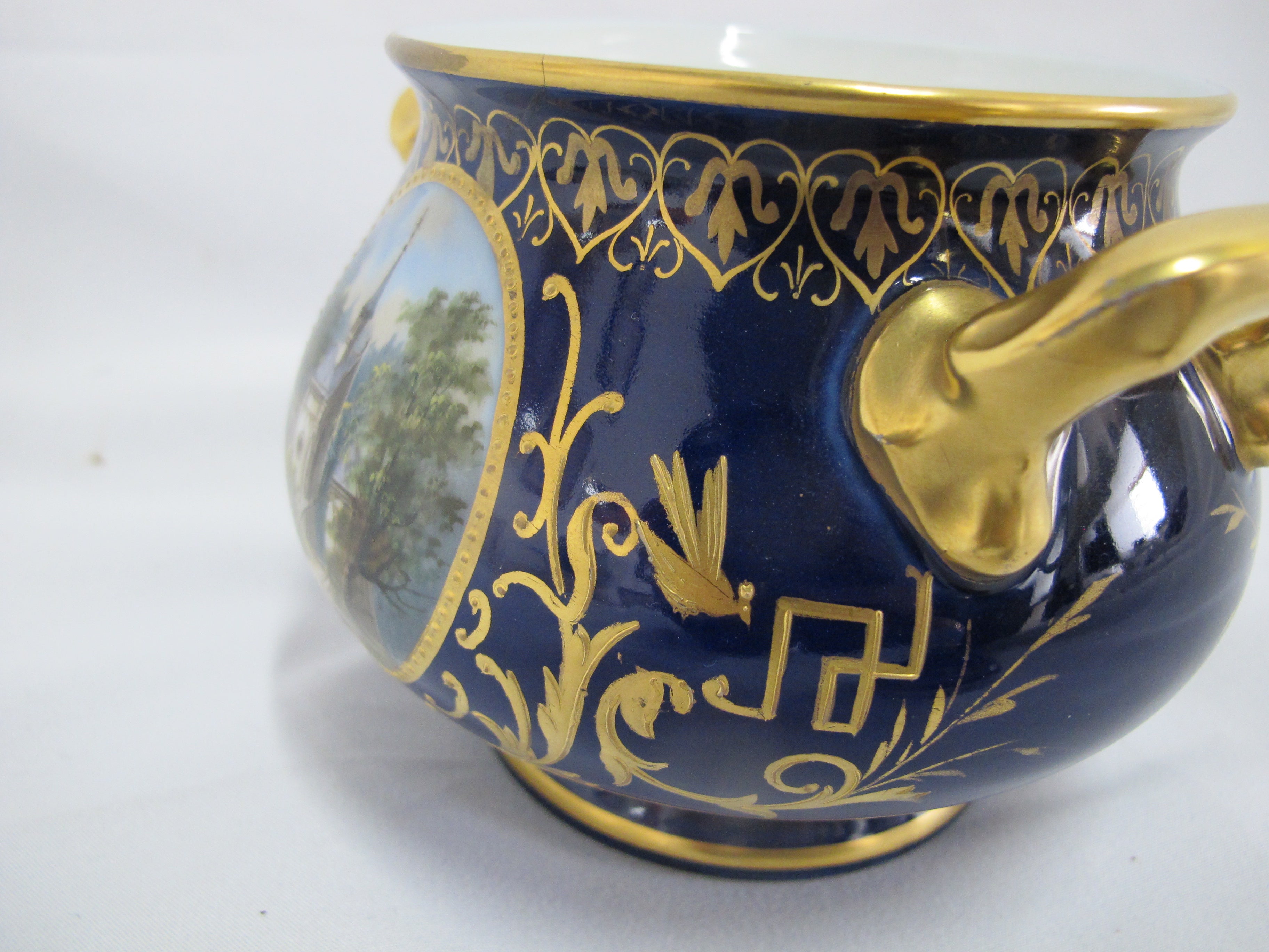 Hermann Voigt KARLSBAD 19thc Gilt Hand Painted Church LANDSCAPE Porcelain Sugar Bowl