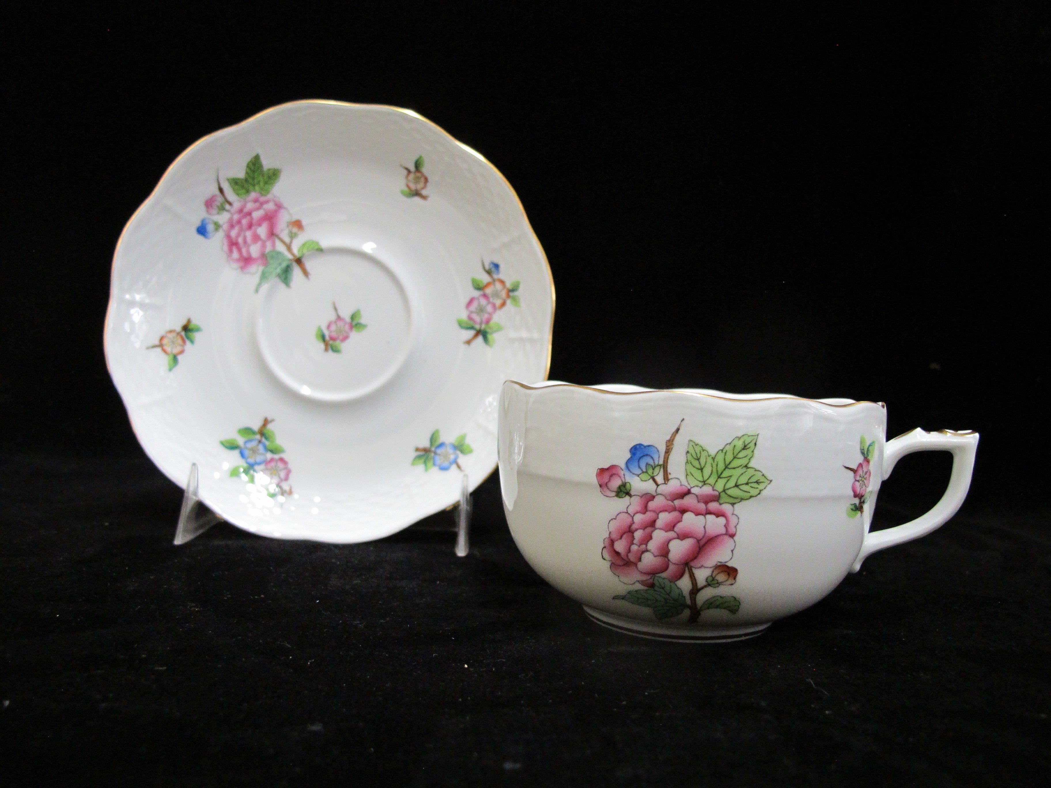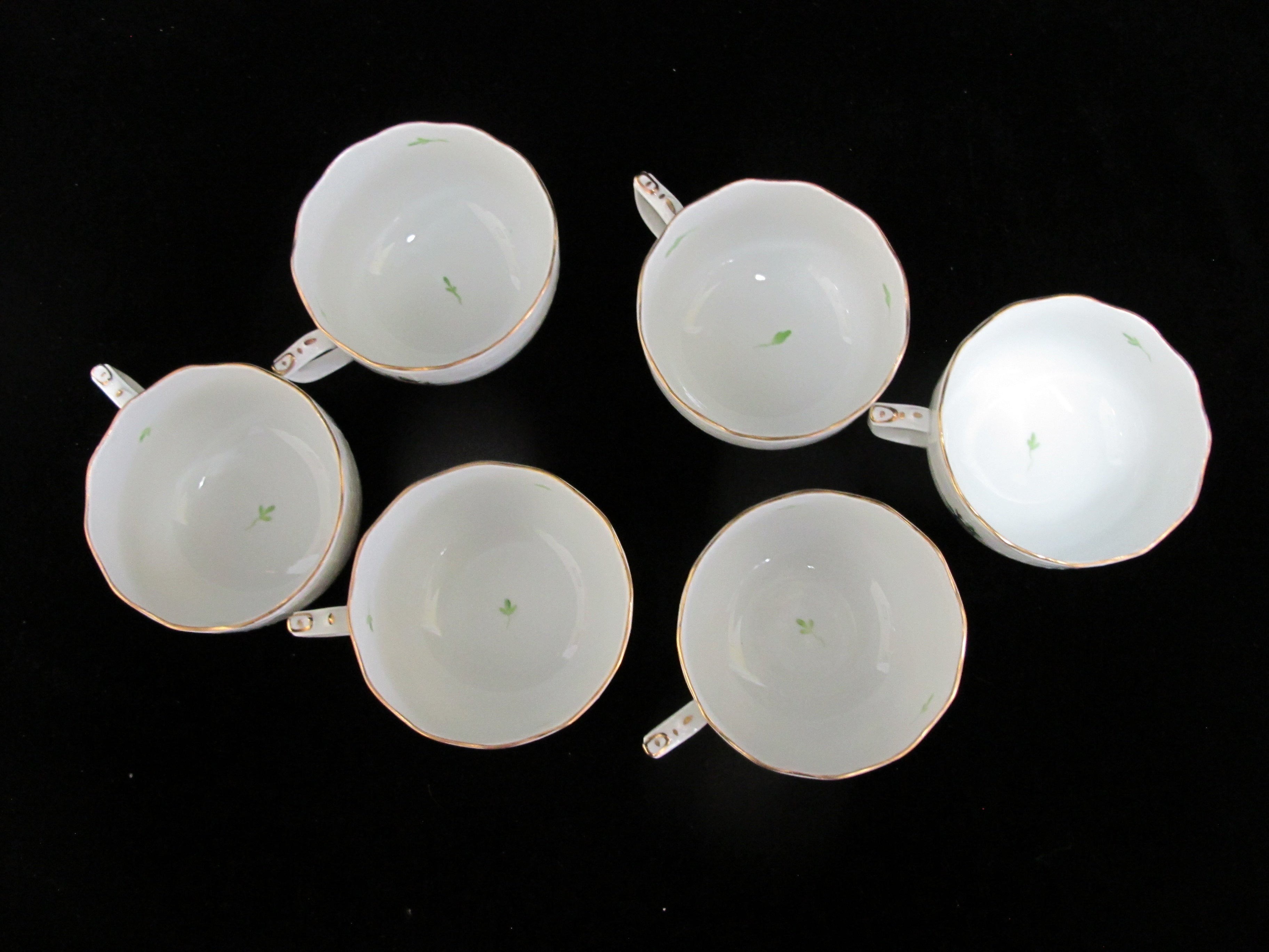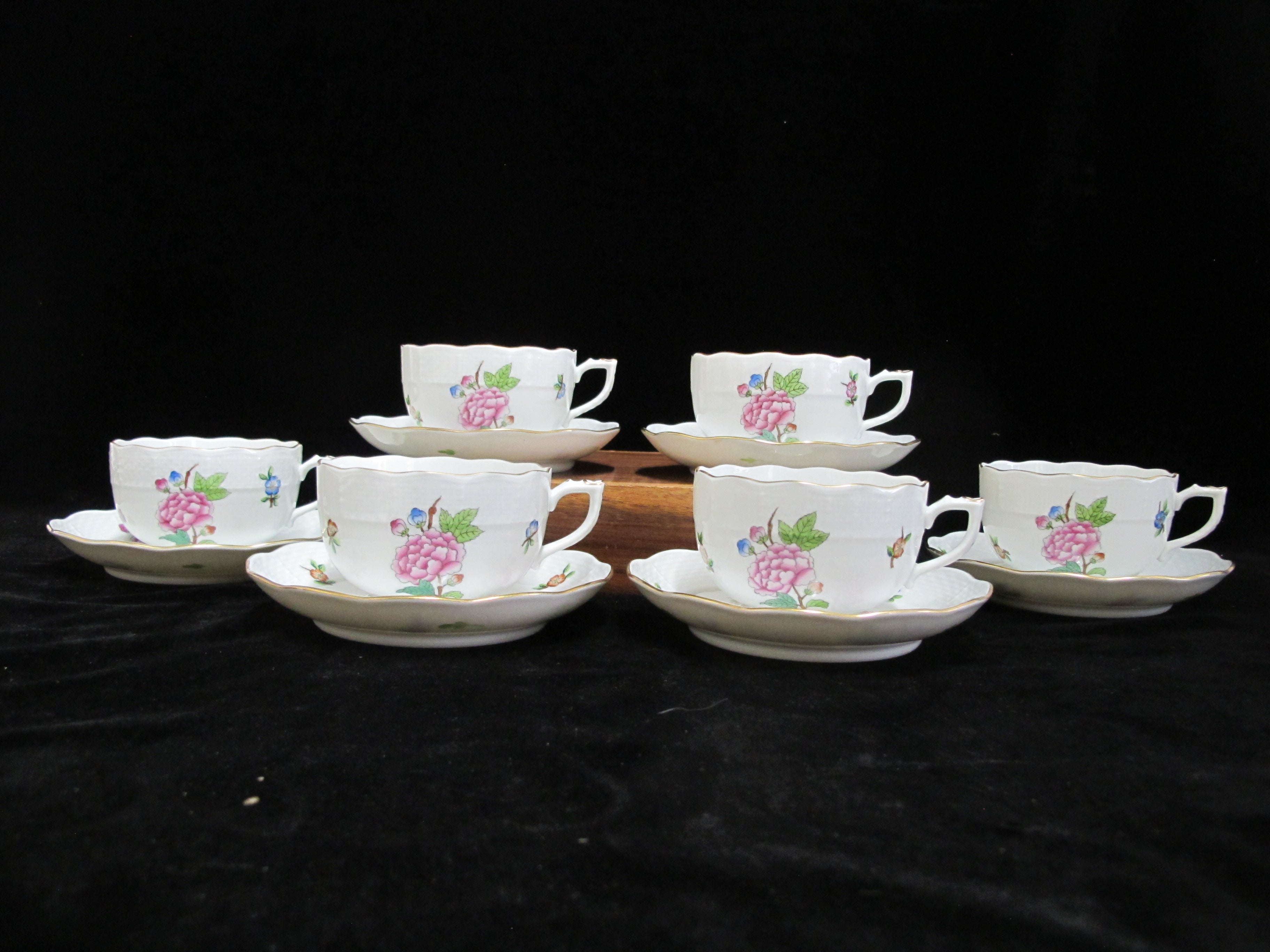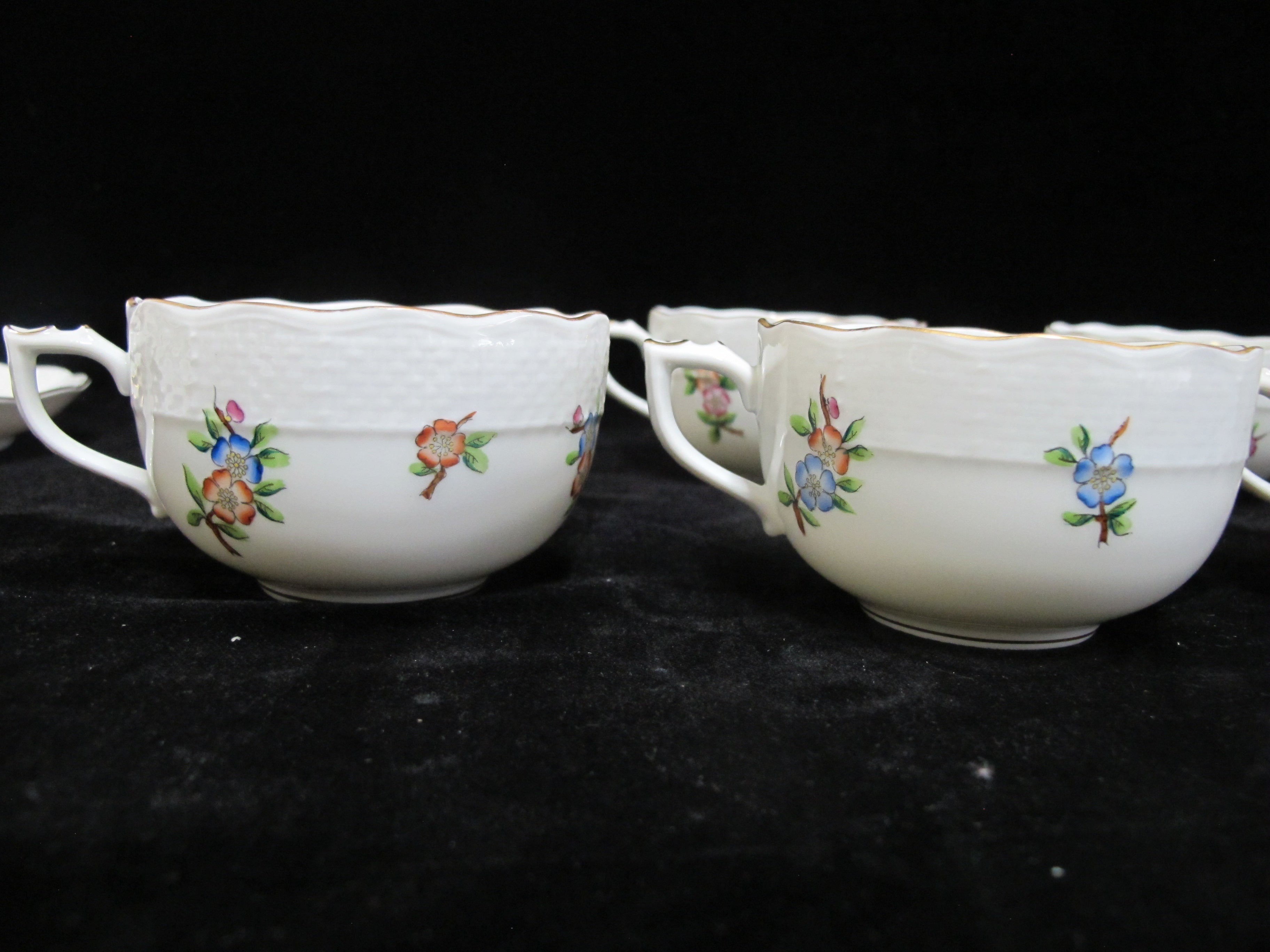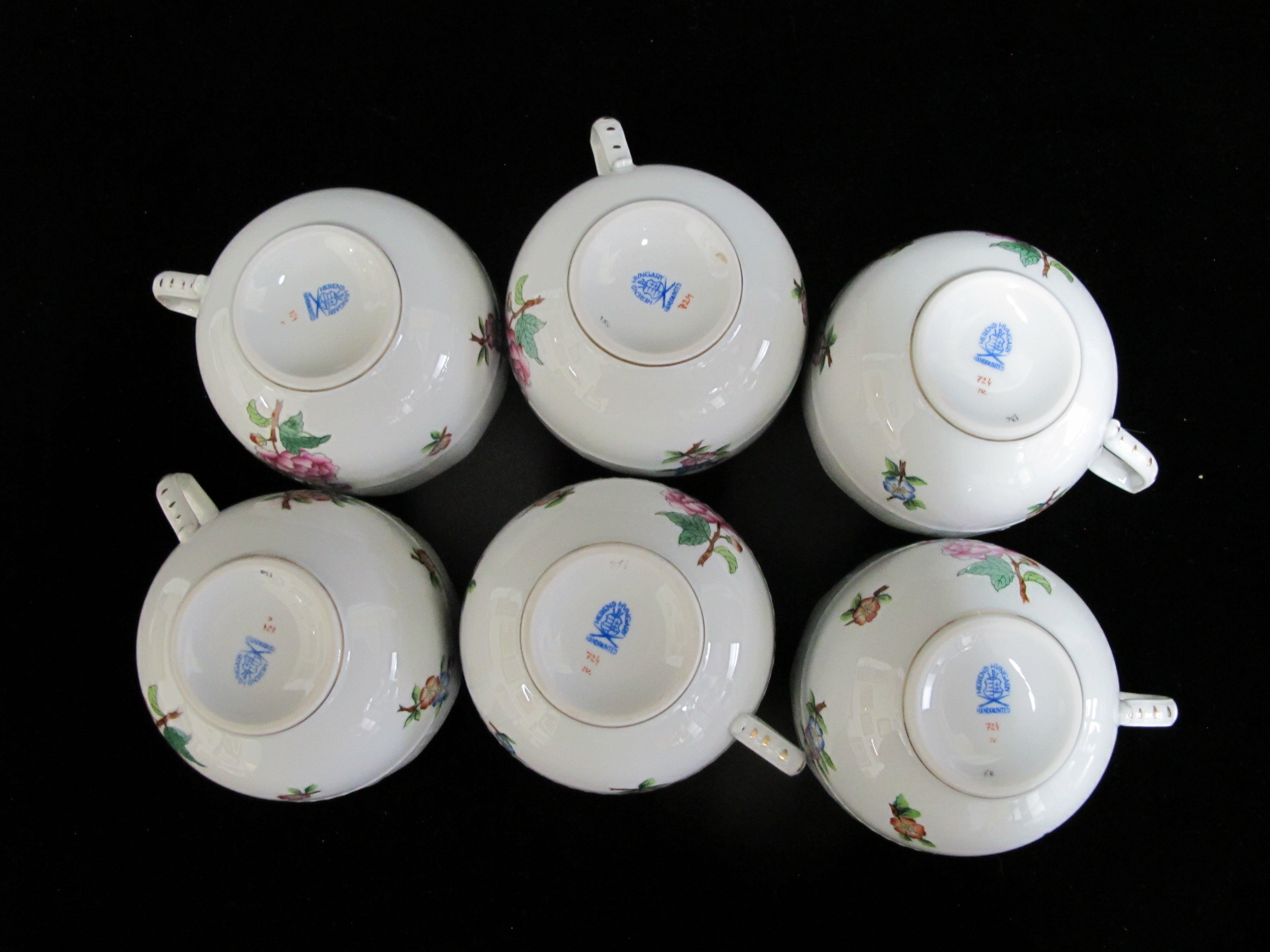HEREND ETON 724 Hand Painted Flower Porcelain Large Tea Cup & Saucer Set of 6