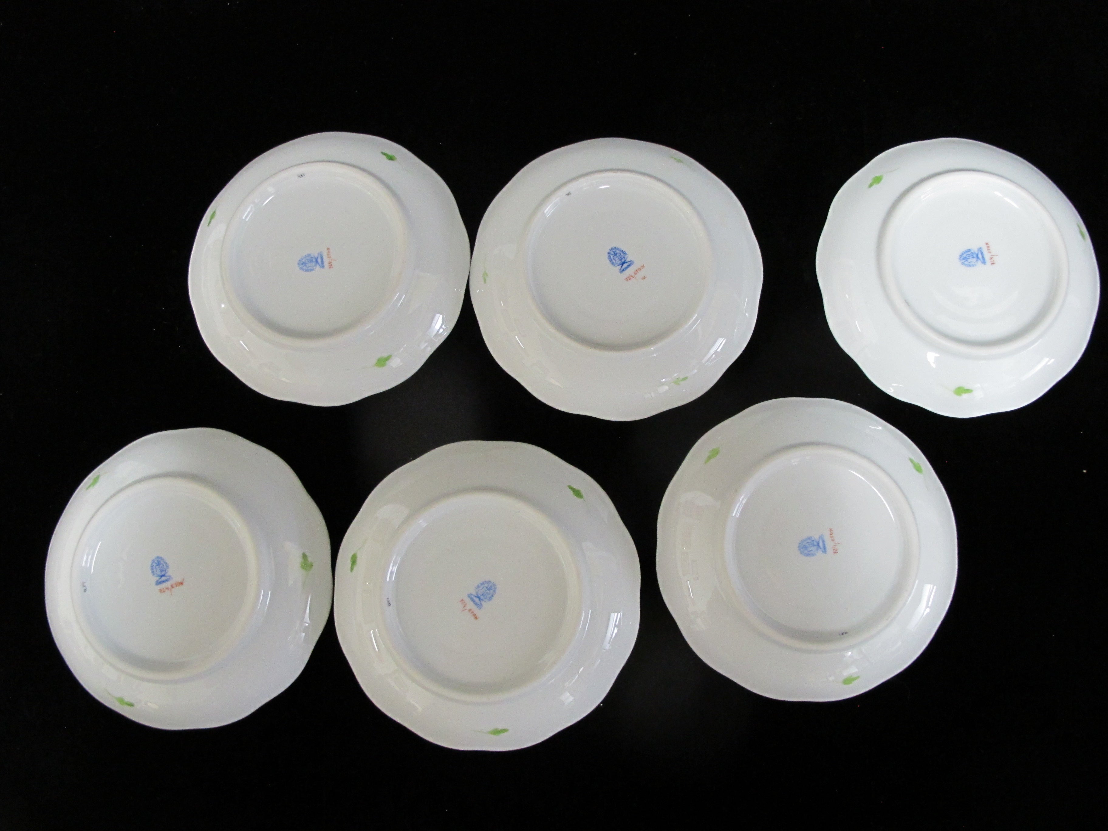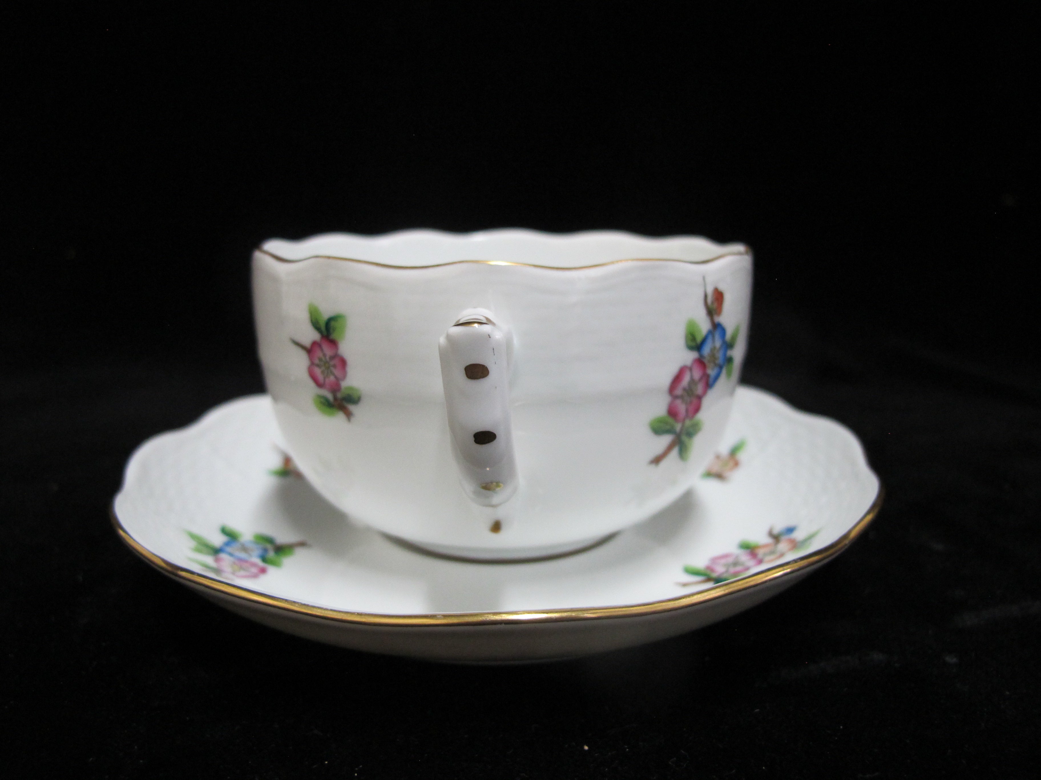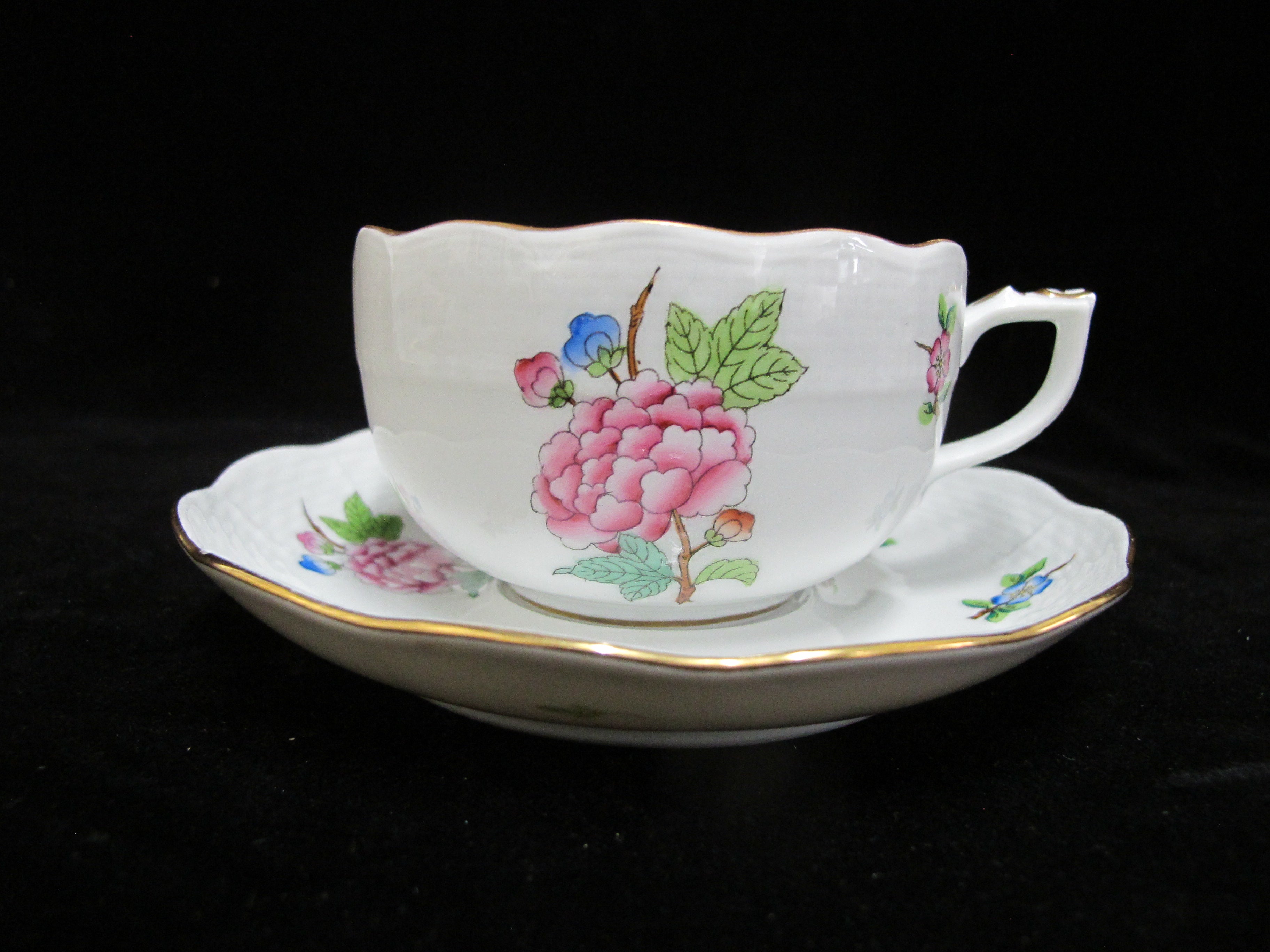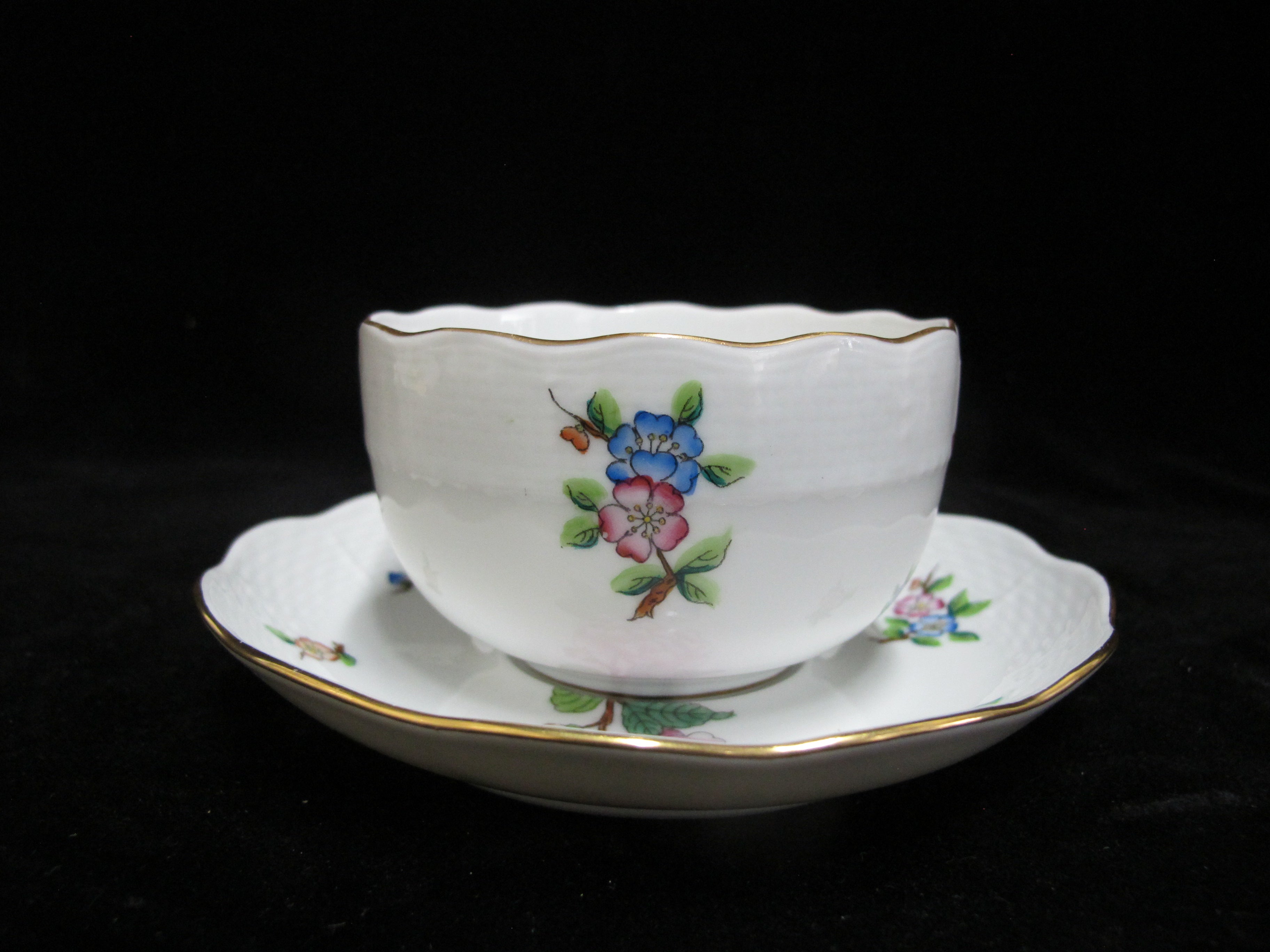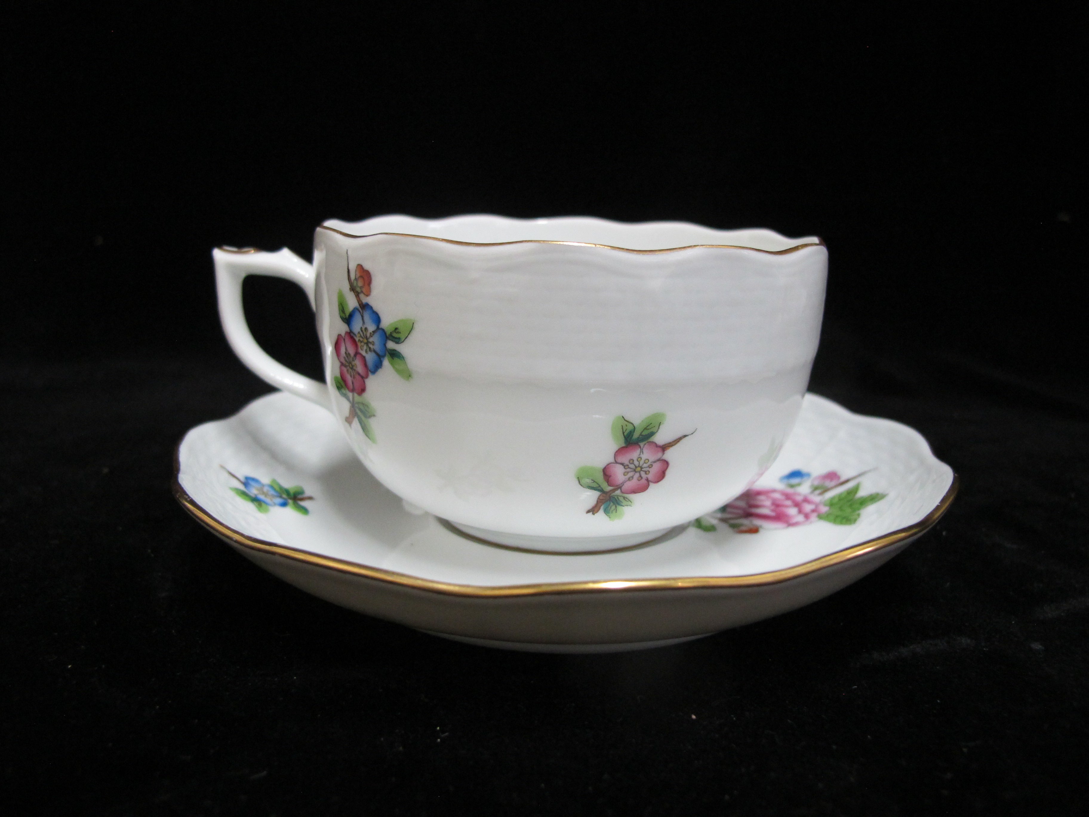 HEREND ETON 724 Hand Painted Flower Porcelain Large Tea Cup & Saucer Set of 6