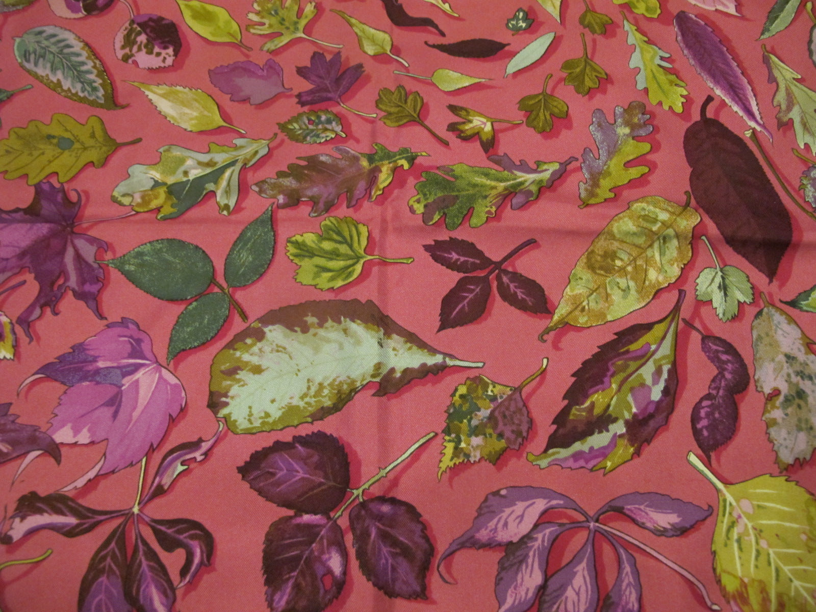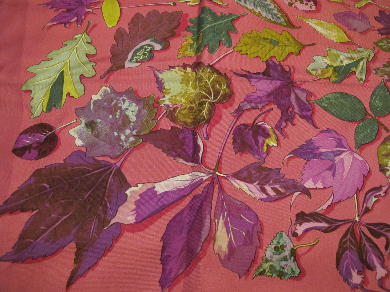 HERMES Paris France Carre 90 TOURBILLON Fallen Autumn Leaves Pink Silk Scarf