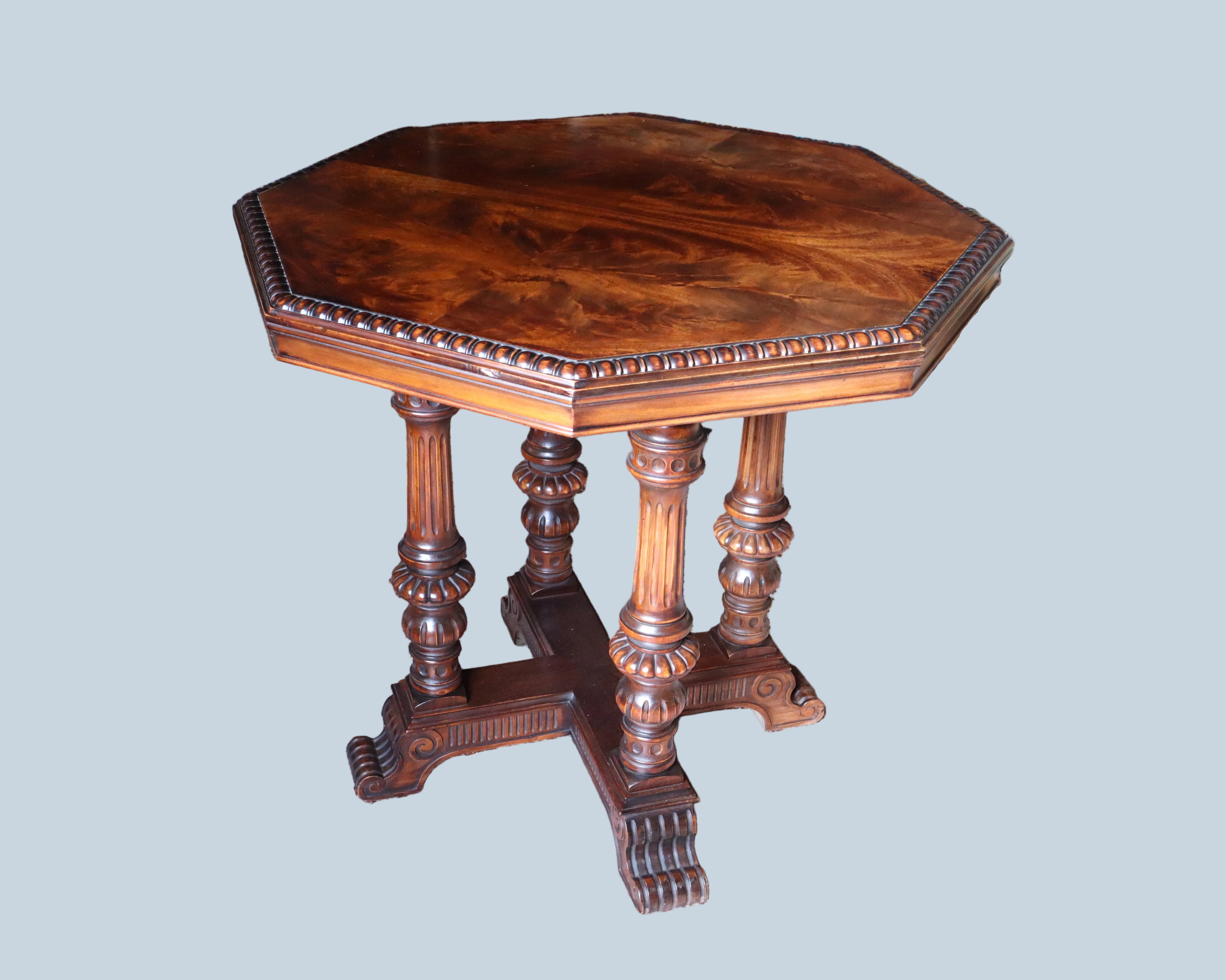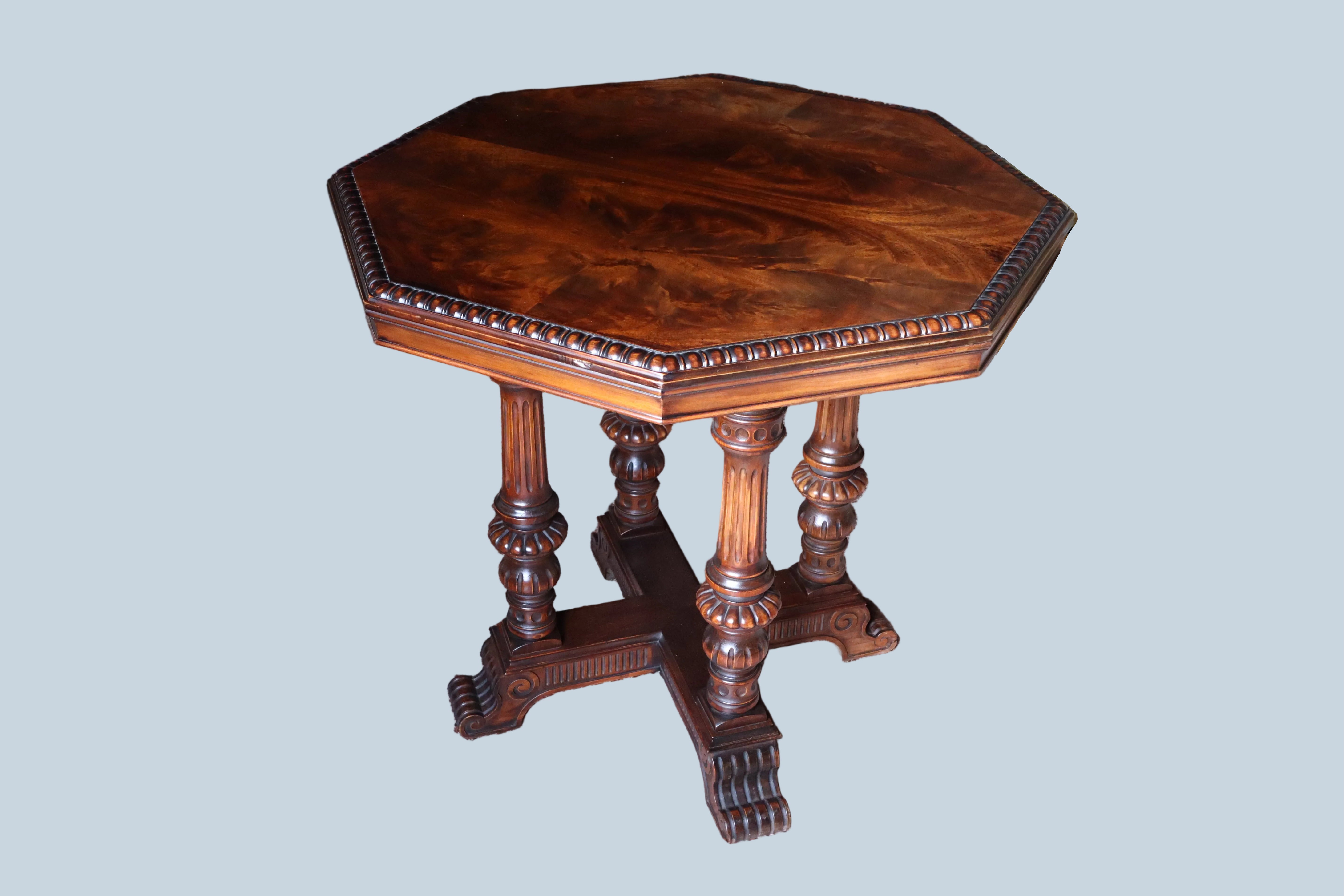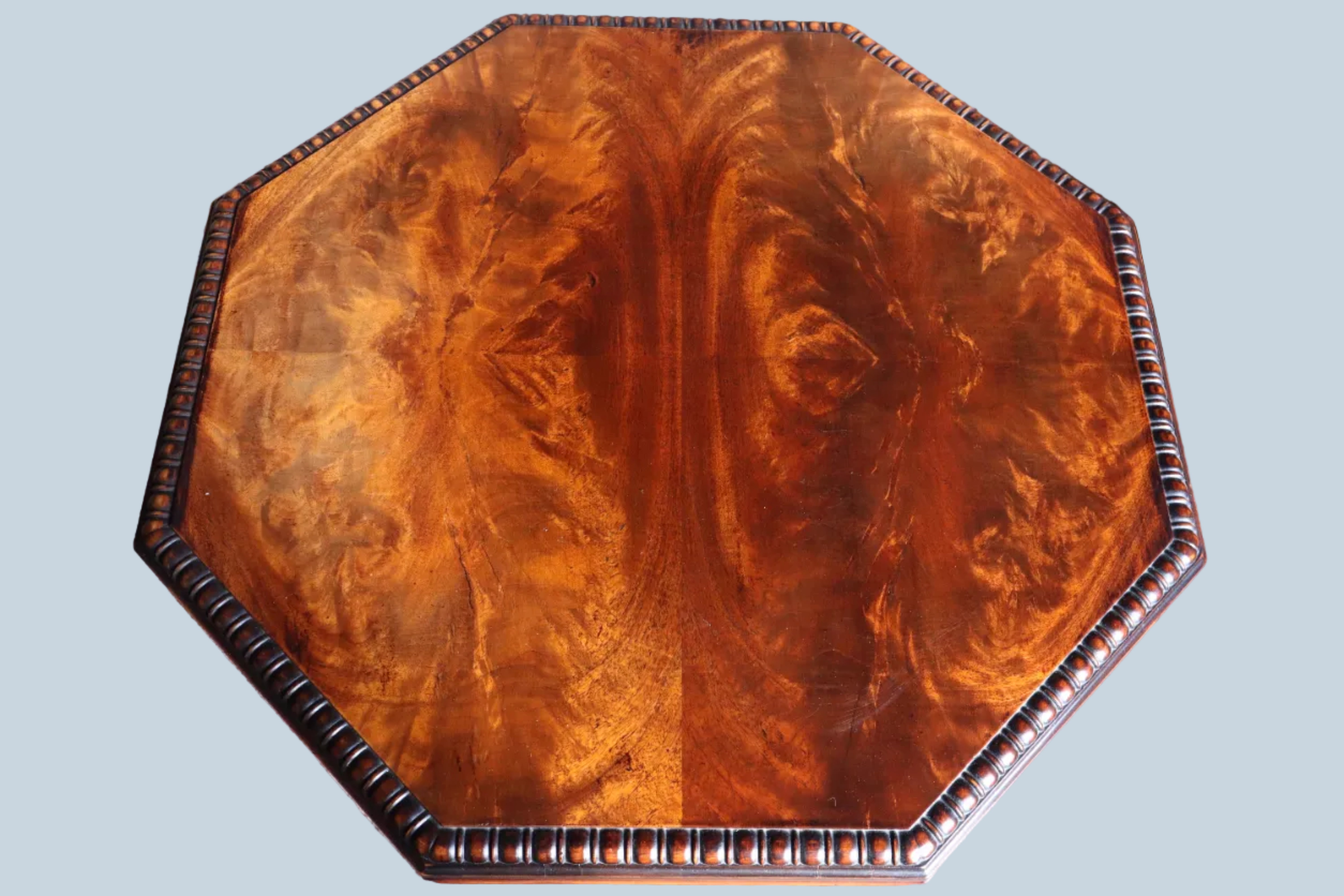 Hexagonal Mahogany Lamp Table with Mirrored Wood Grain & Regal Flat Claw Feet