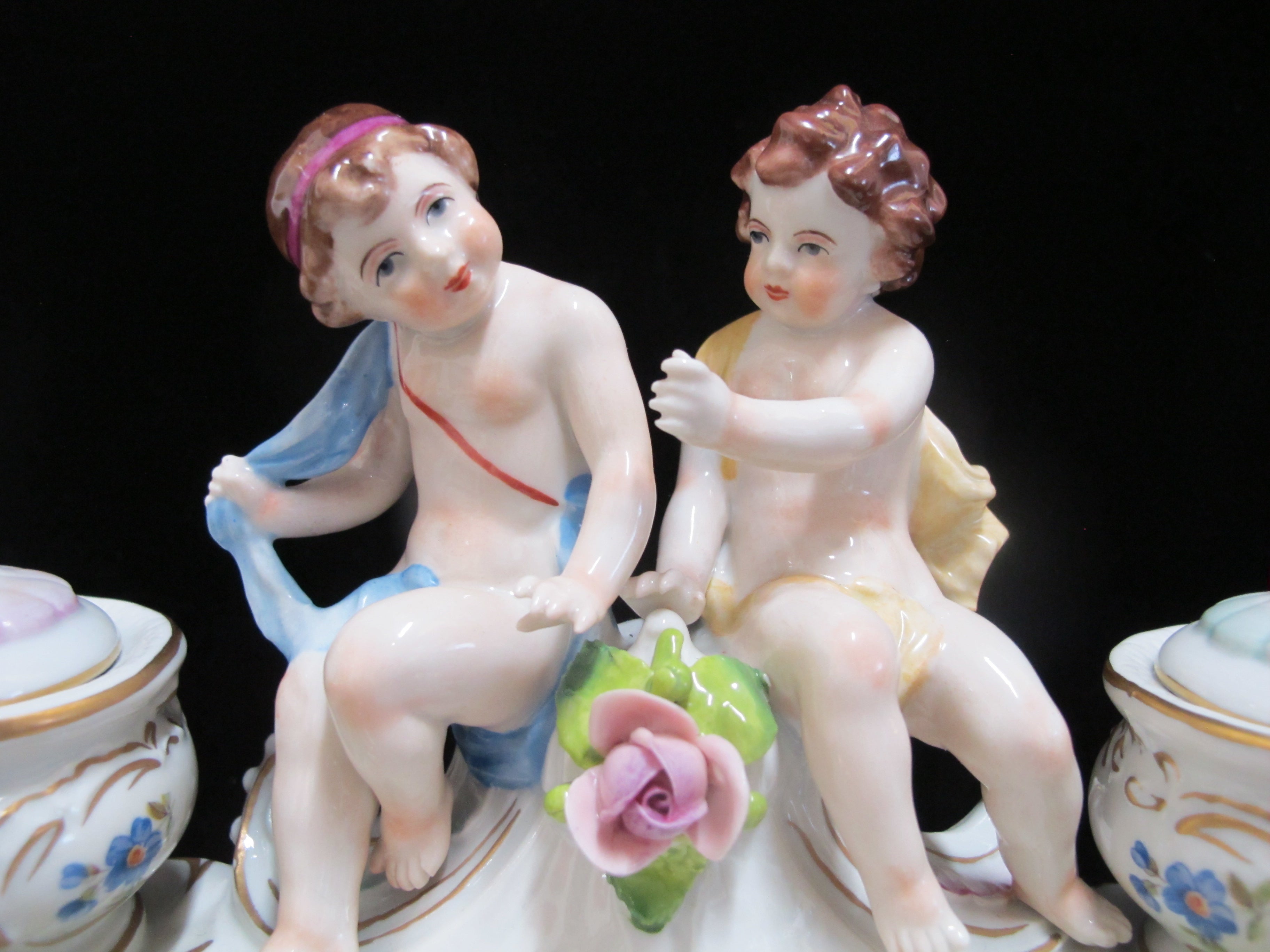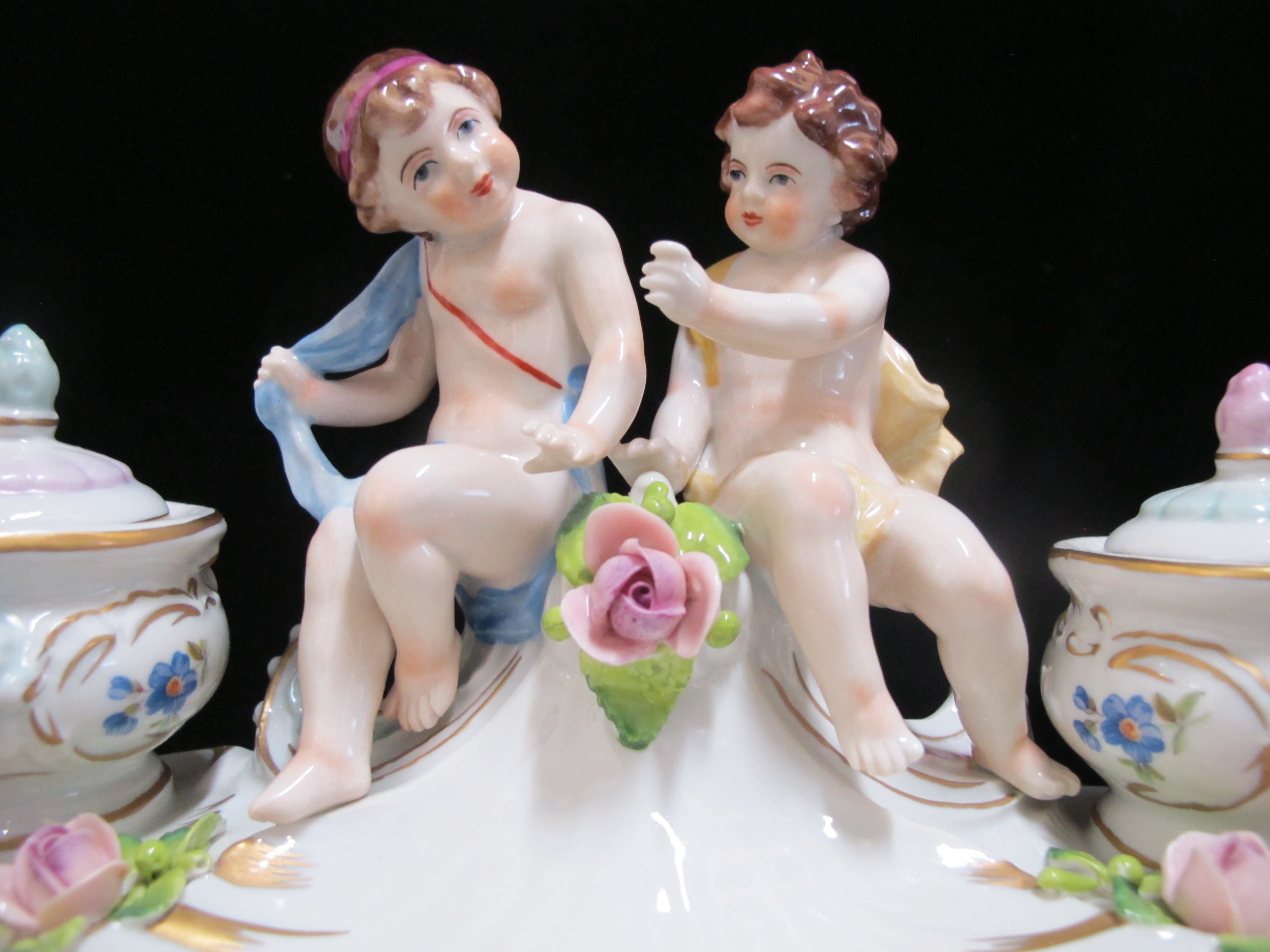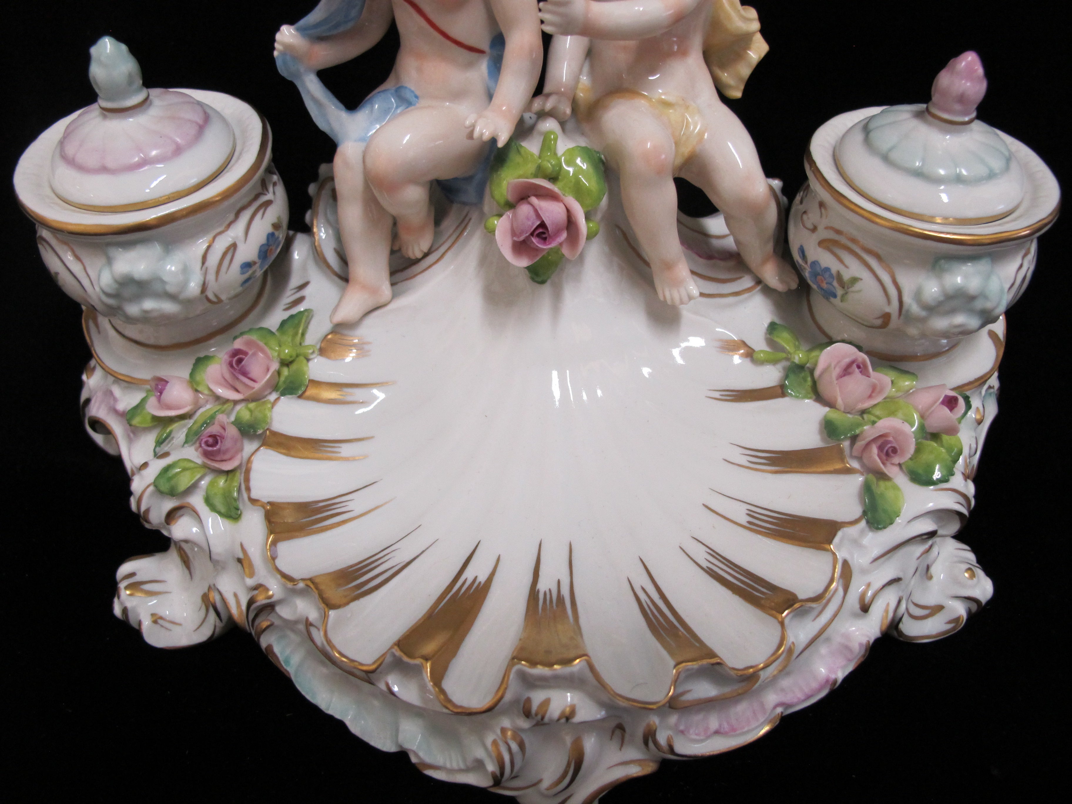 SITZENDORF Porcelain CHERUB Putti Figural INKWELL Centerpiece Figurine & Inserts