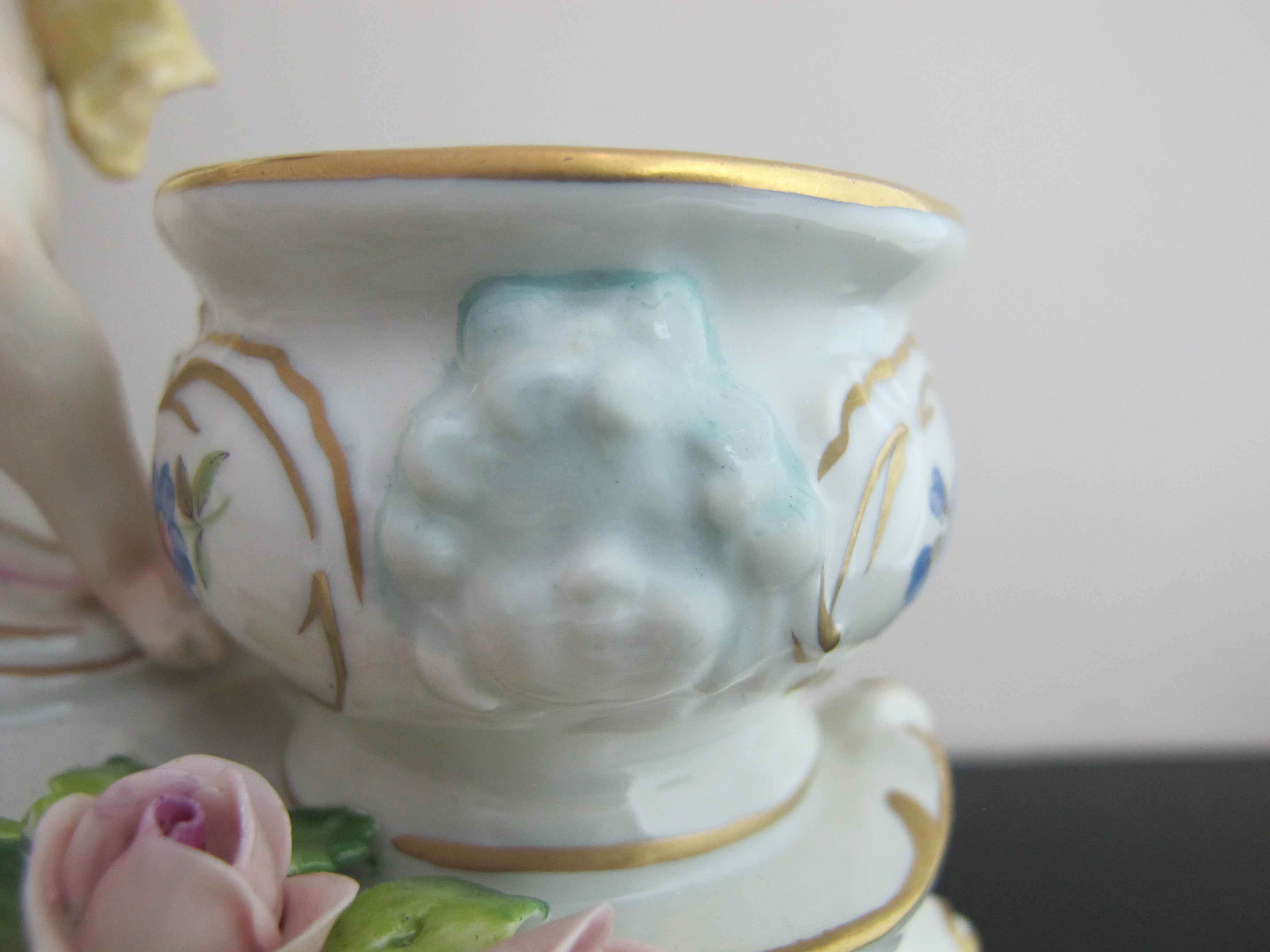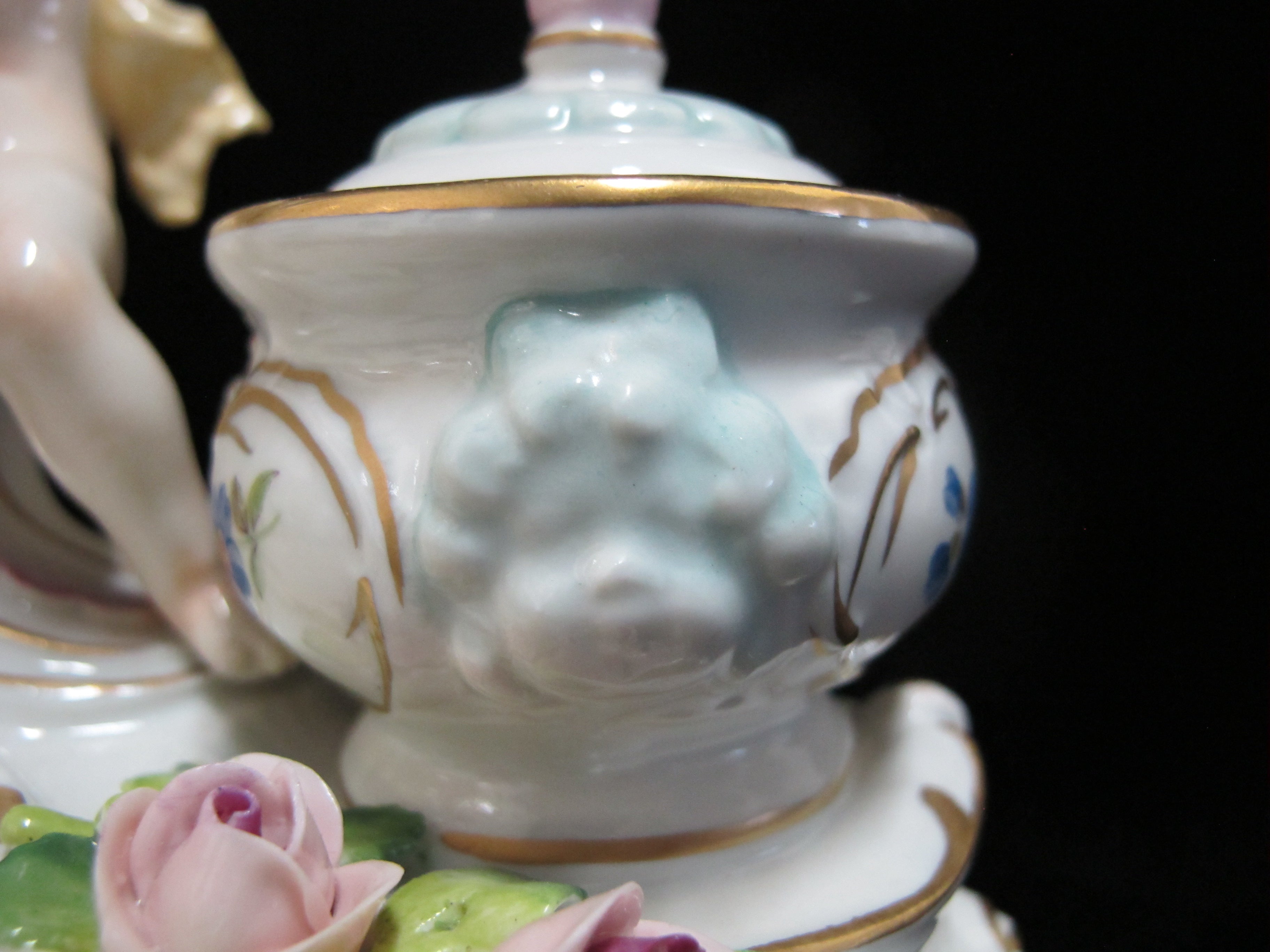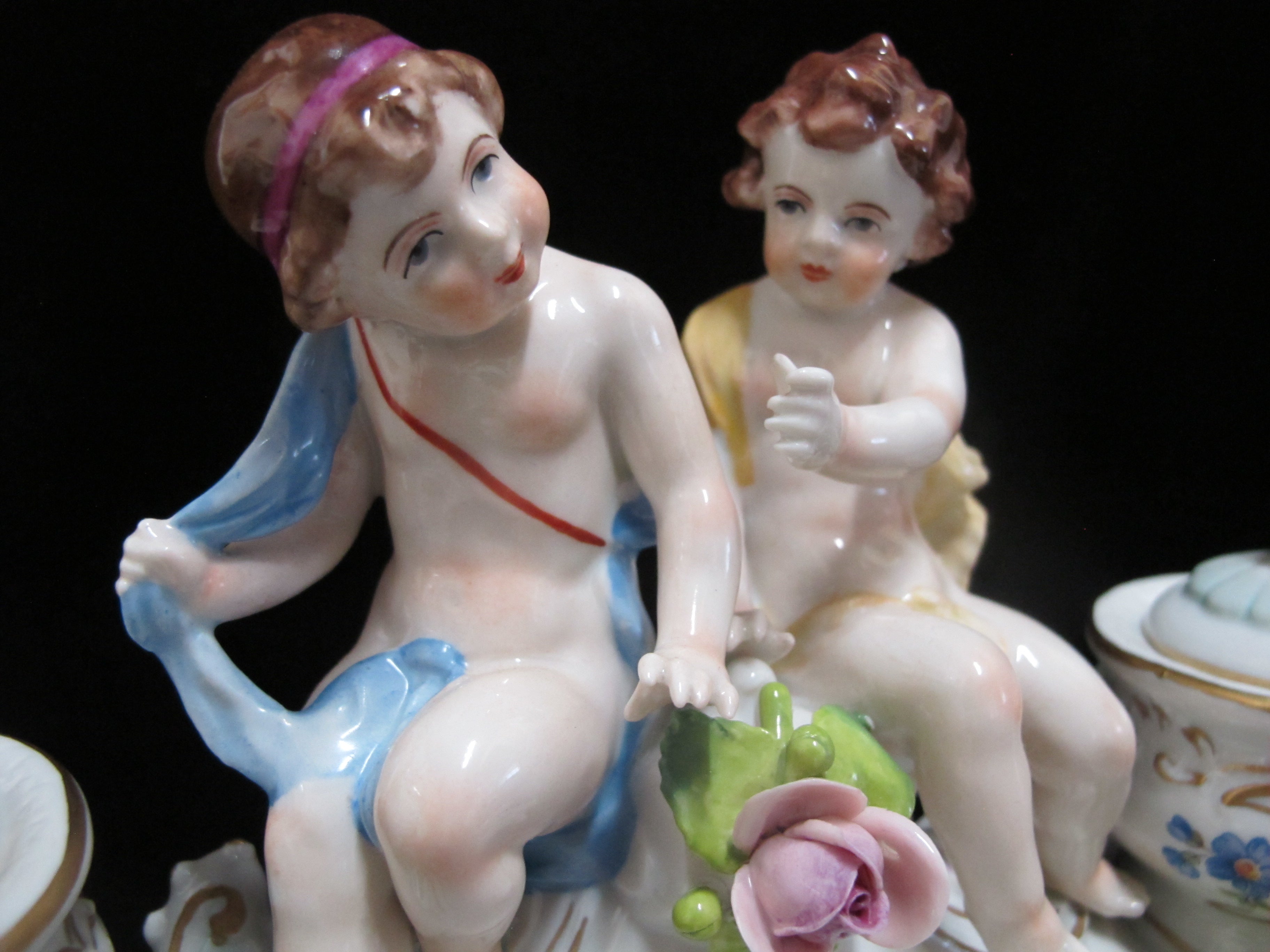 SITZENDORF Porcelain CHERUB Putti Figural INKWELL Centerpiece Figurine & Inserts