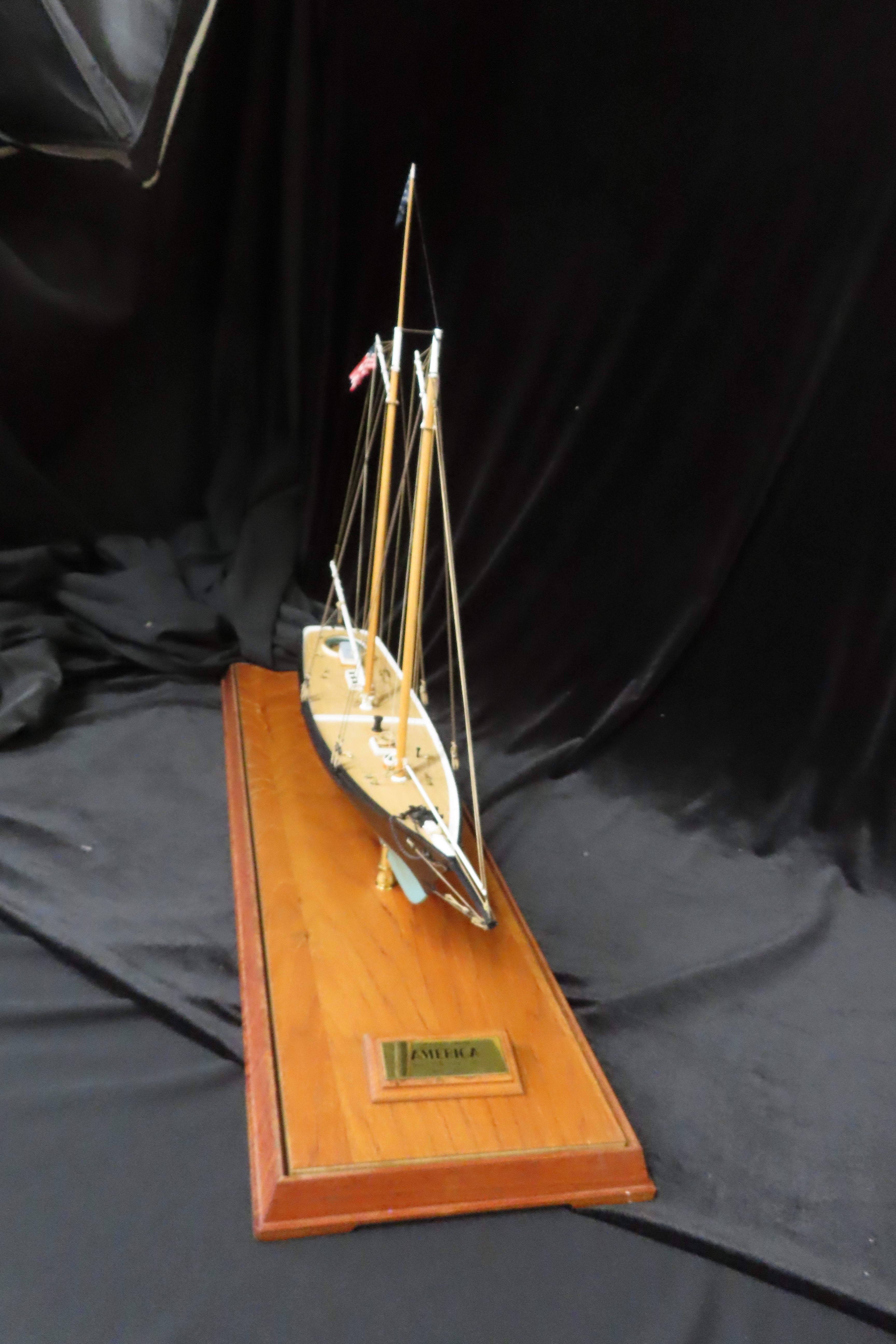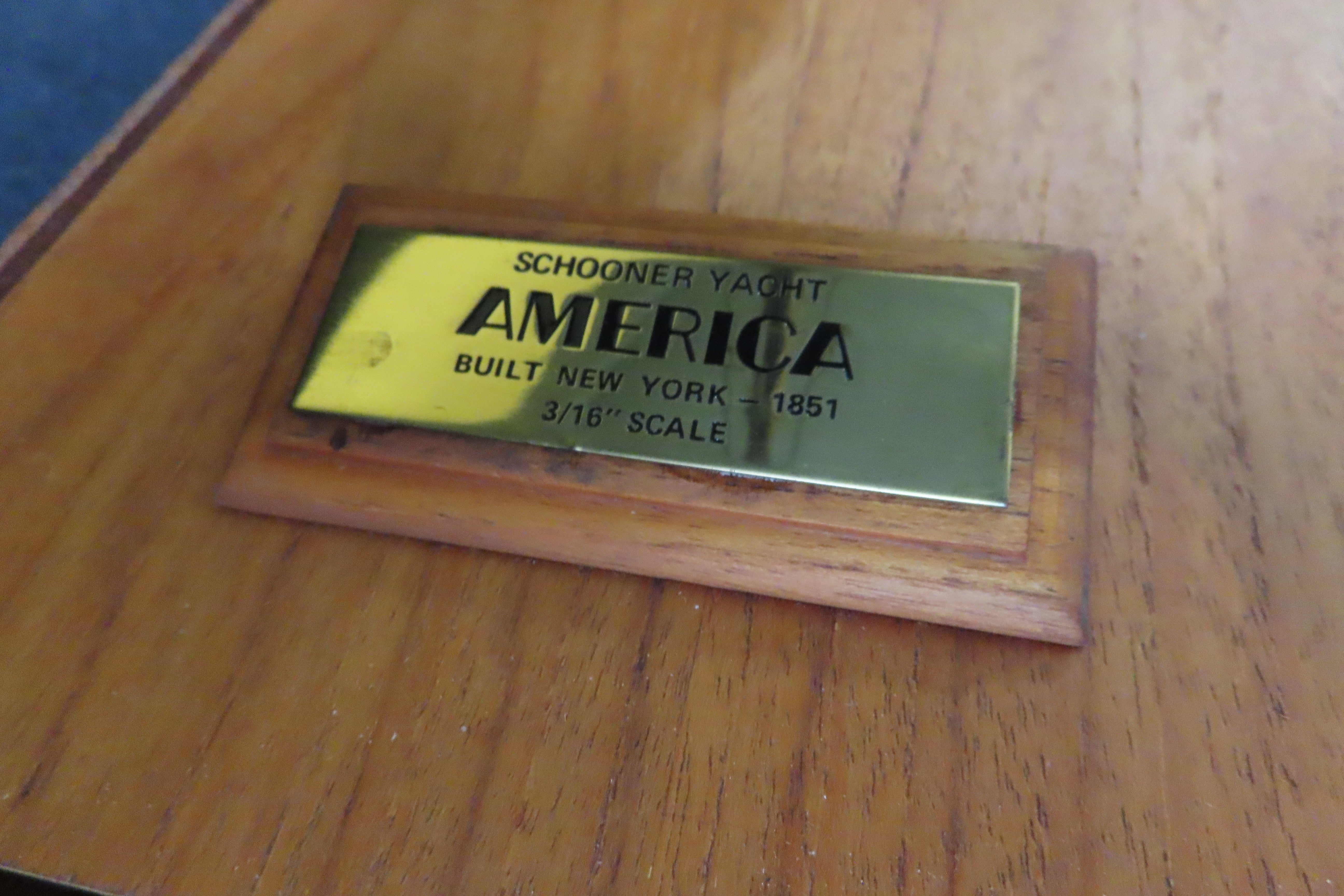 The Schooner yacht named America was a 19th century racing yacht and was the first winner of the America's Cup international sailing trophy. The original ship was built by the Georges Steers co. in New York in 1851. The model is built to a scale of 3/16".