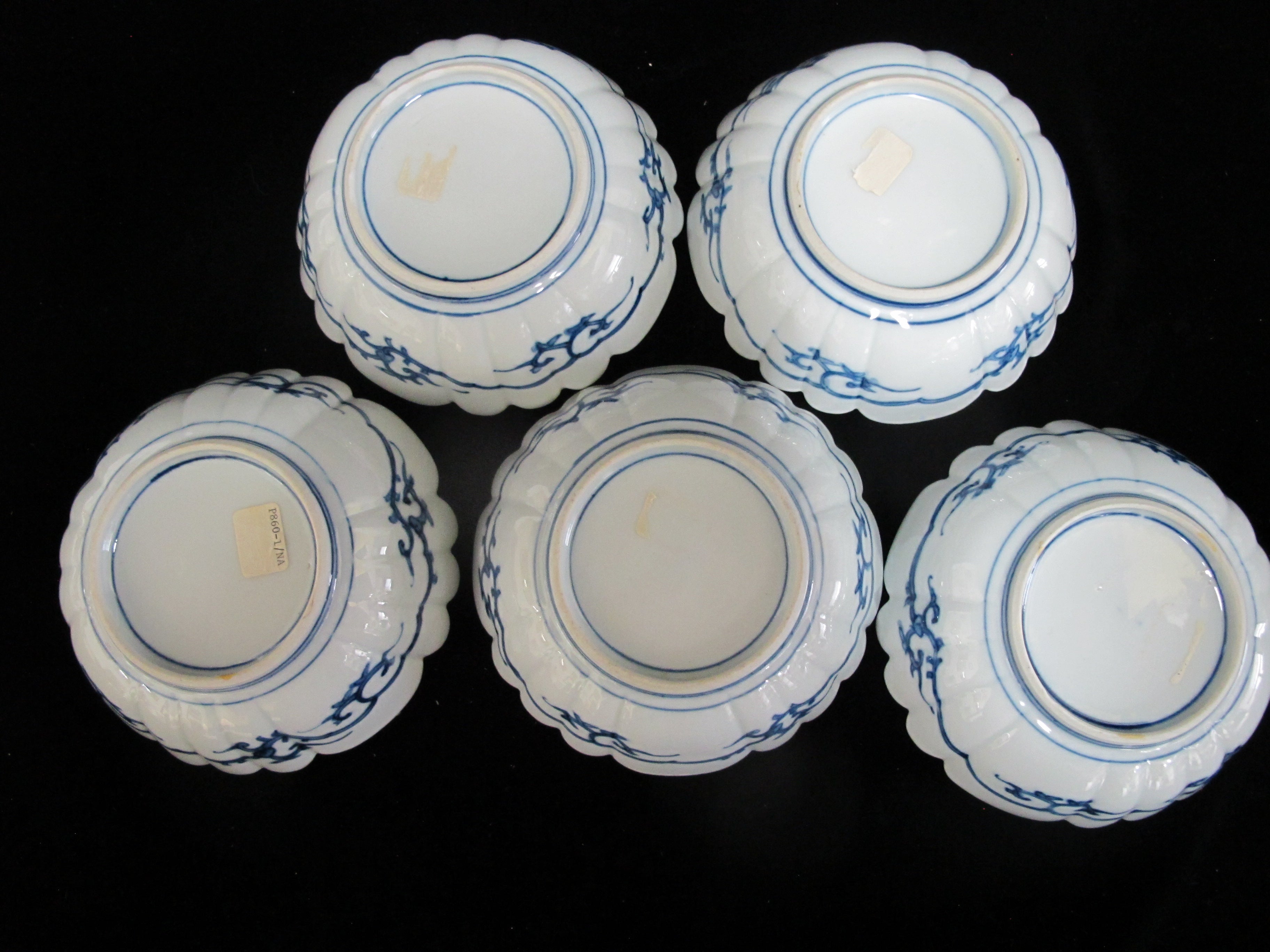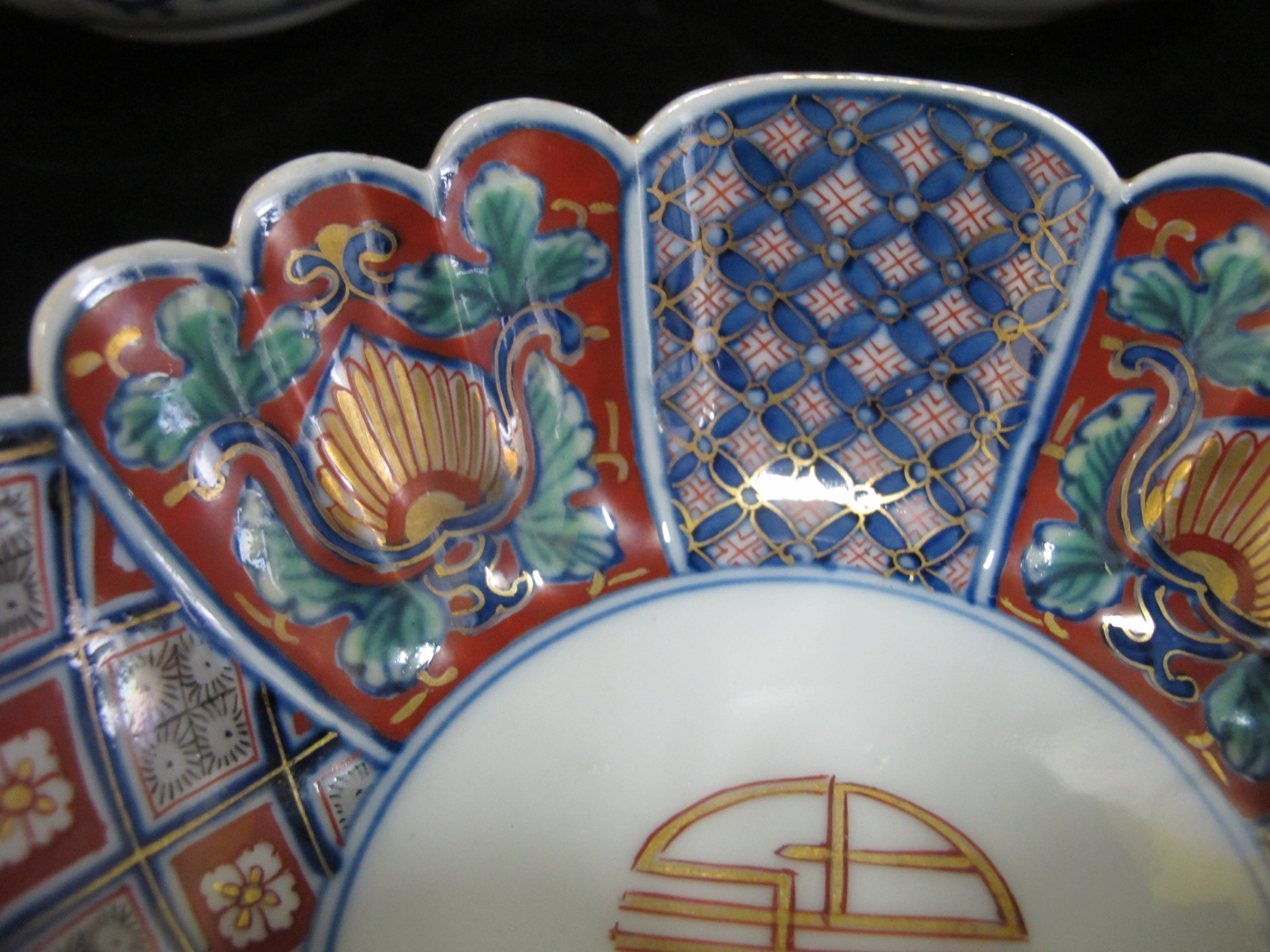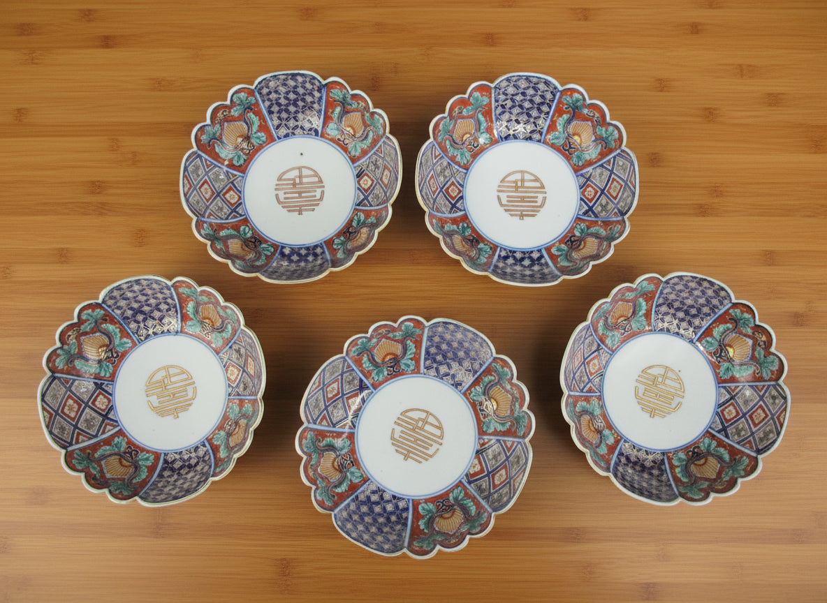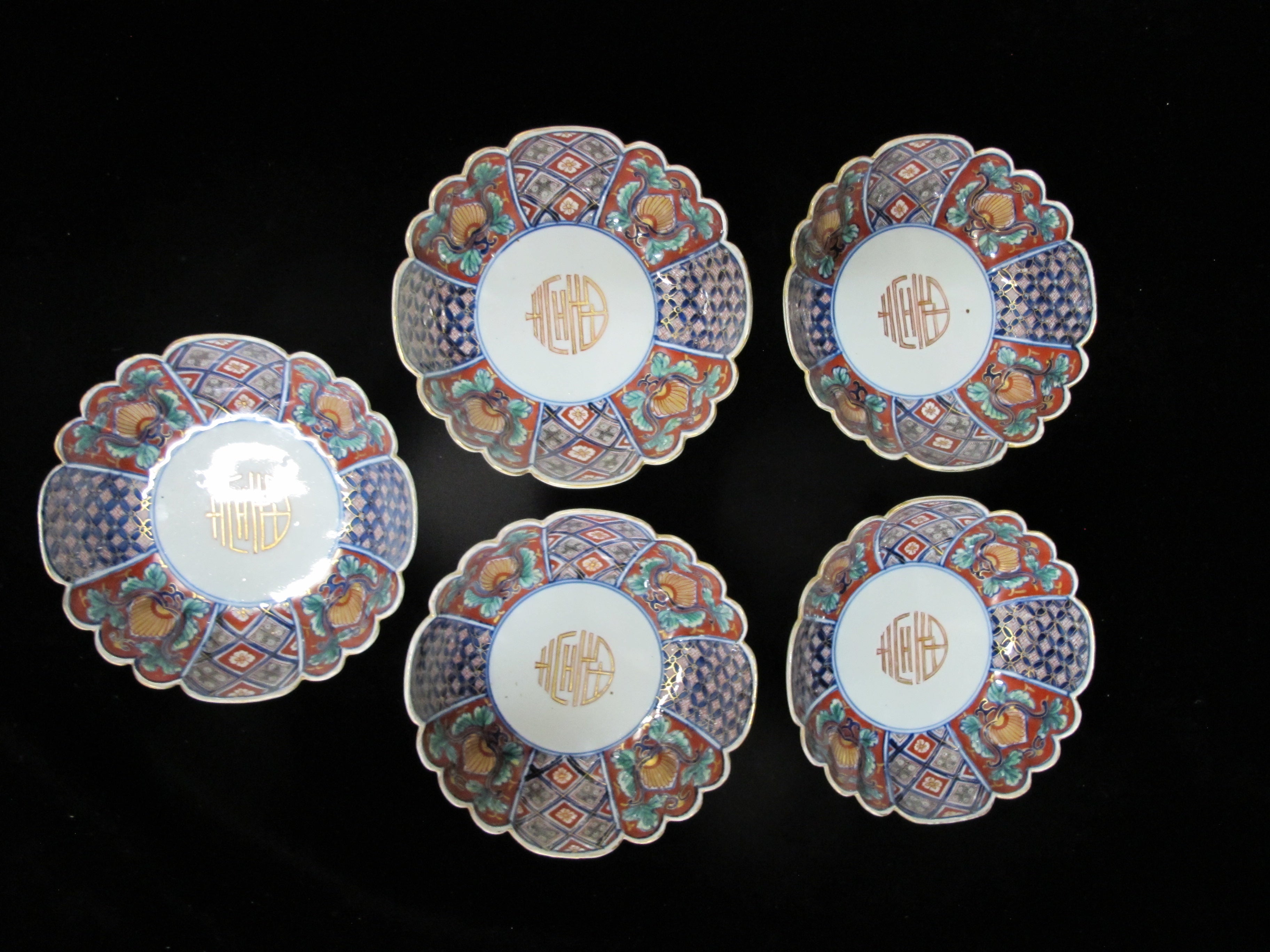JAPANESE Old IMARI or Kutani Ornate Gilt Porcelain Scalloped Rim Bowl Set of 5