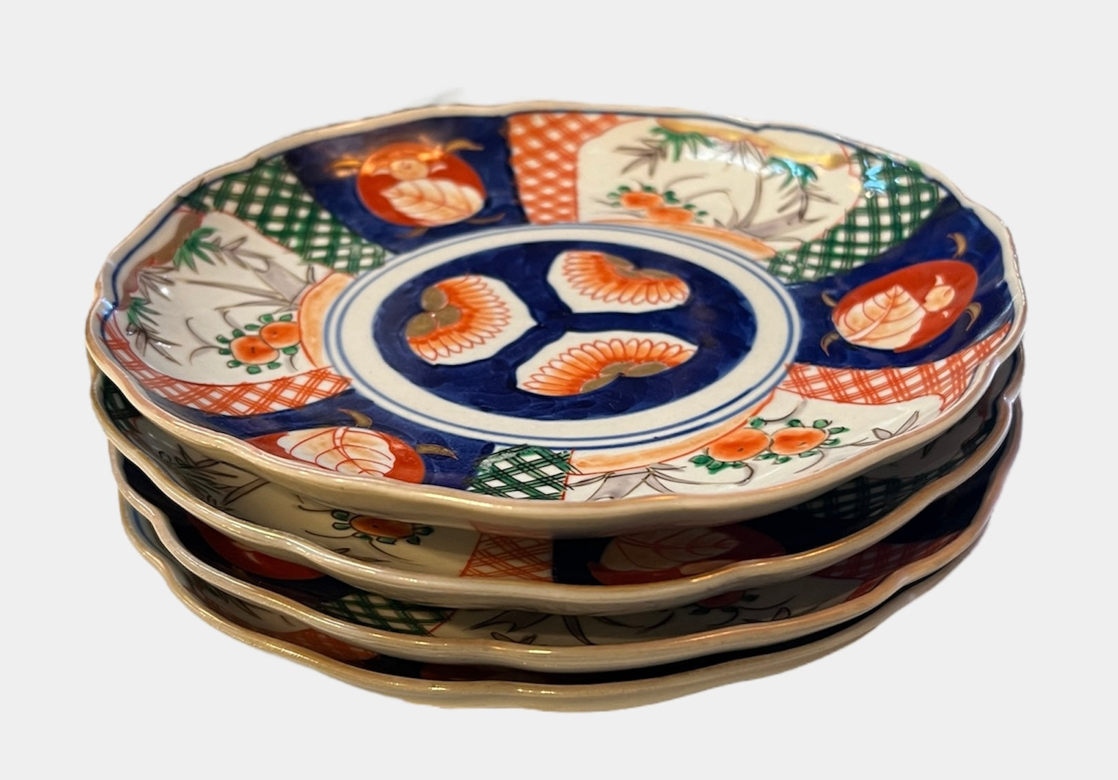 Antique JAPANESE Porcelain Gold Gilt IMARI Scallop Rim 7 1/2" Plate Set of 4