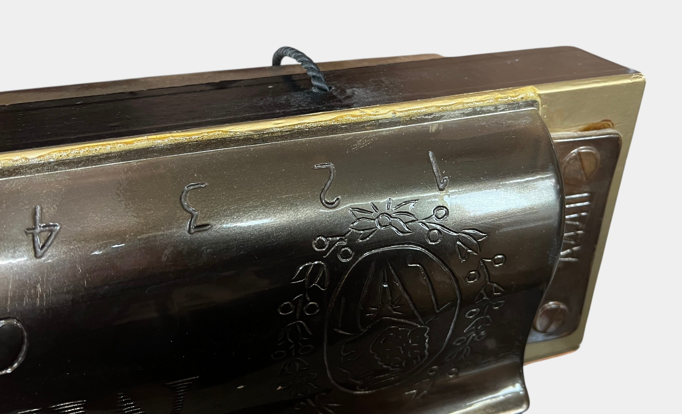 Looks to be in decent condition. The metal part is actually made of plastic and the back side looks to have been re-glued. It is glued upside down. I am not sure if that is the way it was made or if it was wrongly glued. Other than that, this is in good condition. No dents in the plastic and minimal wear on the board. Please view and zoom in on each photo taken.