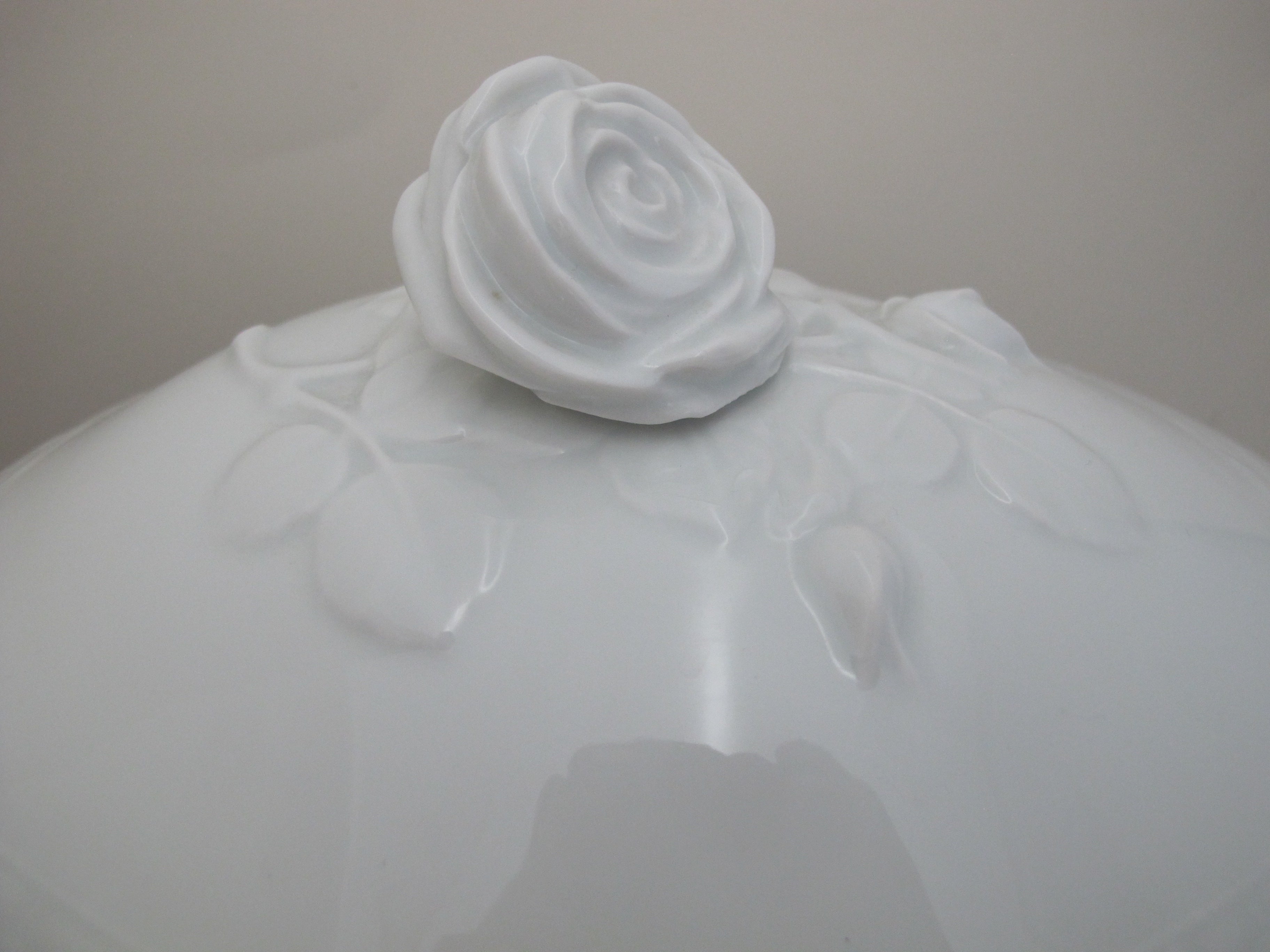 LIMOGES A Raynaud OSIER White Basket Weave Covered 12" TUREEN with Rose Finial