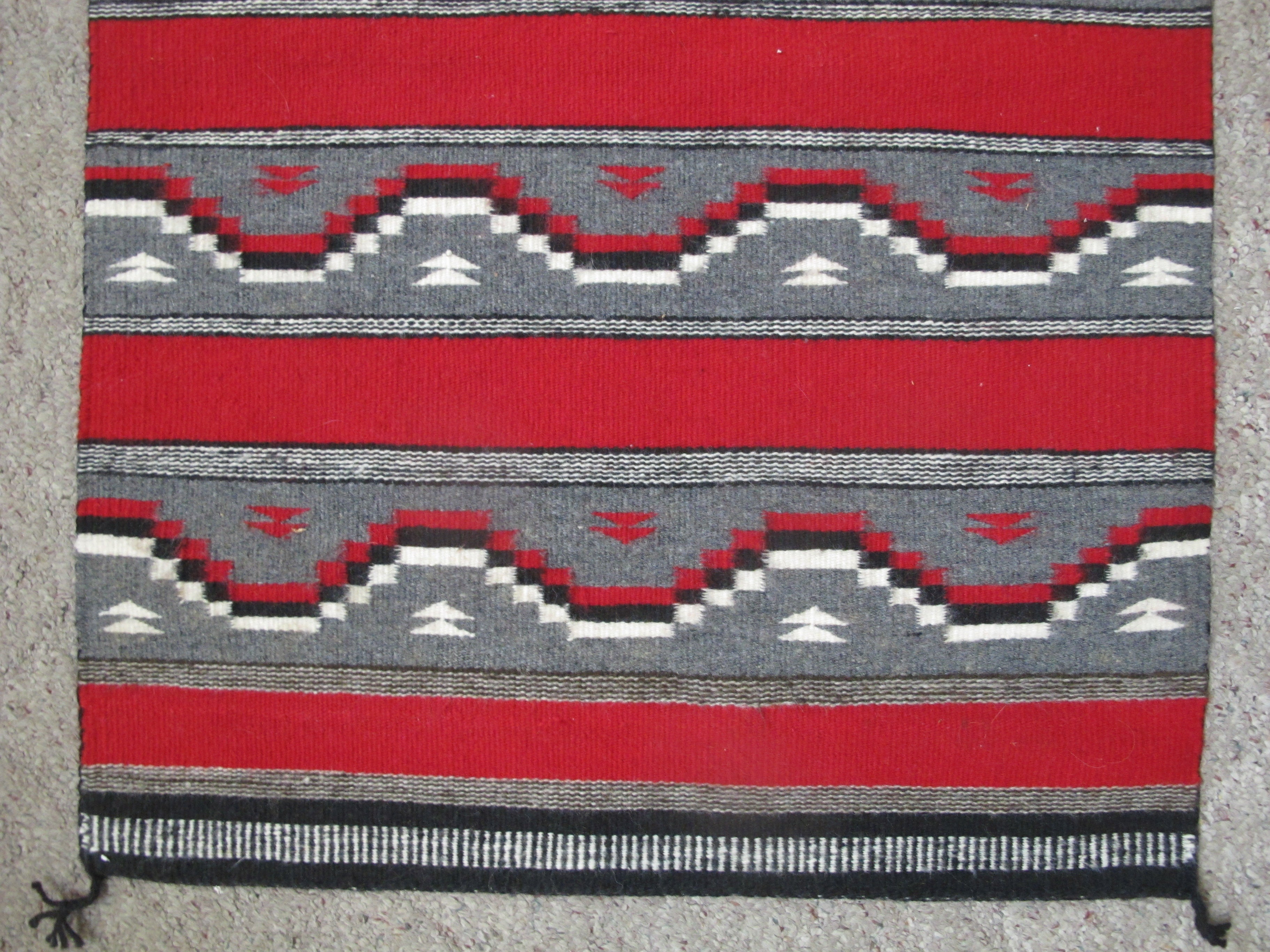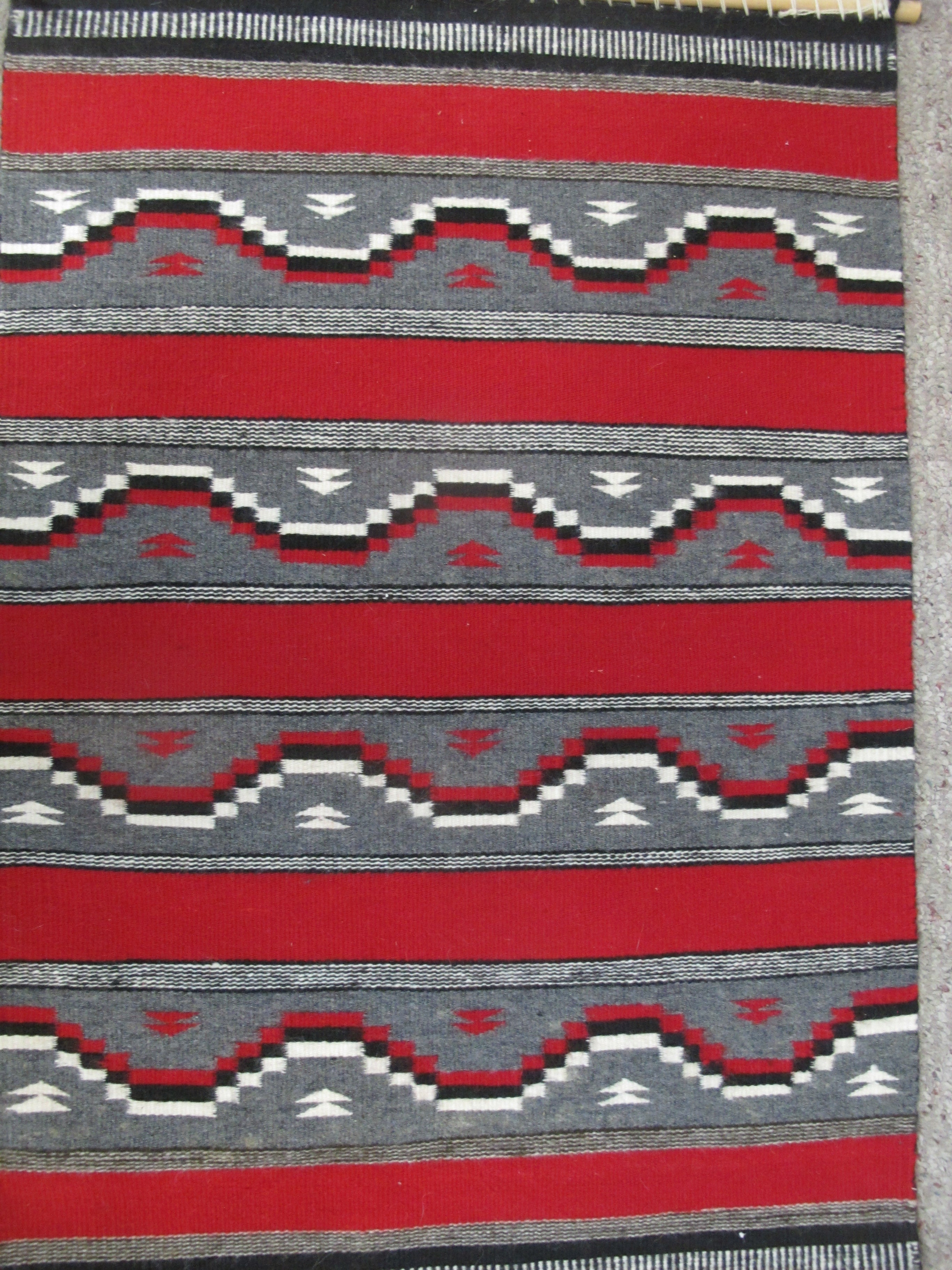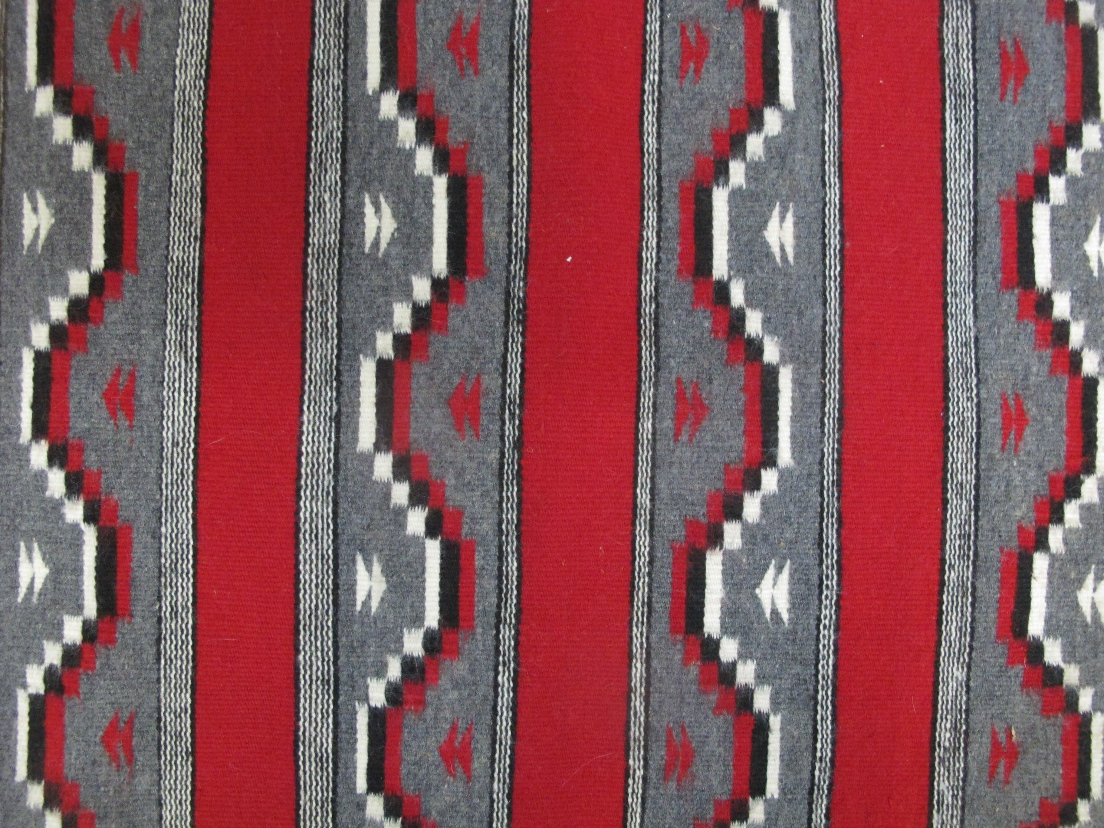 NAVAJO Vintage SW NATIVE Rose Jones Woven RED & Gray Wool Rug Tapestry Blanket