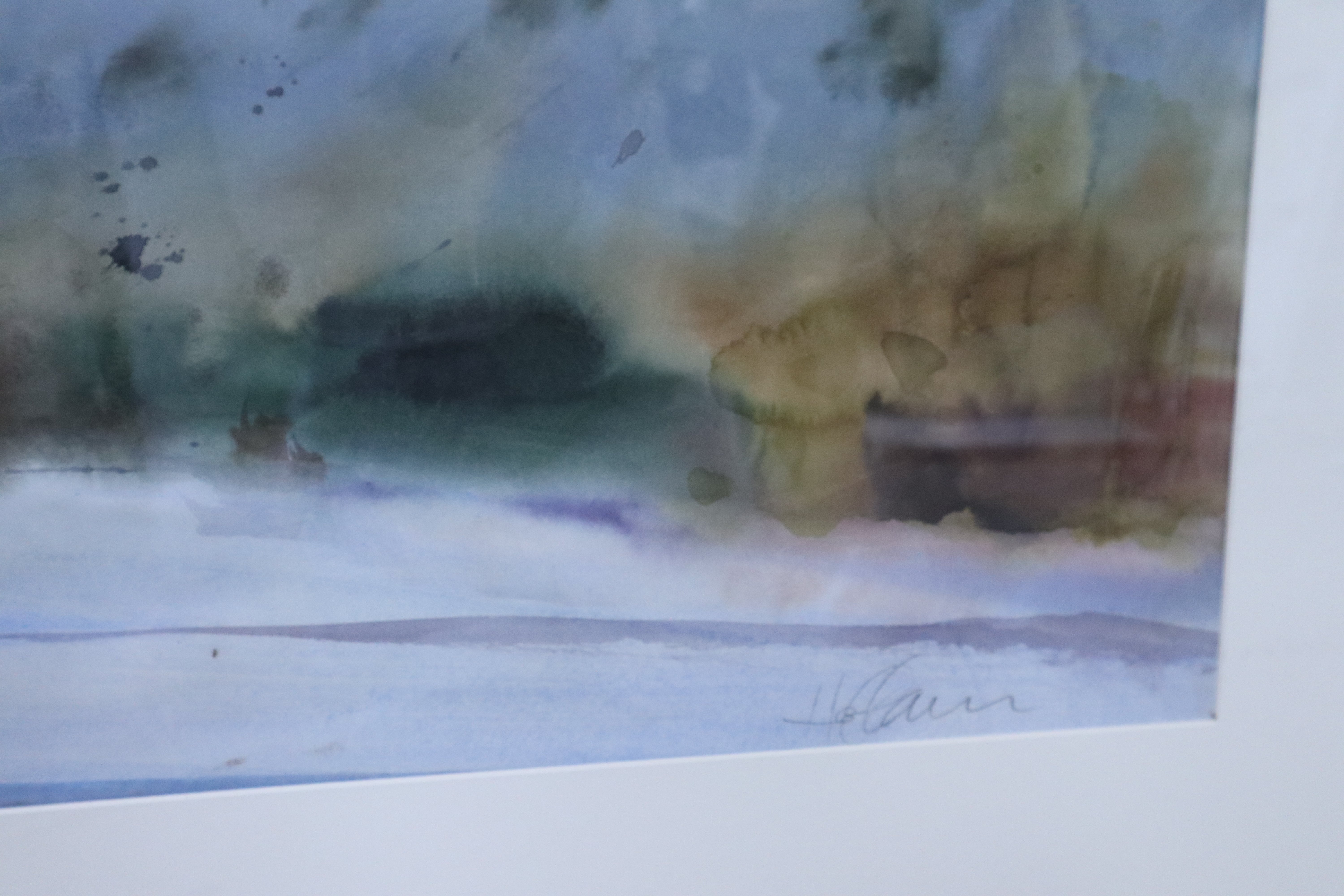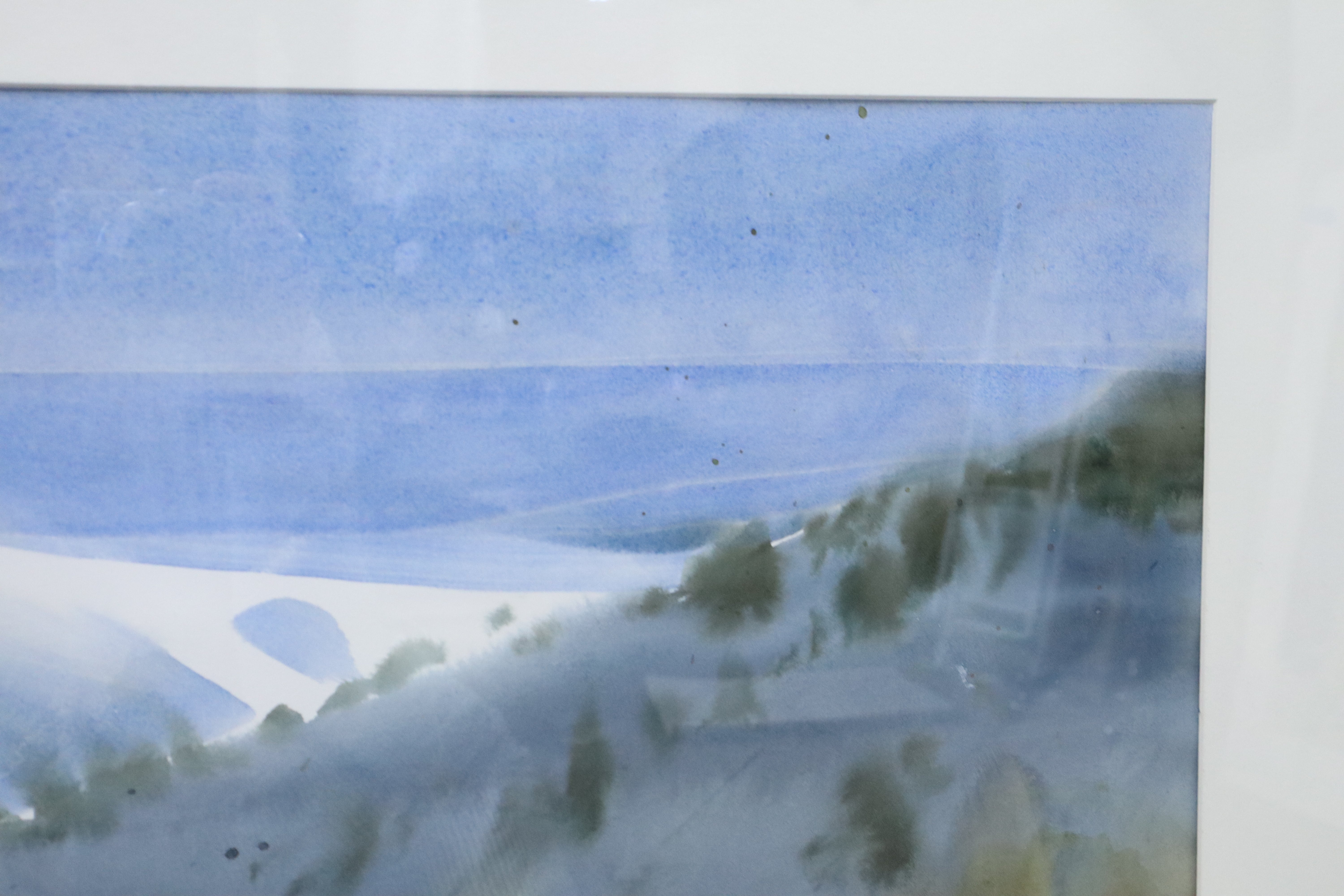 Great condition. There is an ant that has been framed with the watercolor, it's near the bottom middle on the matted area. It is stuck underneath the glass and would have to be unframed to be removed.