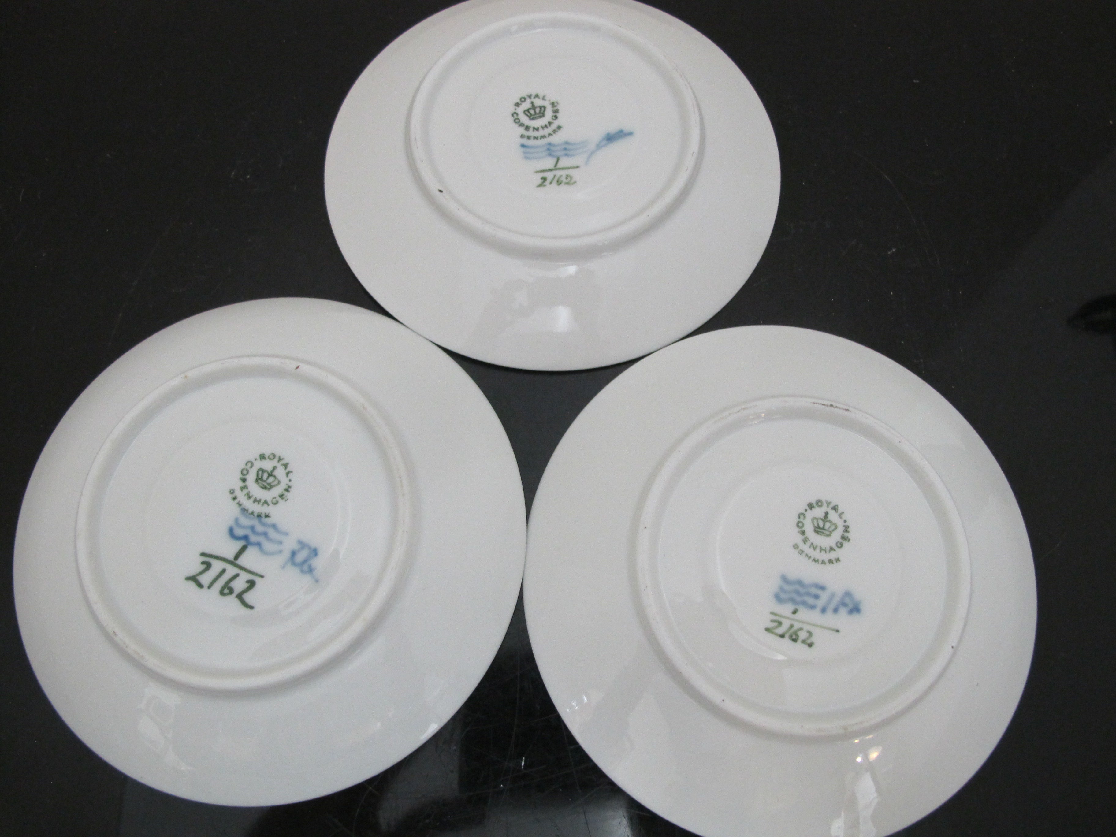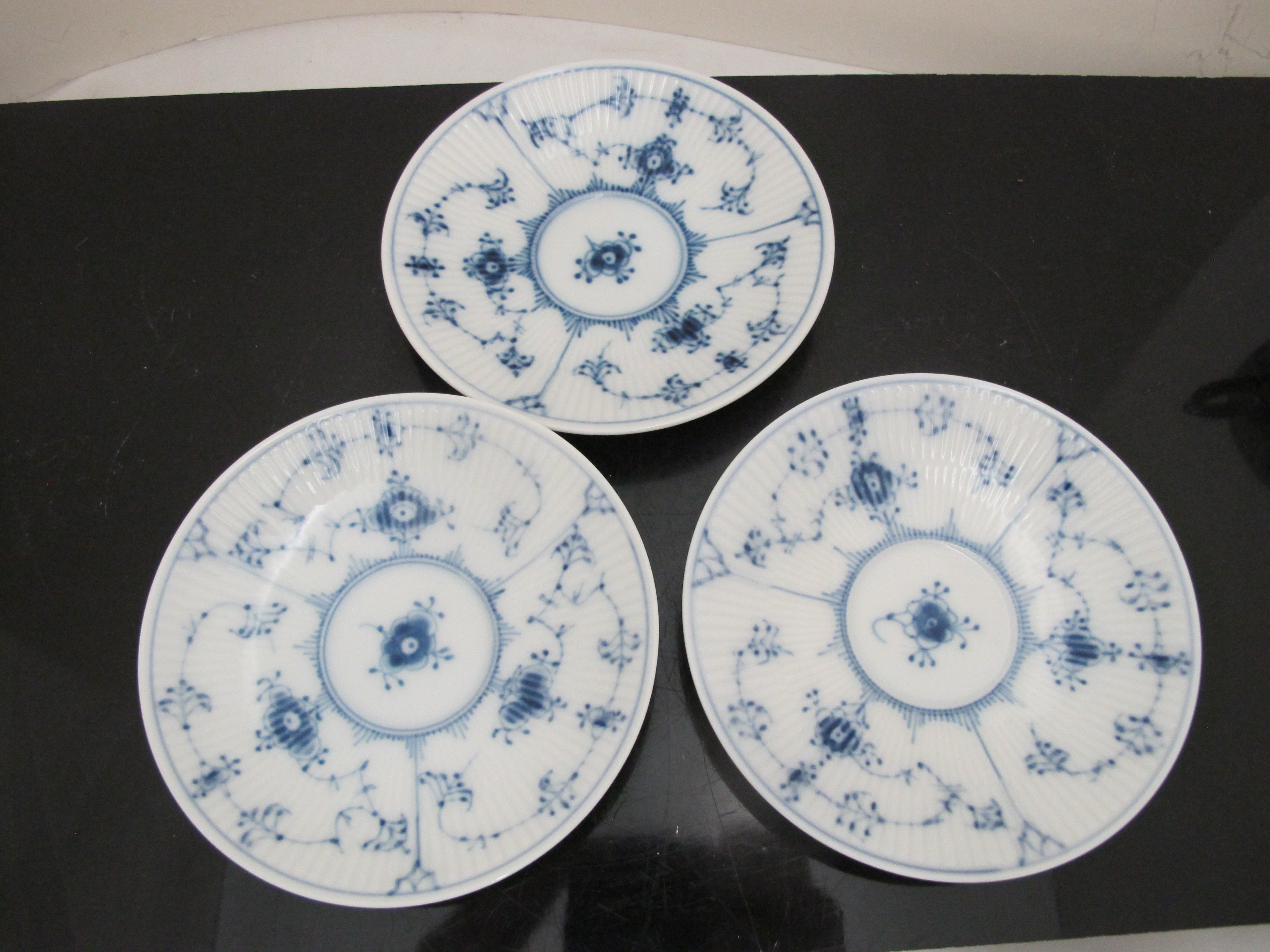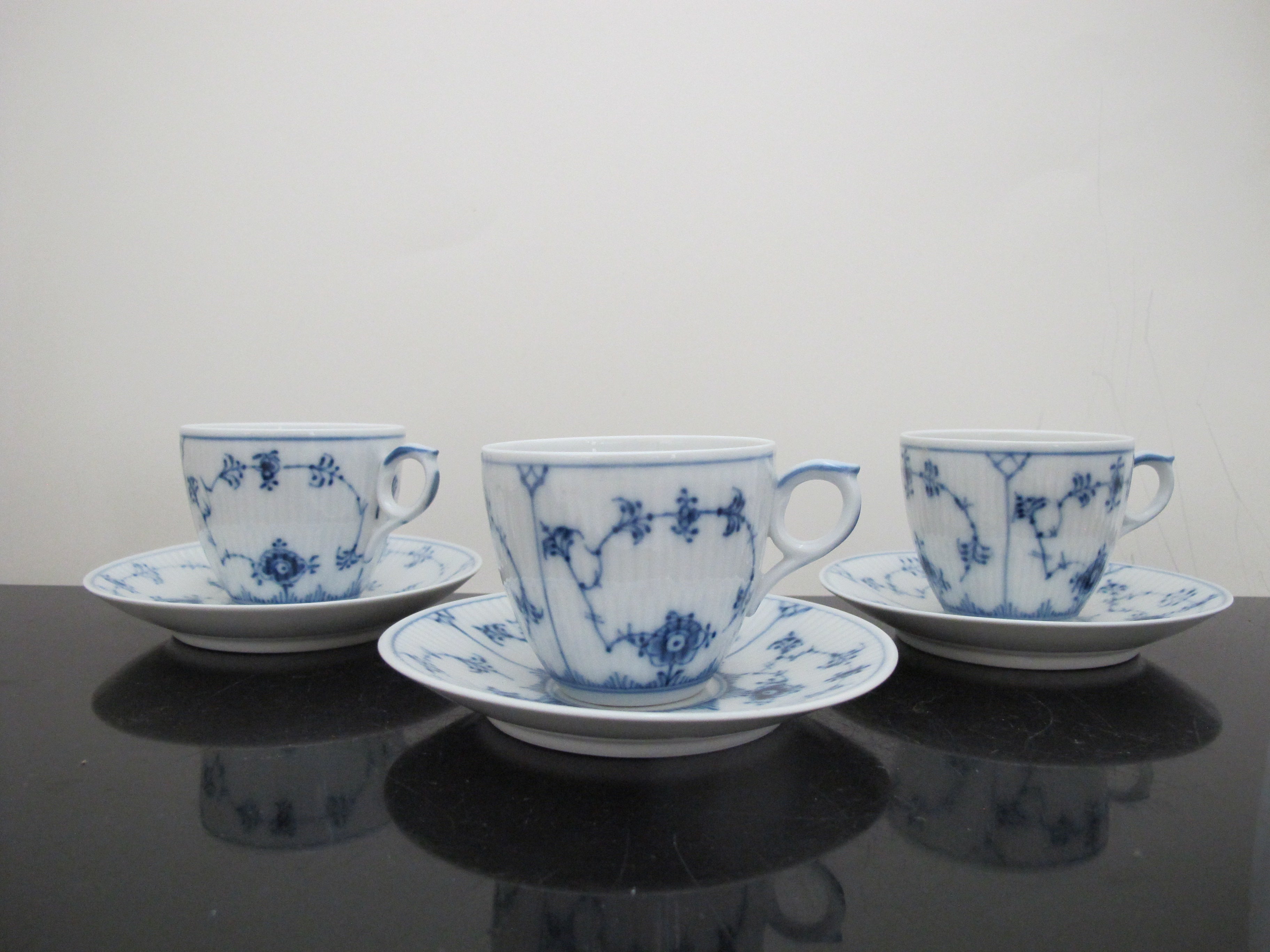 Royal Copenhagen Denmark 2162 Plain Blue Fluted Flat CUP & SAUCER Set of 3