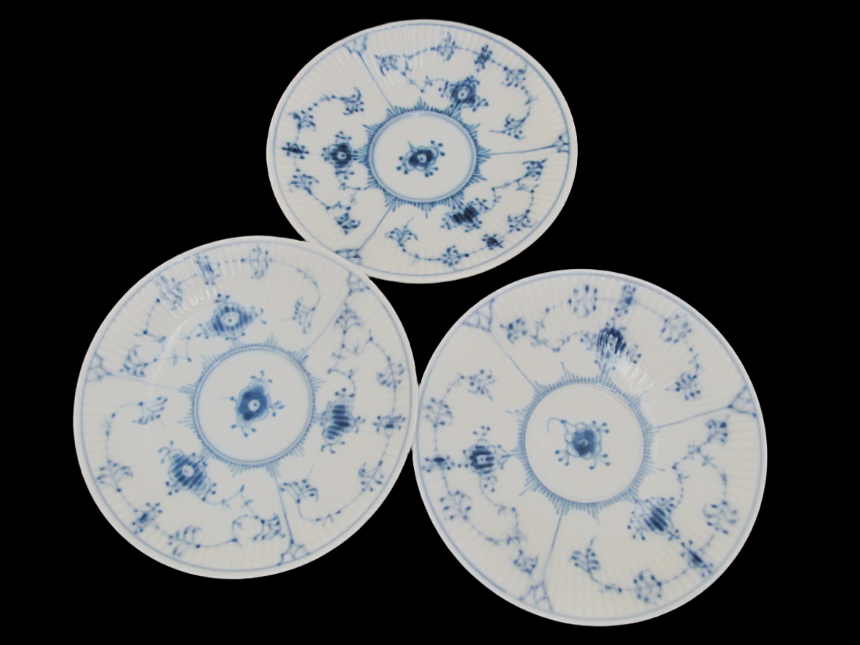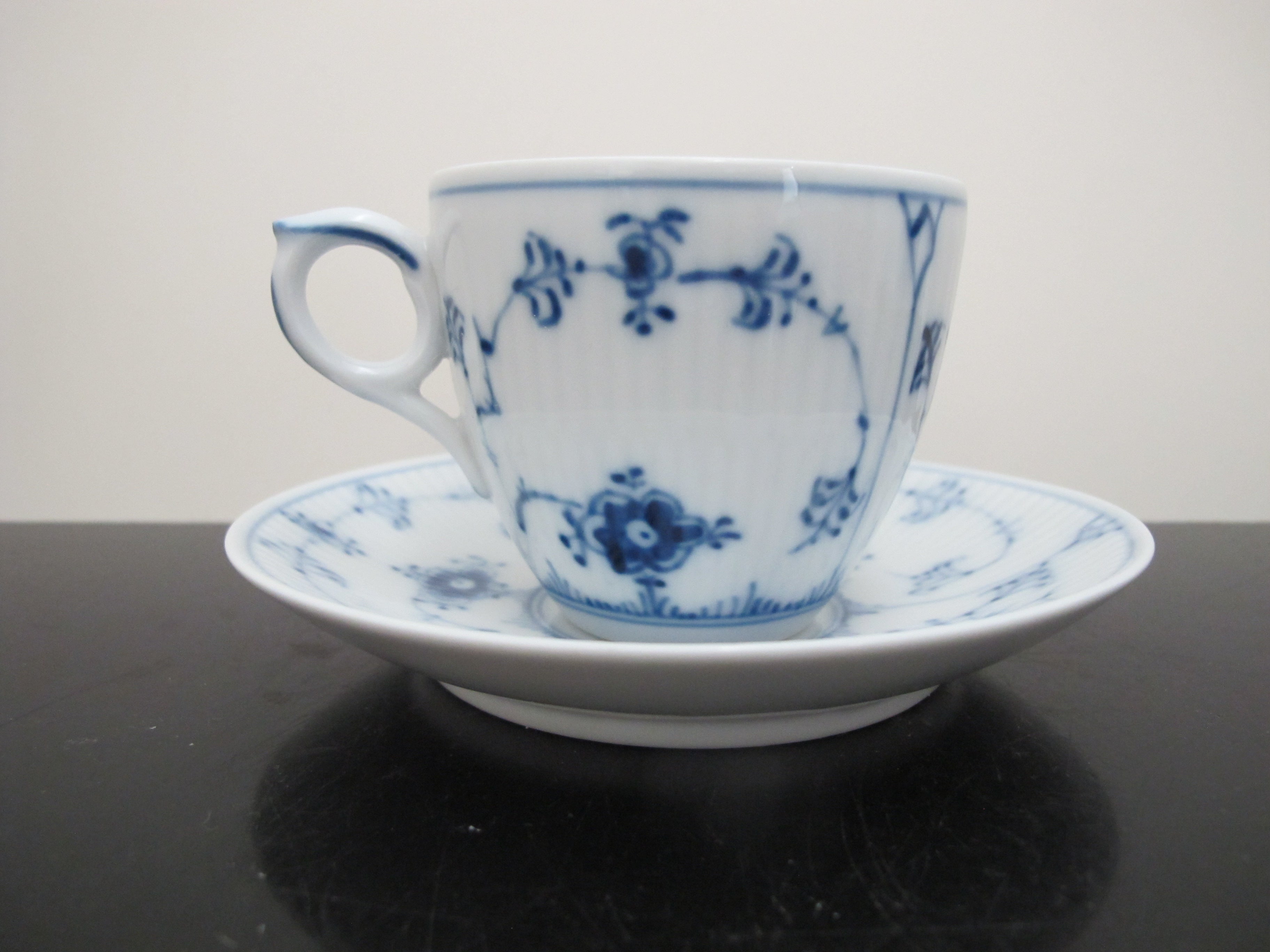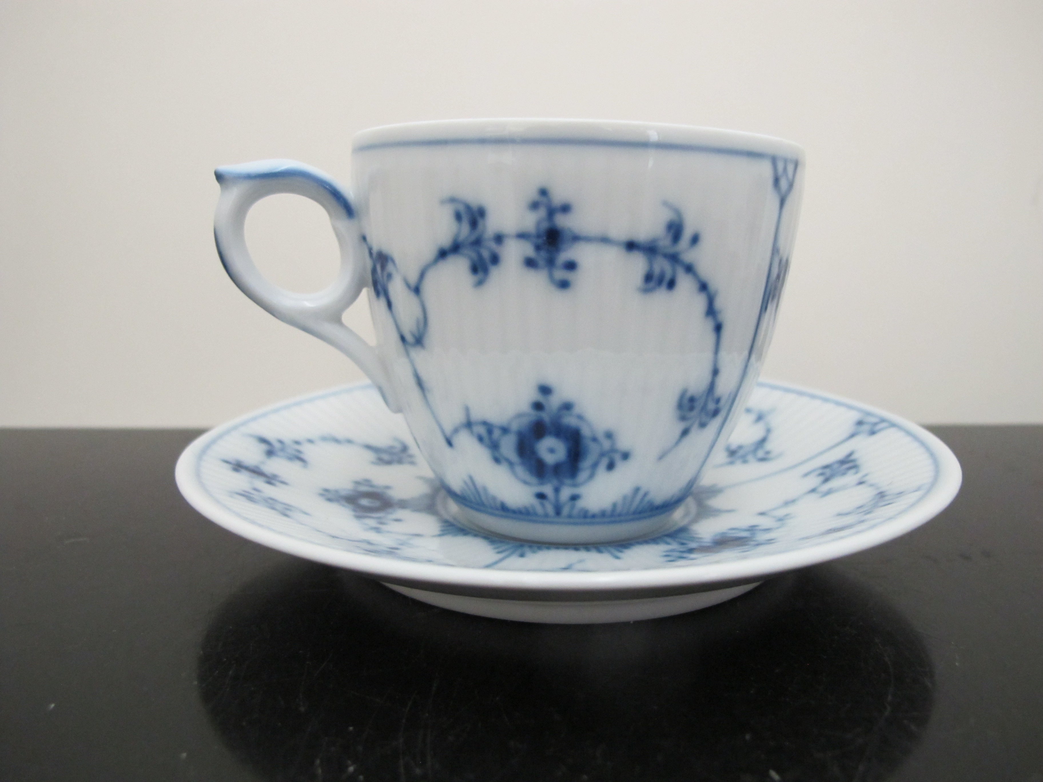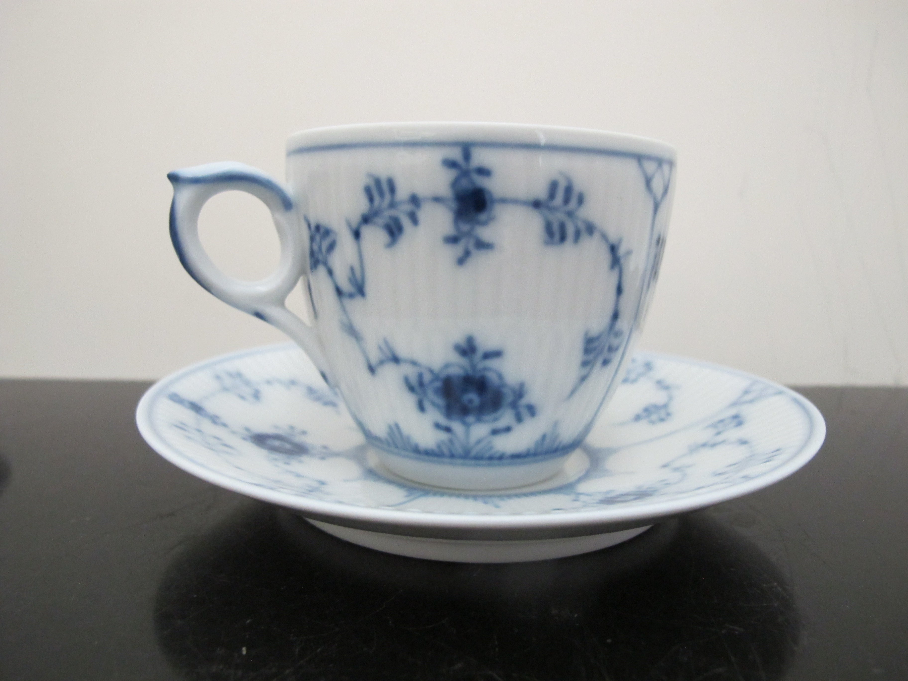 Royal Copenhagen Denmark 2162 Plain Blue Fluted Flat CUP & SAUCER Set of 3