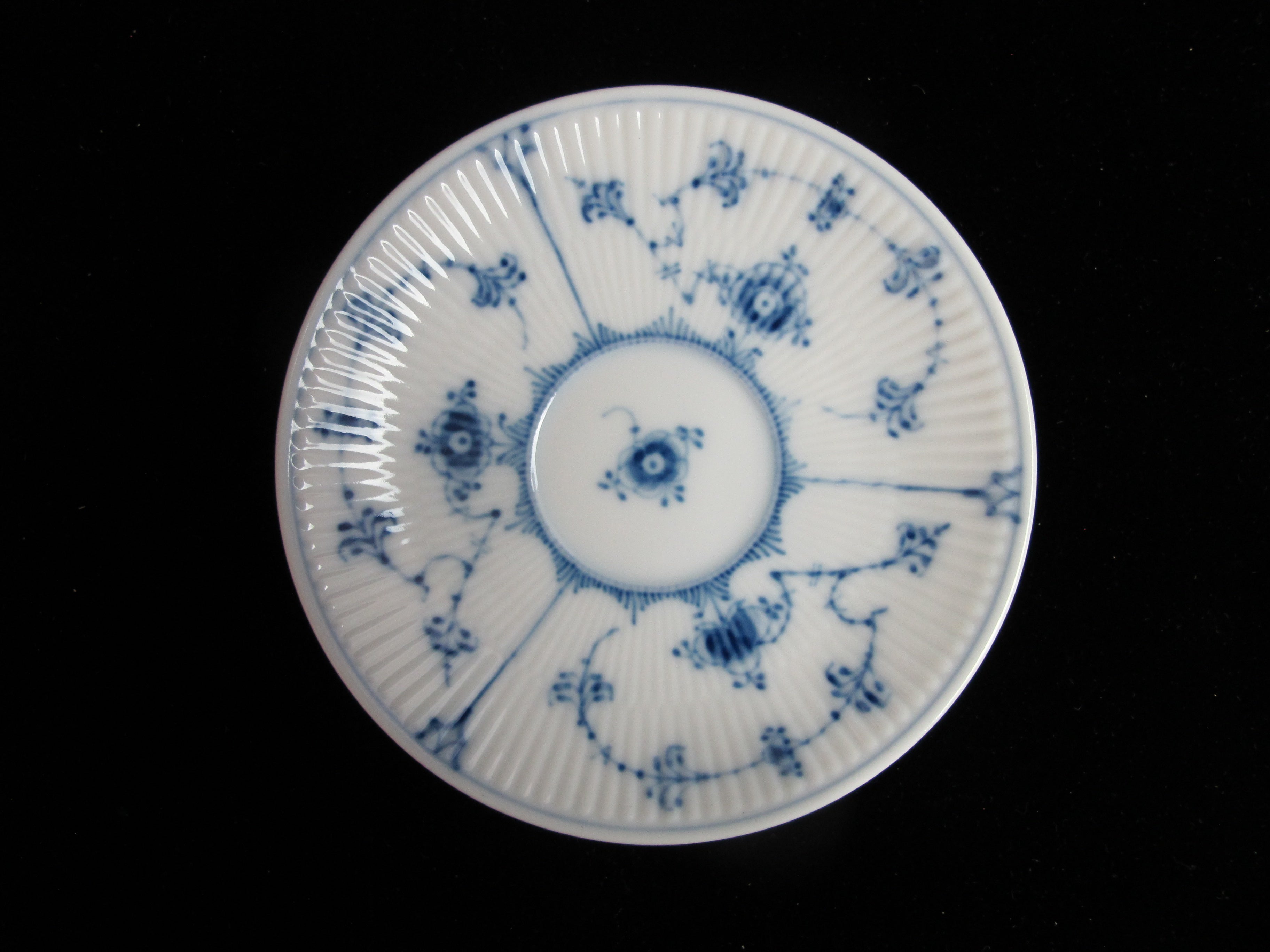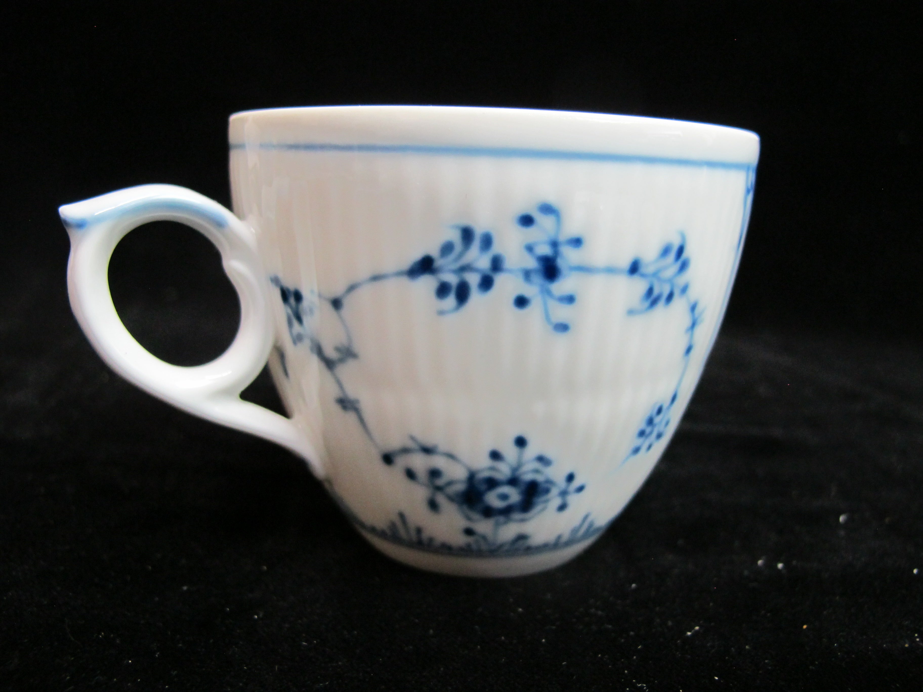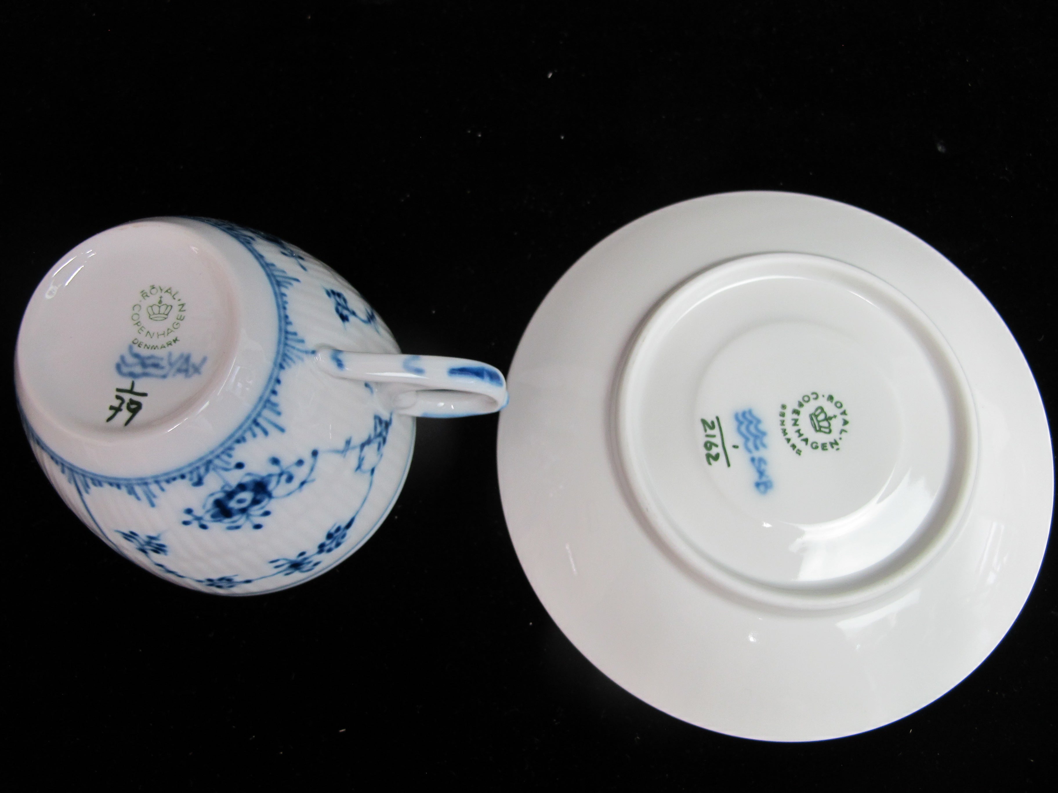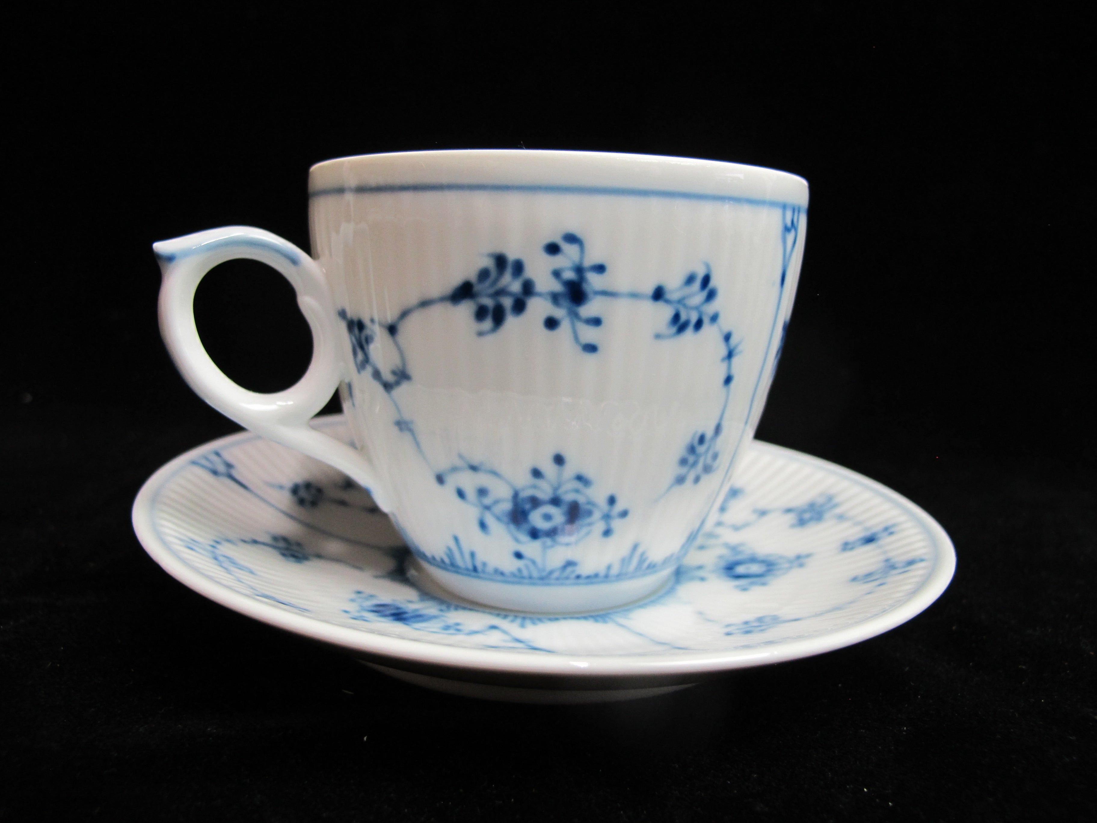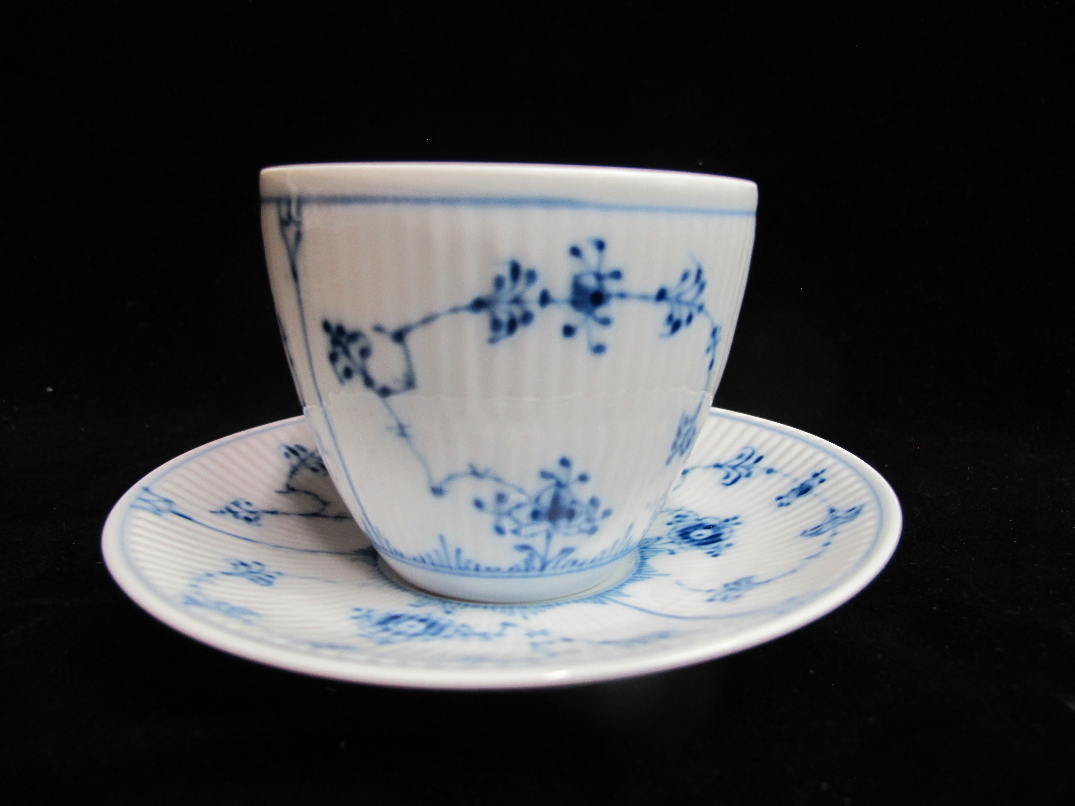 Royal Copenhagen Denmark 79 & 2162 Plain Blue Flower Fluted Flat CUP & SAUCER