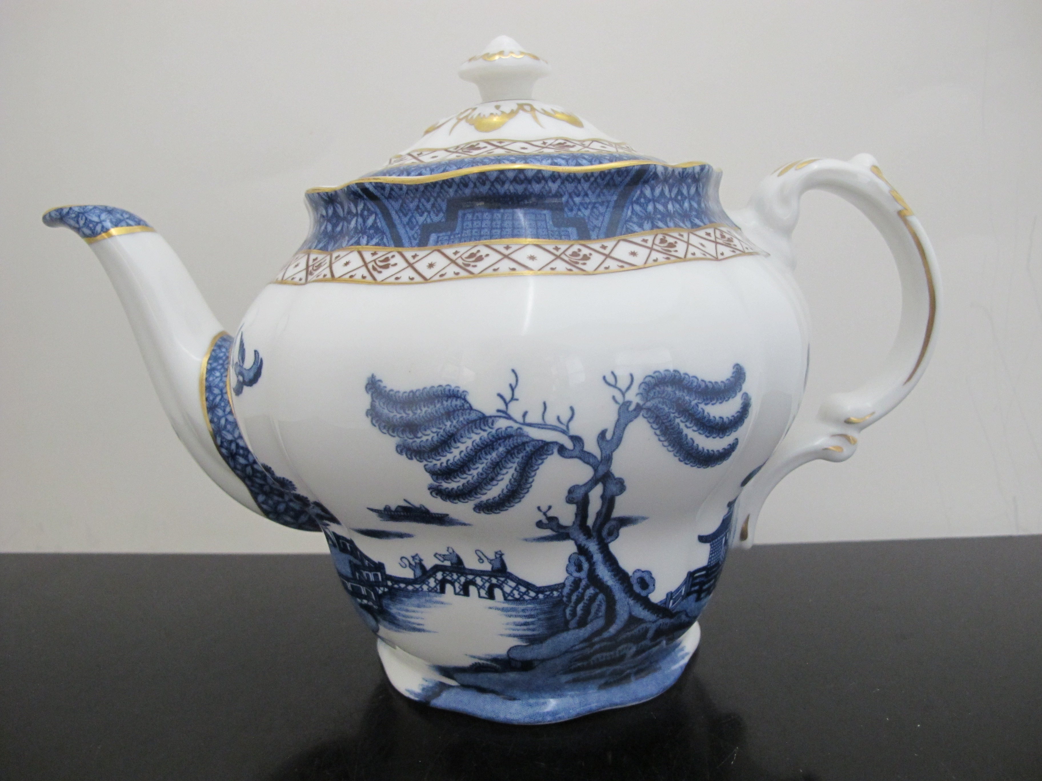 ROYAL DOULTON England Booths Real Old WILLOW Blue & Gold Fine China TEAPOT