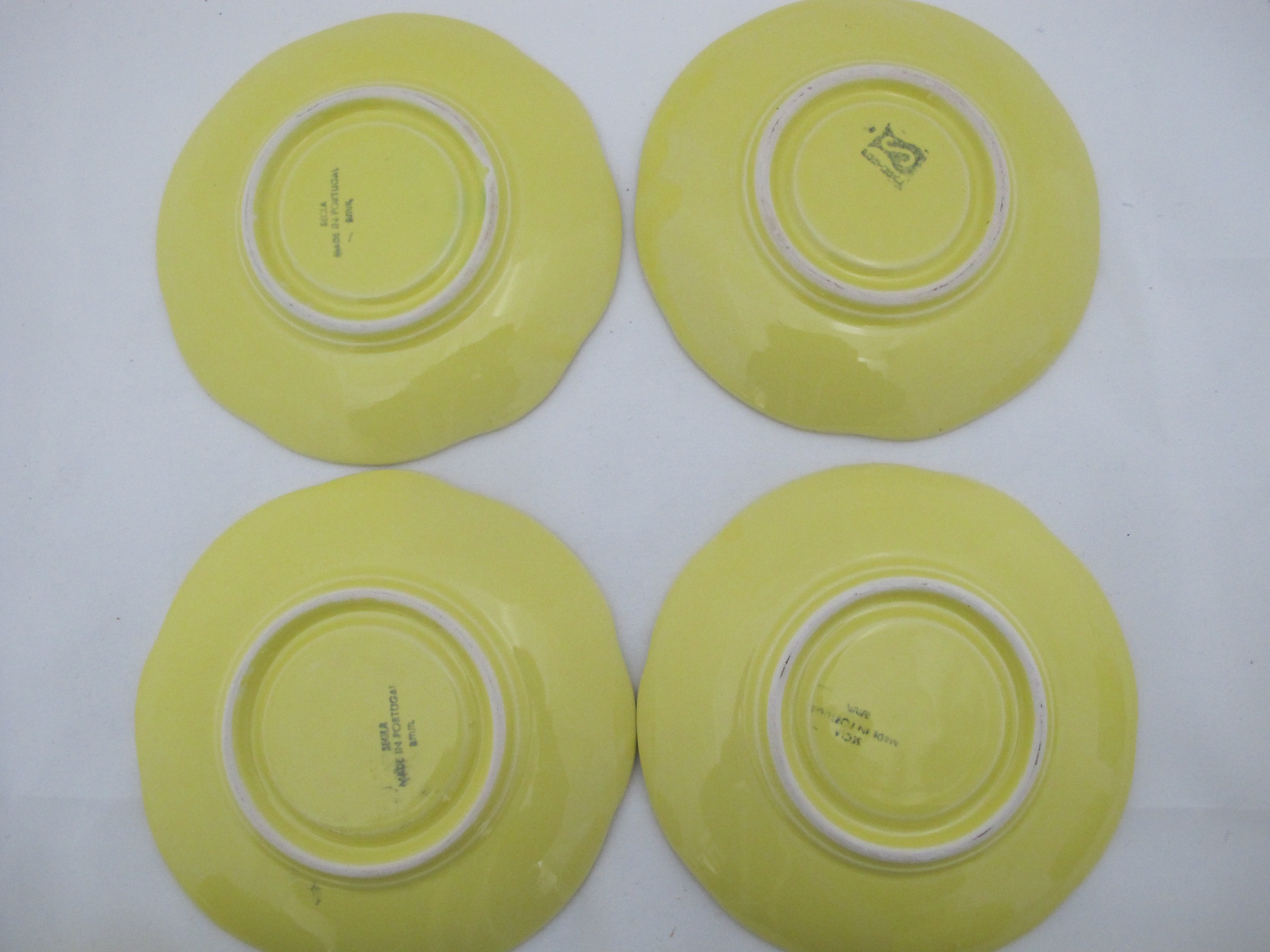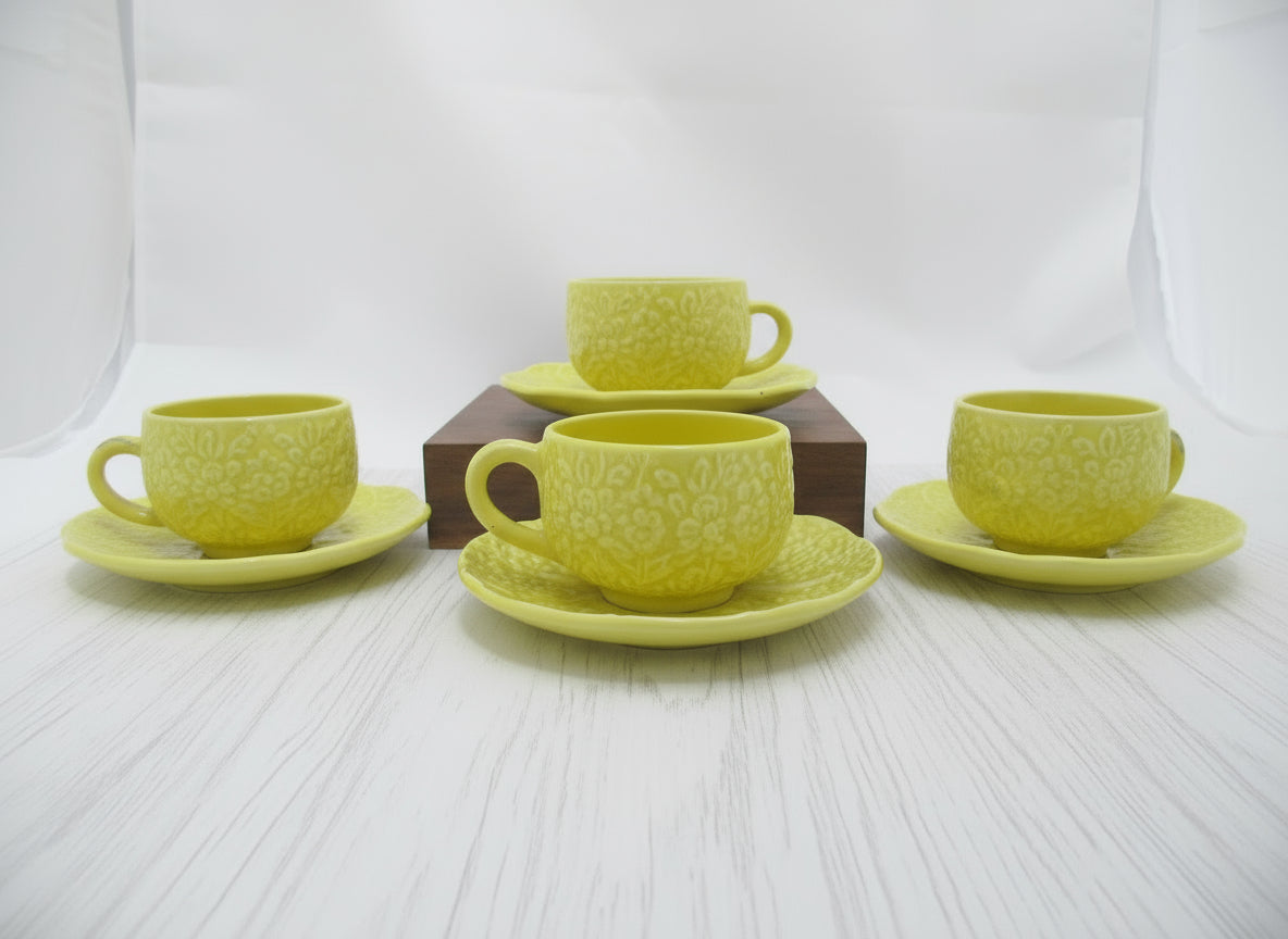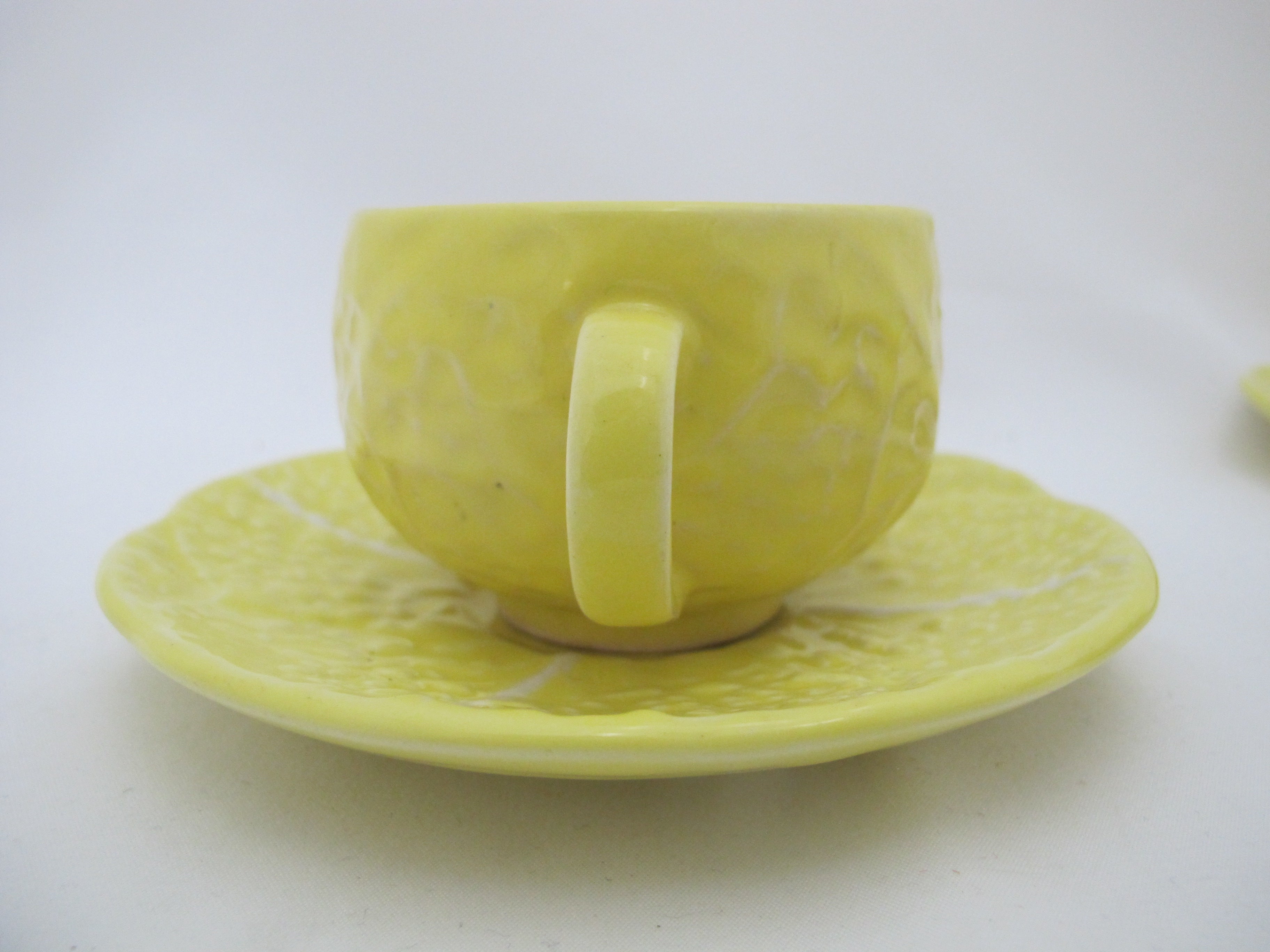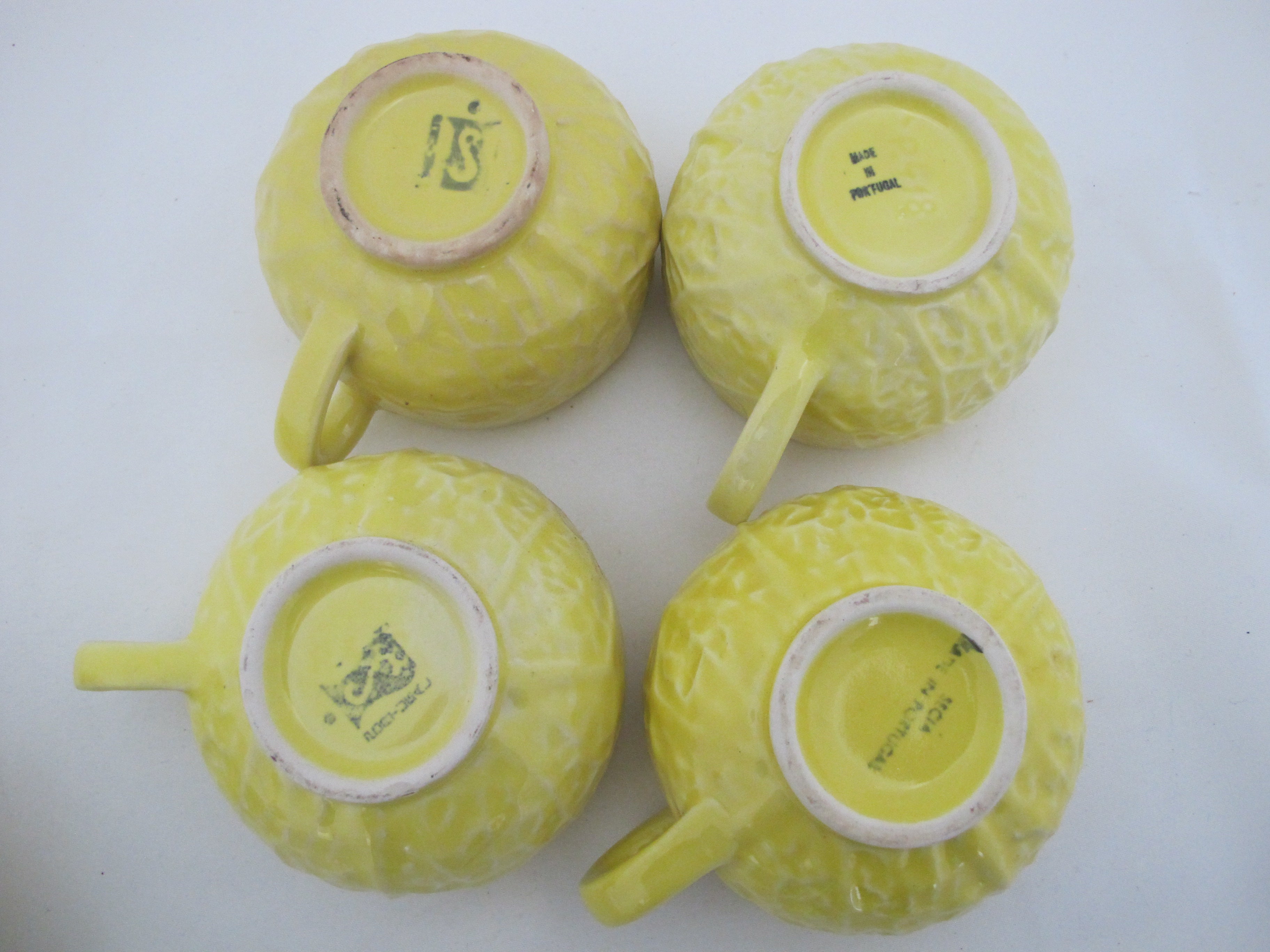 SECLA Portugal Yellow MCM Majolica CABBAGE LEAF Tea Cup & Saucer Set of 4