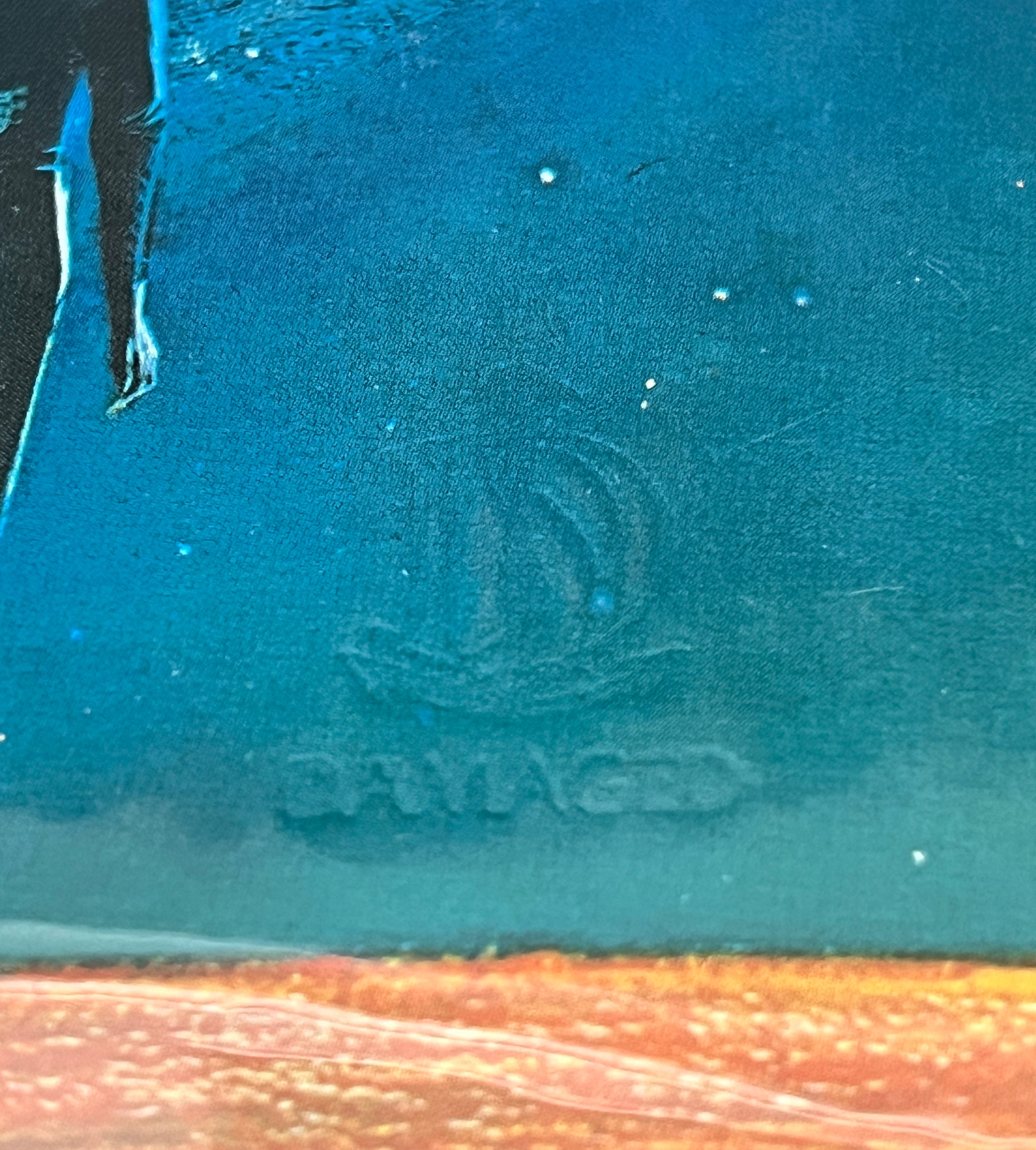 Book is likely a 1st edition ex-library copy. There is a "damage" stamp from the library. The damage can be seen if you open the cover on the 1st page. Appears to be some sort of stain. Other than that, the book is in really good condition. Personally, I believe the stamp adds to the "coolness" of the book. It was signed after it was stamped damaged which is neat.