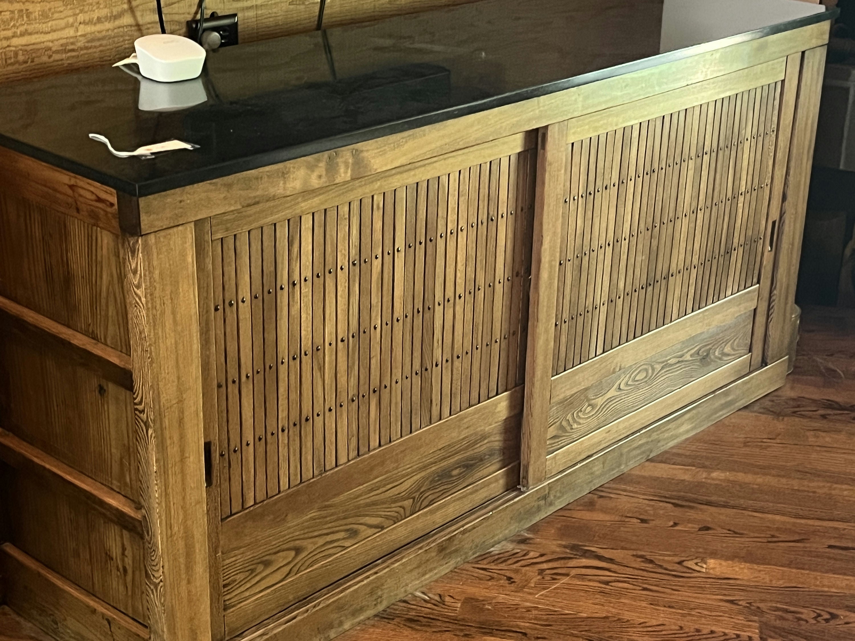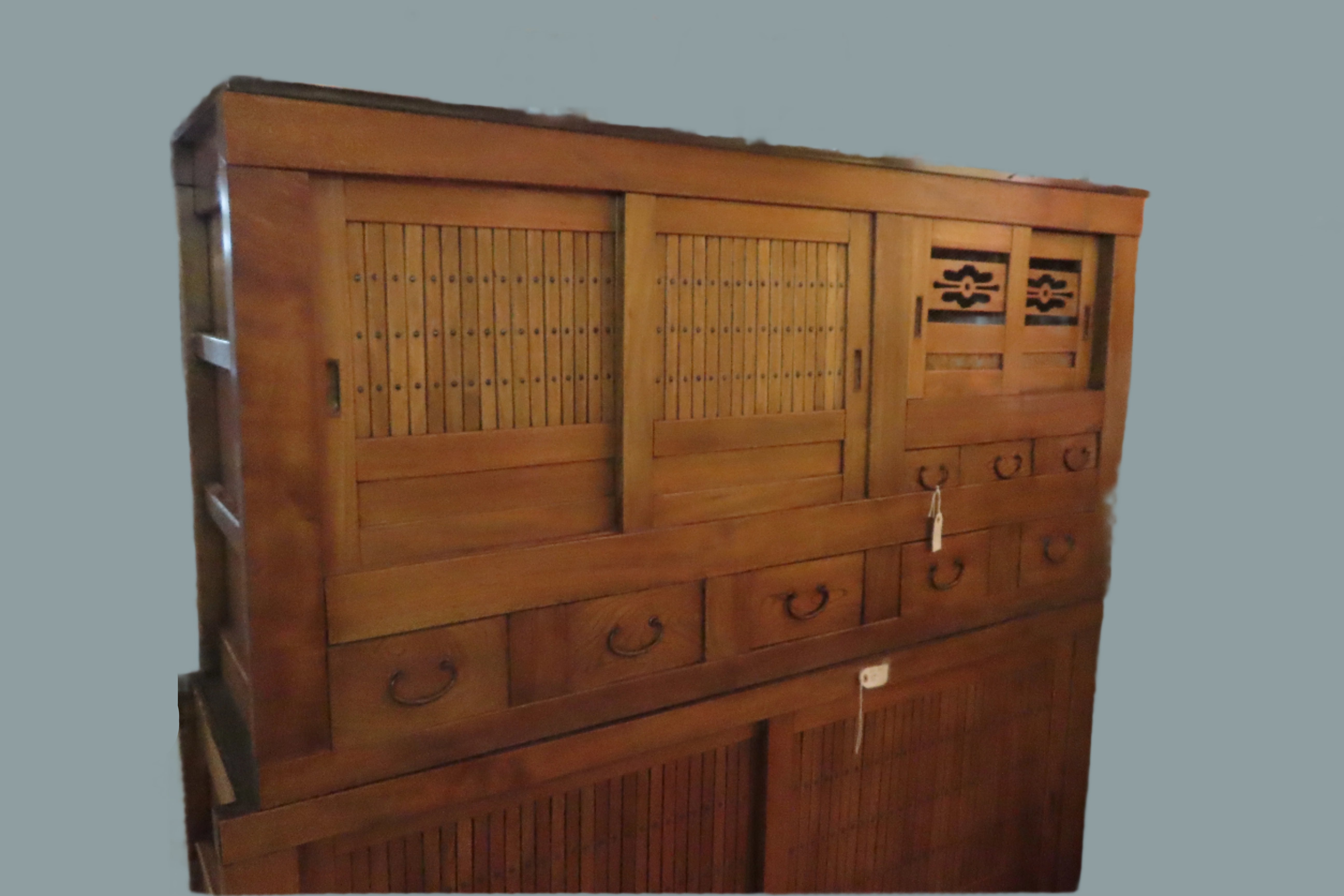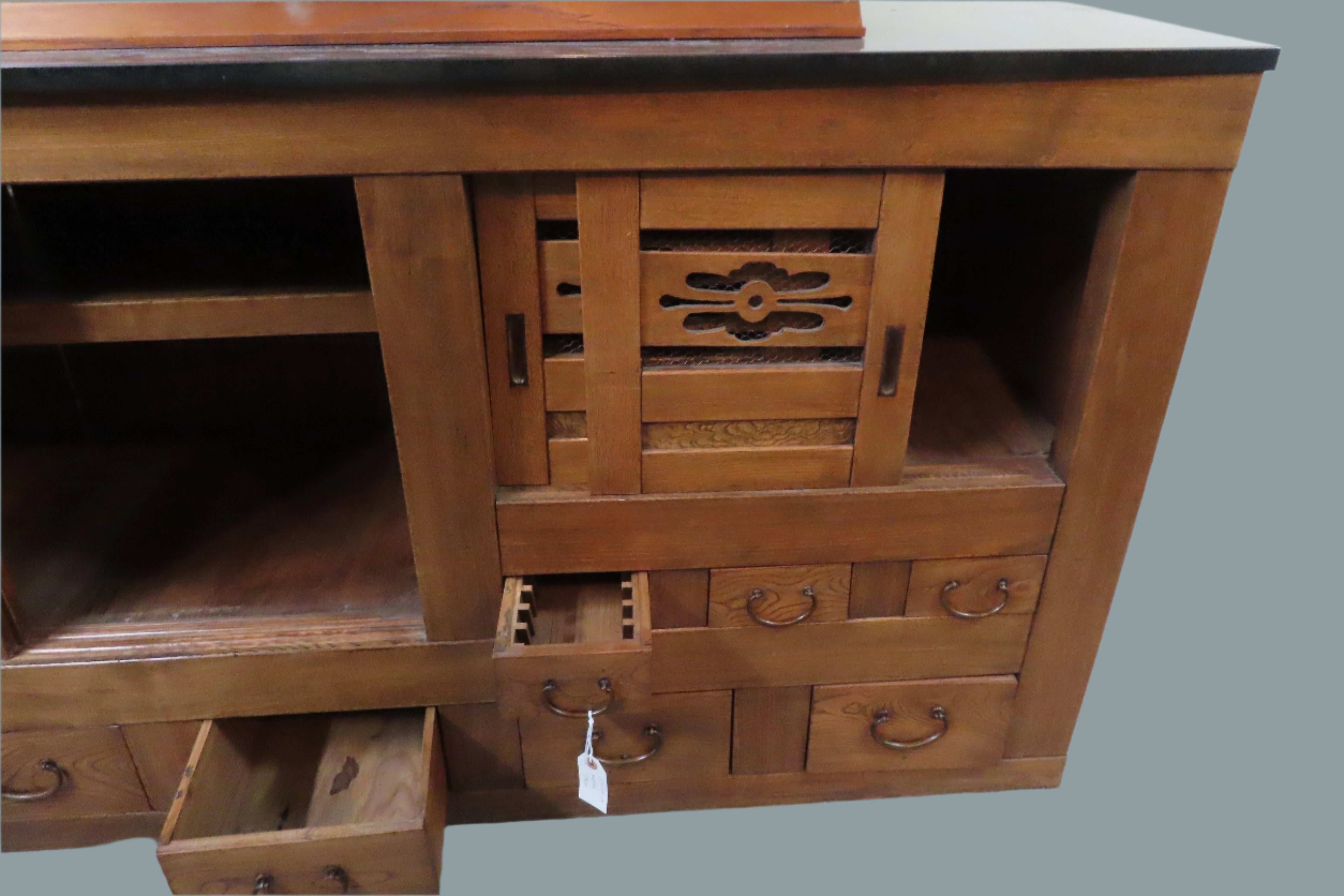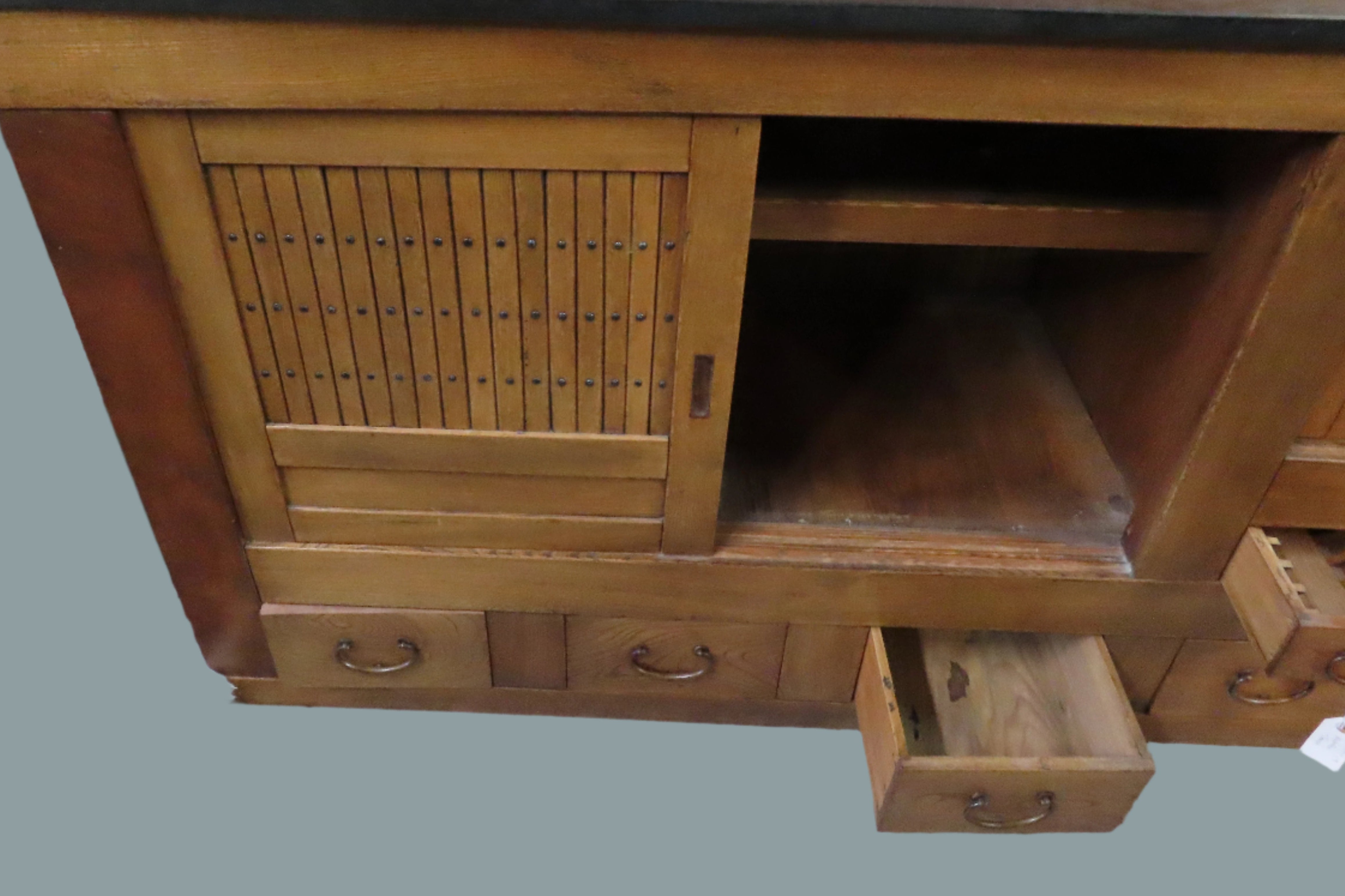 Pair of Antique Japanese Kitchen Tansu Meiji Era With Black Granite Tops