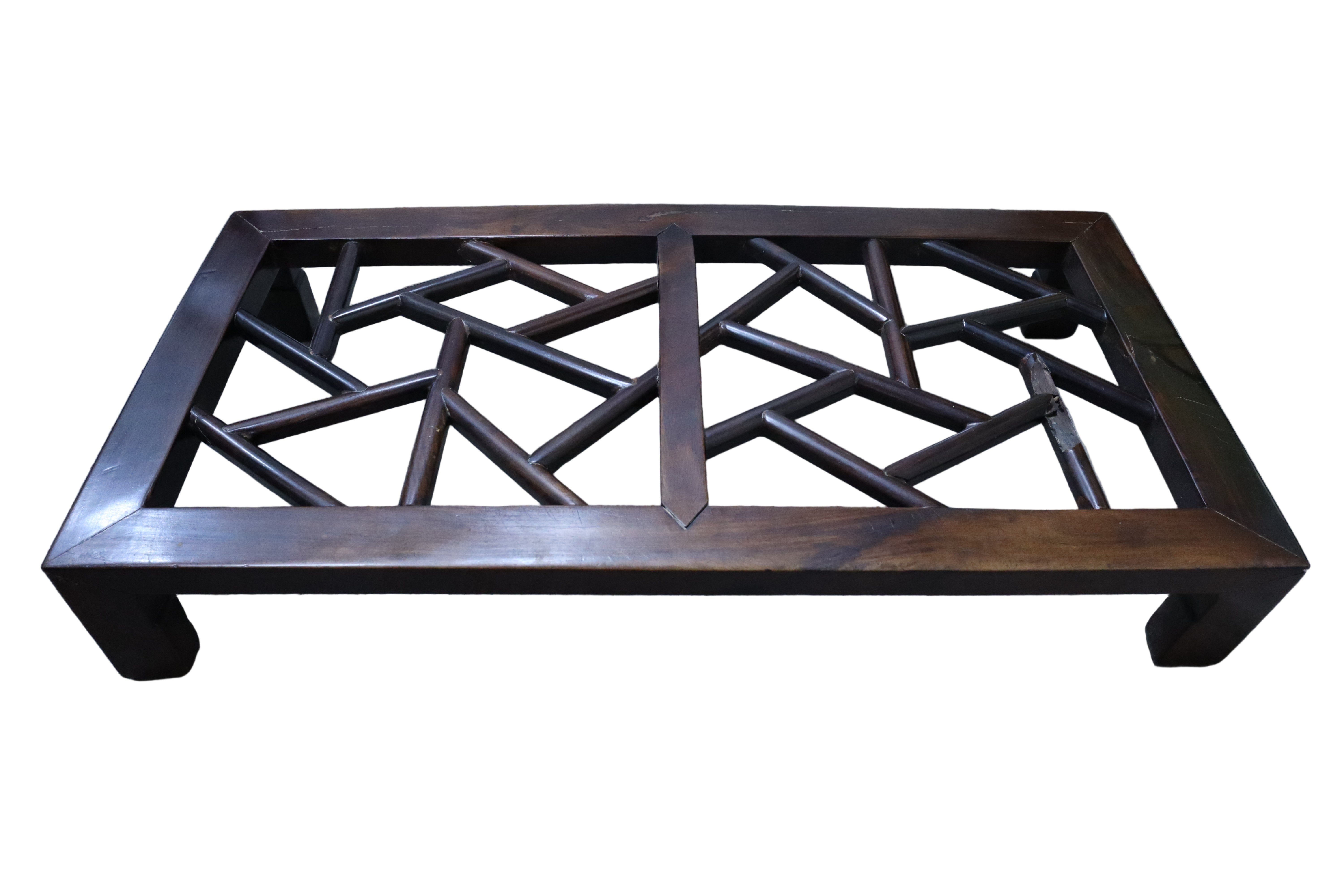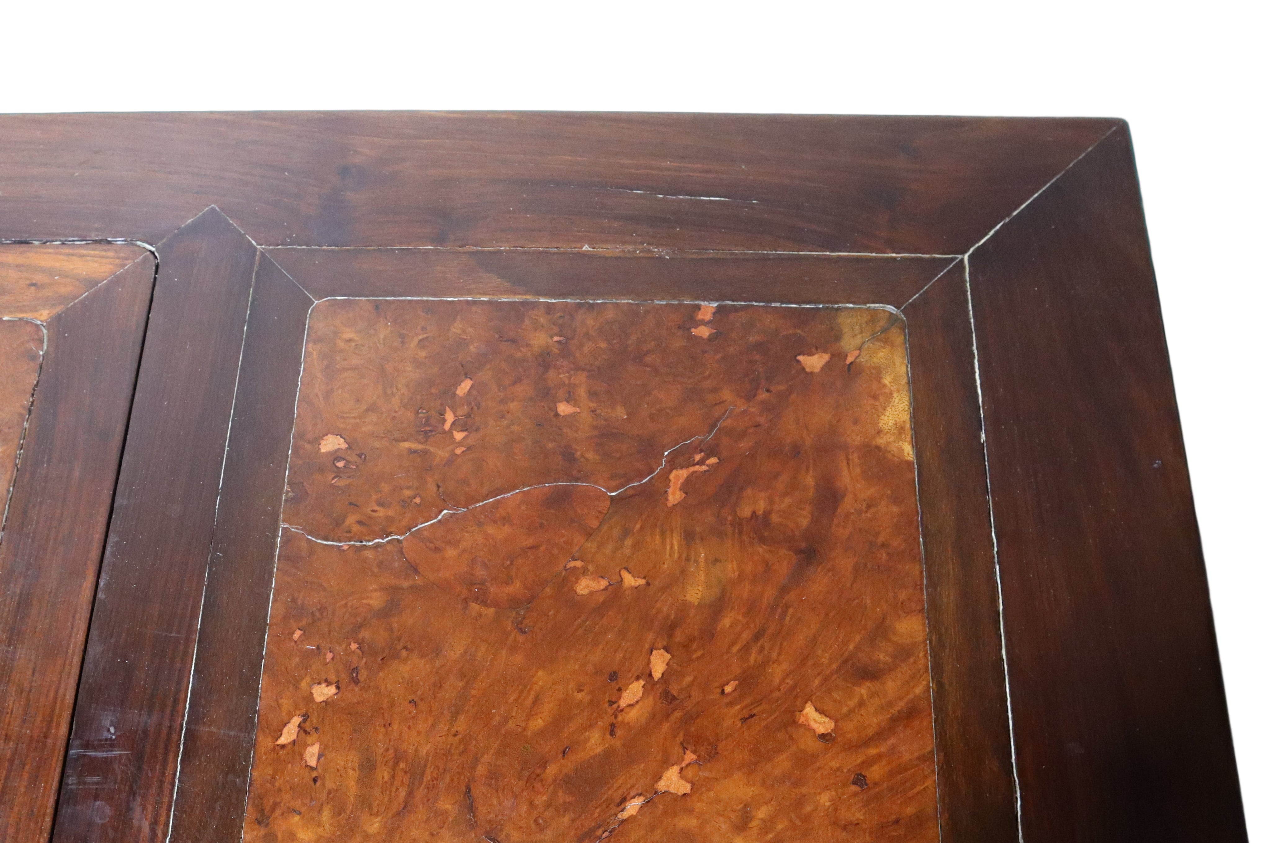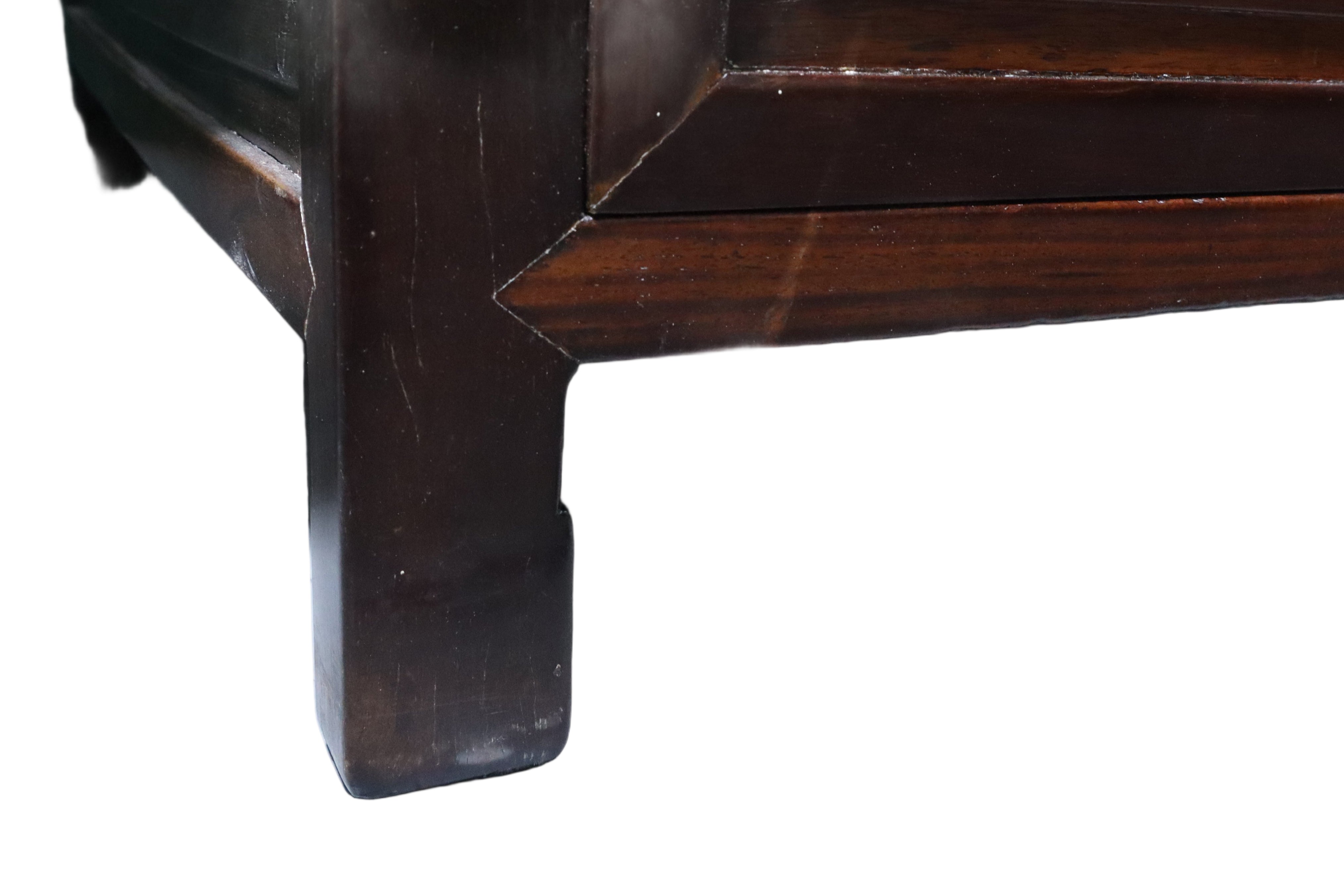 Unique Antique Ming Style Chinese Dark Elm Desk With Brass Hardware Burl Wood & Foot Rest