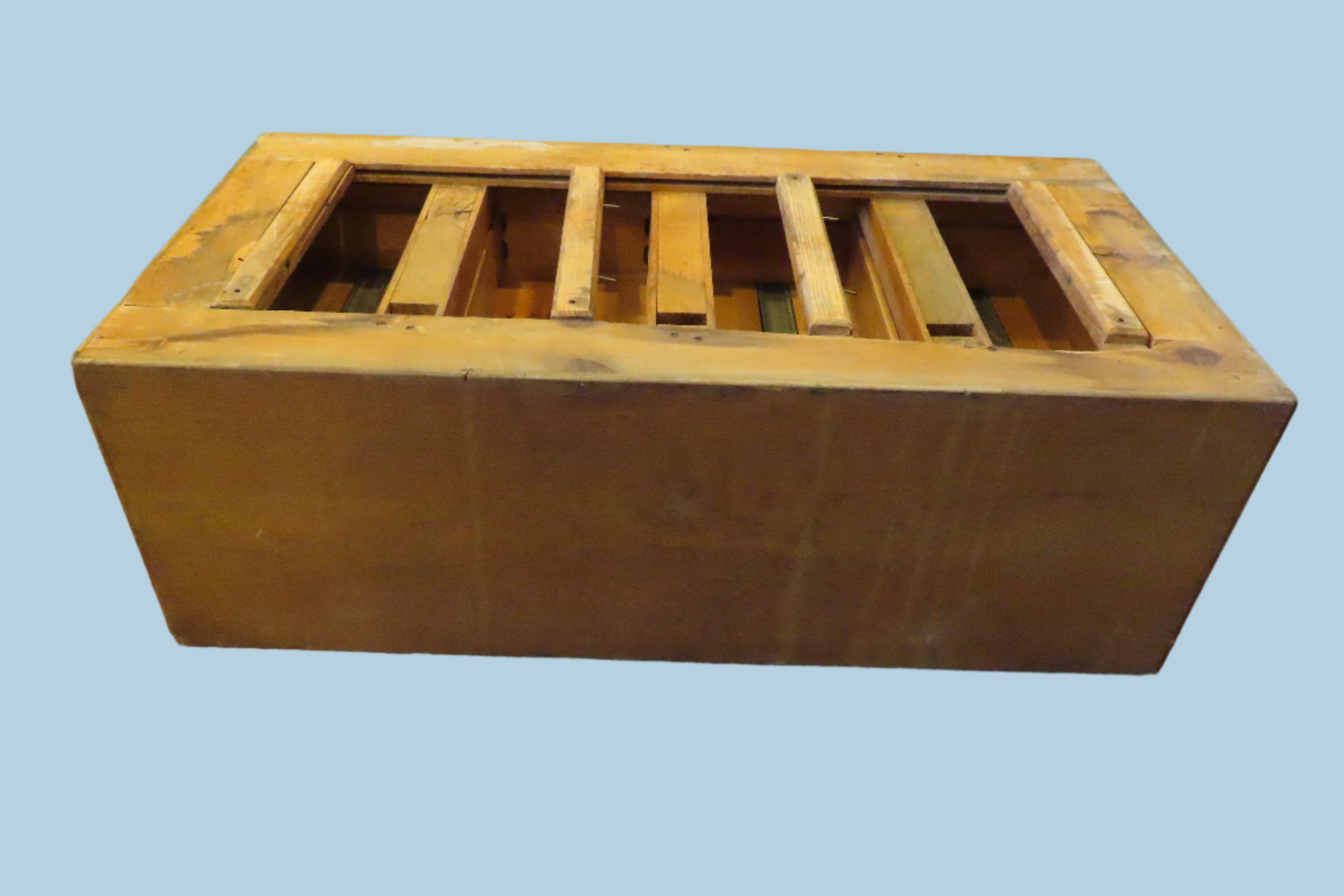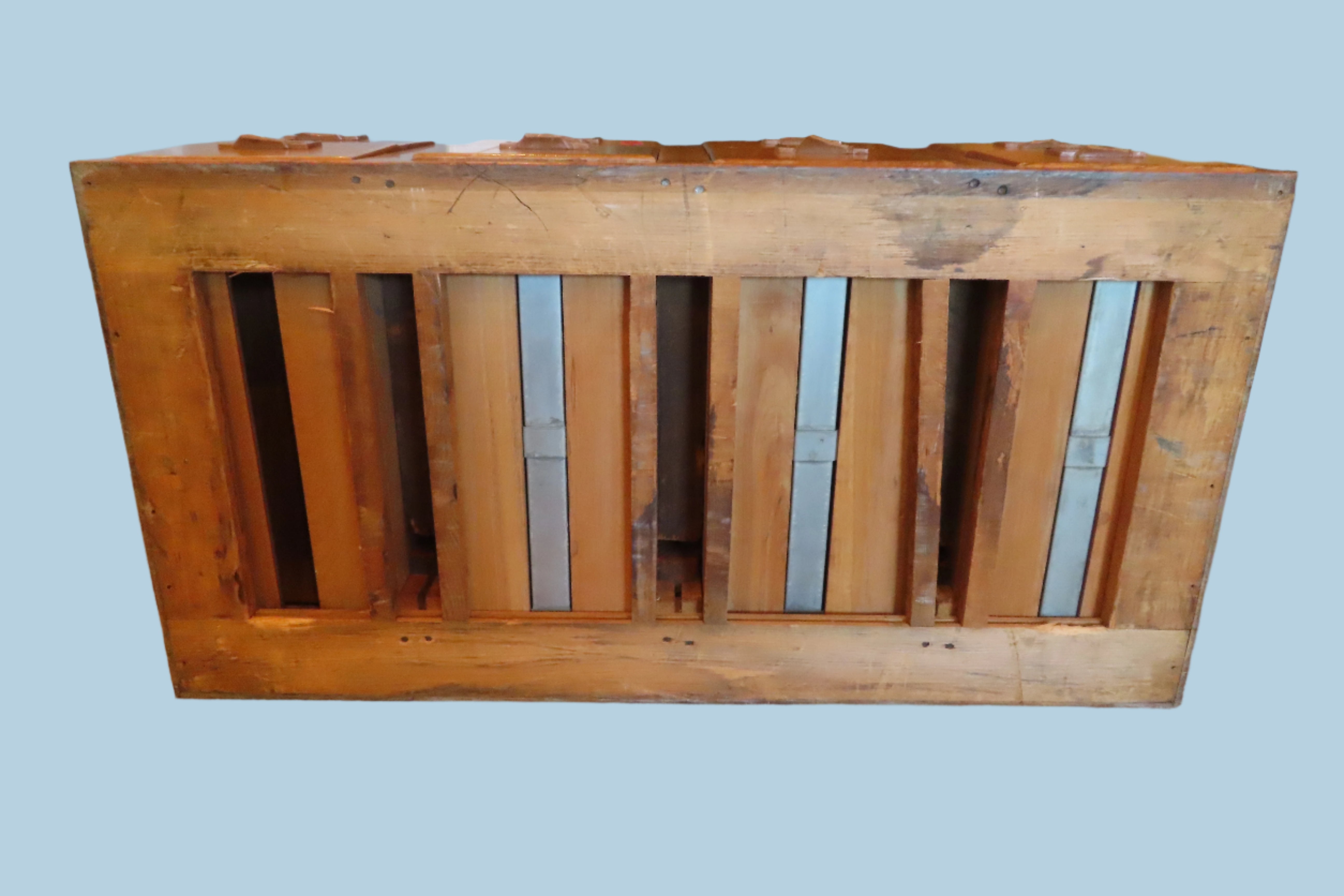 Good condition. Hardware is brown plastic and has some handles broken off, could be easily repaired with correct tools. All drawers open easily.