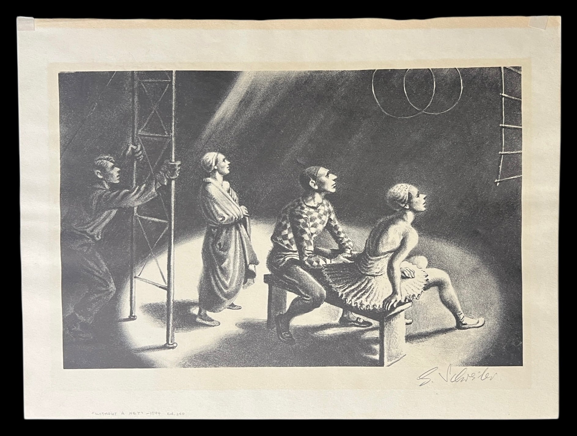 "Without A Net" Georges Shreiber 1944 Ed. 250 Pencil Signed & Titled Litho Print
