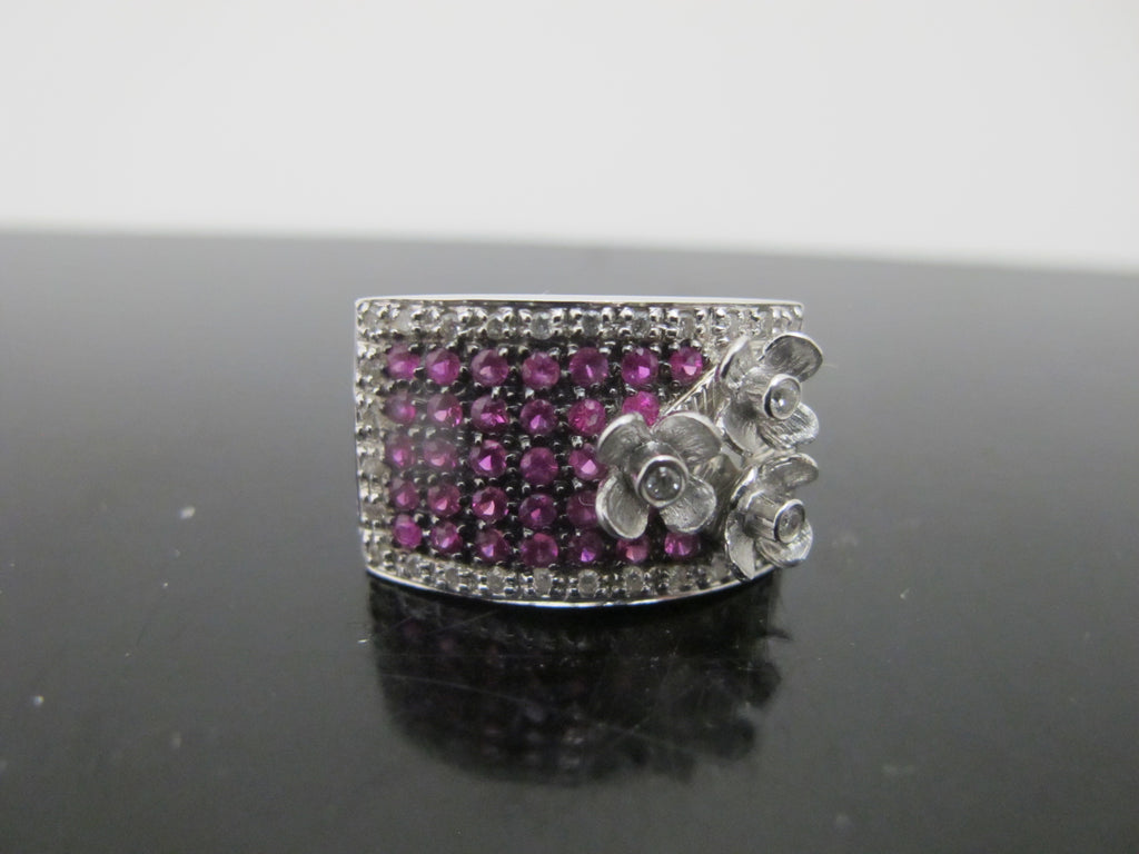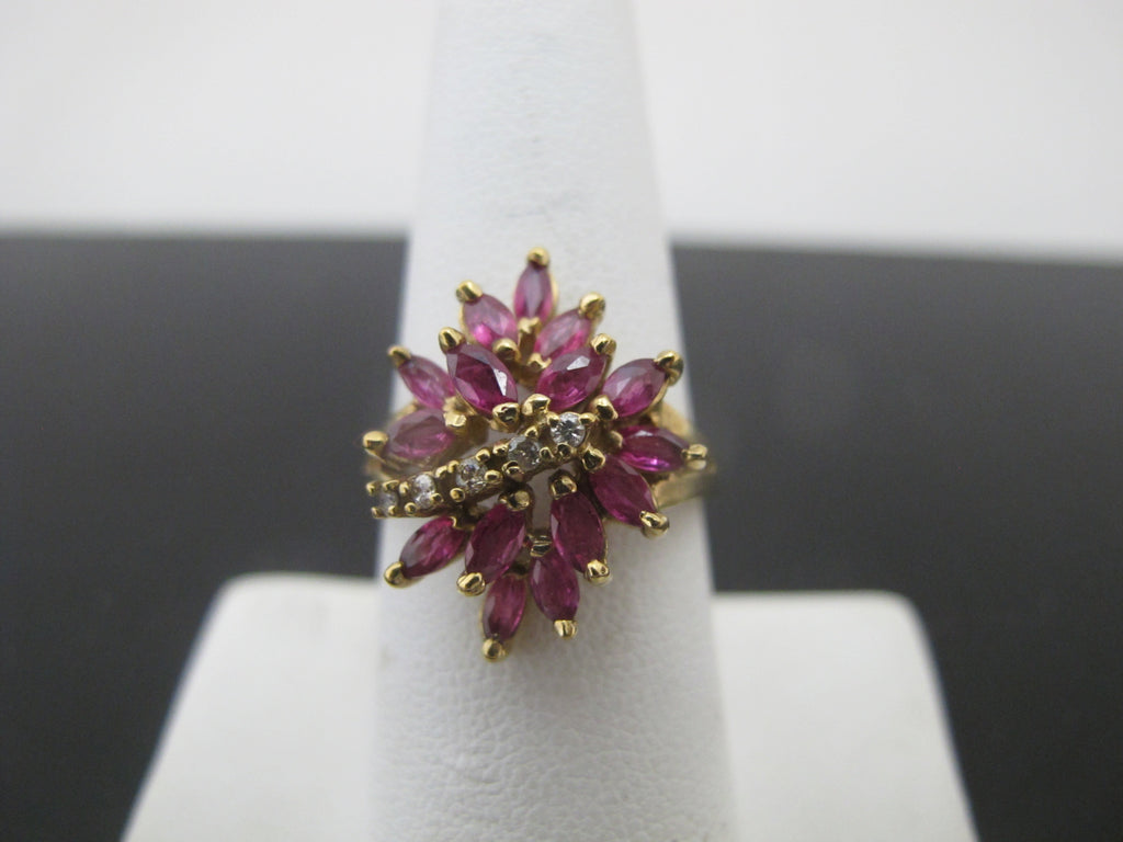 DAINTY Oval Cut Red GARNET Flower Burst 2 Tone 10K Gold Ring
