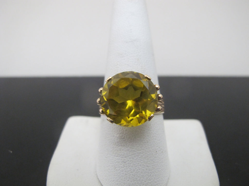CHUNKY Modernist 10k Yellow Gold Filigree Large CITRINE Statement Cocktail Ring