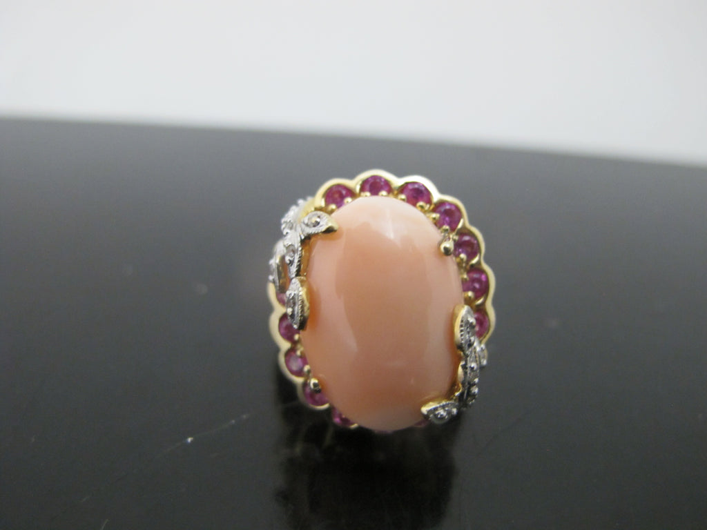 Oval Cut RHODOLITE Garnet DIAMOND Accent 14k Yellow Gold