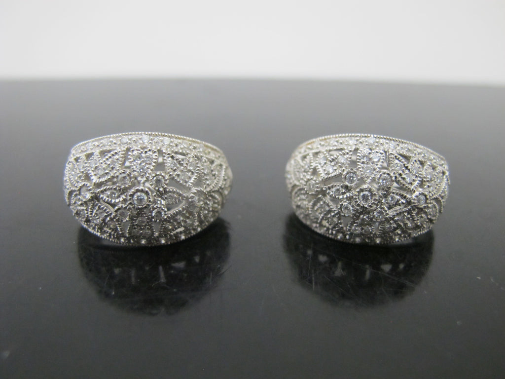 DAINTY Sweet Small DIAMOND 14k White & Yellow Gold Art Deco Style Ring