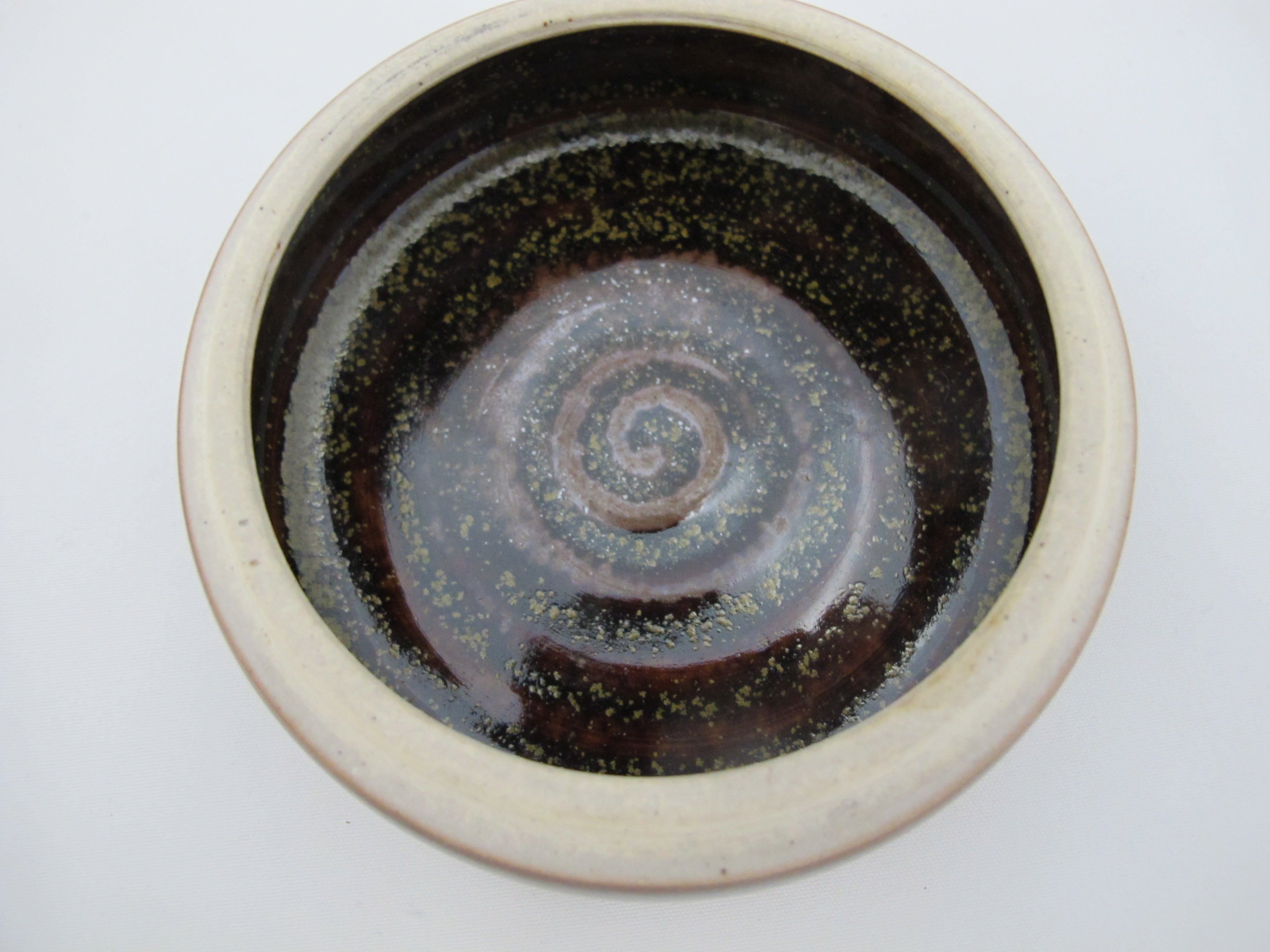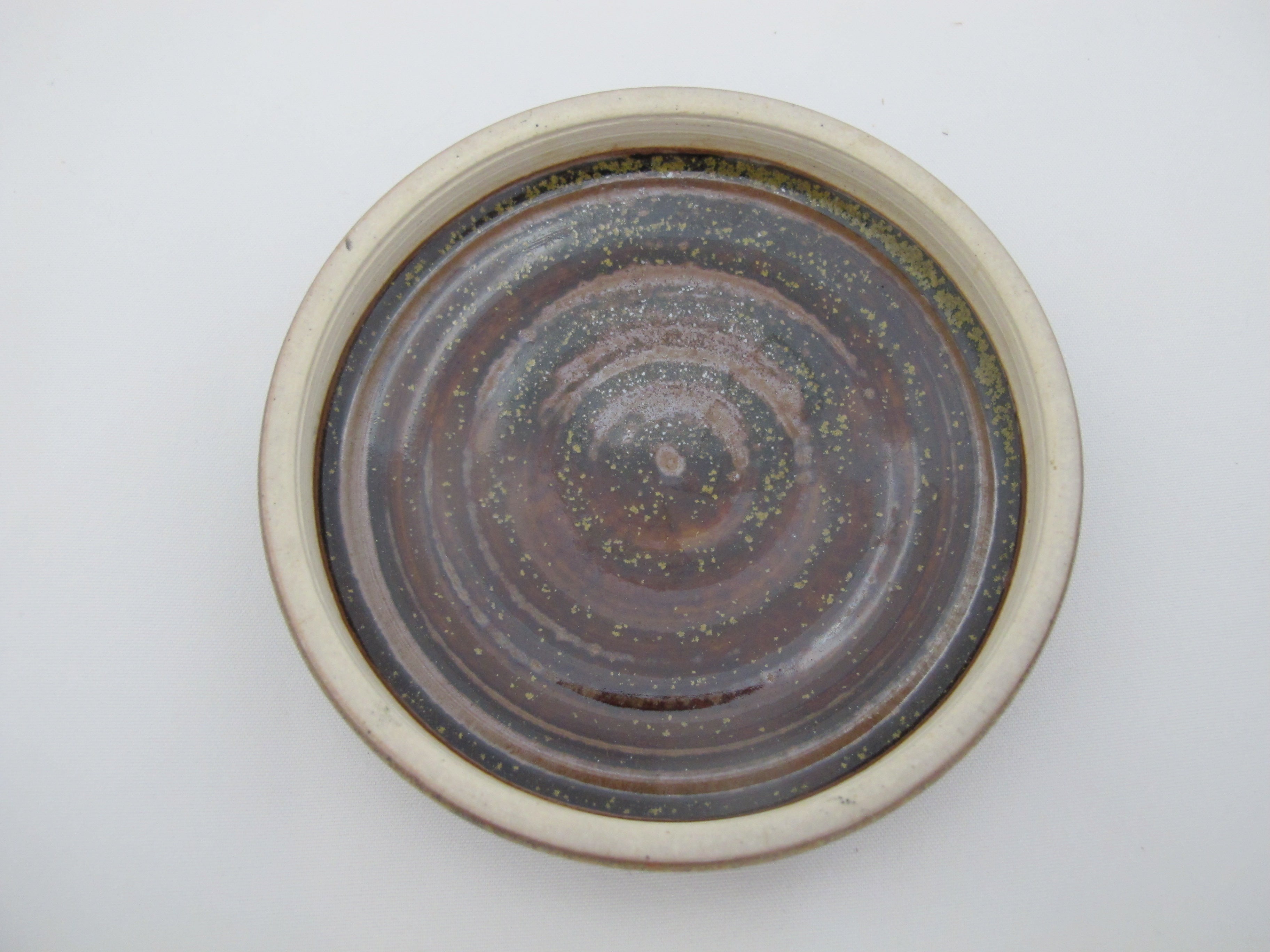 Wally Schwab studio pottery trivet dish. Schwab is a ceramic artist from Oregon known for creating functional stoneware with simple forms and vivid, earthy colors. This is prime example of his master pottery skills.