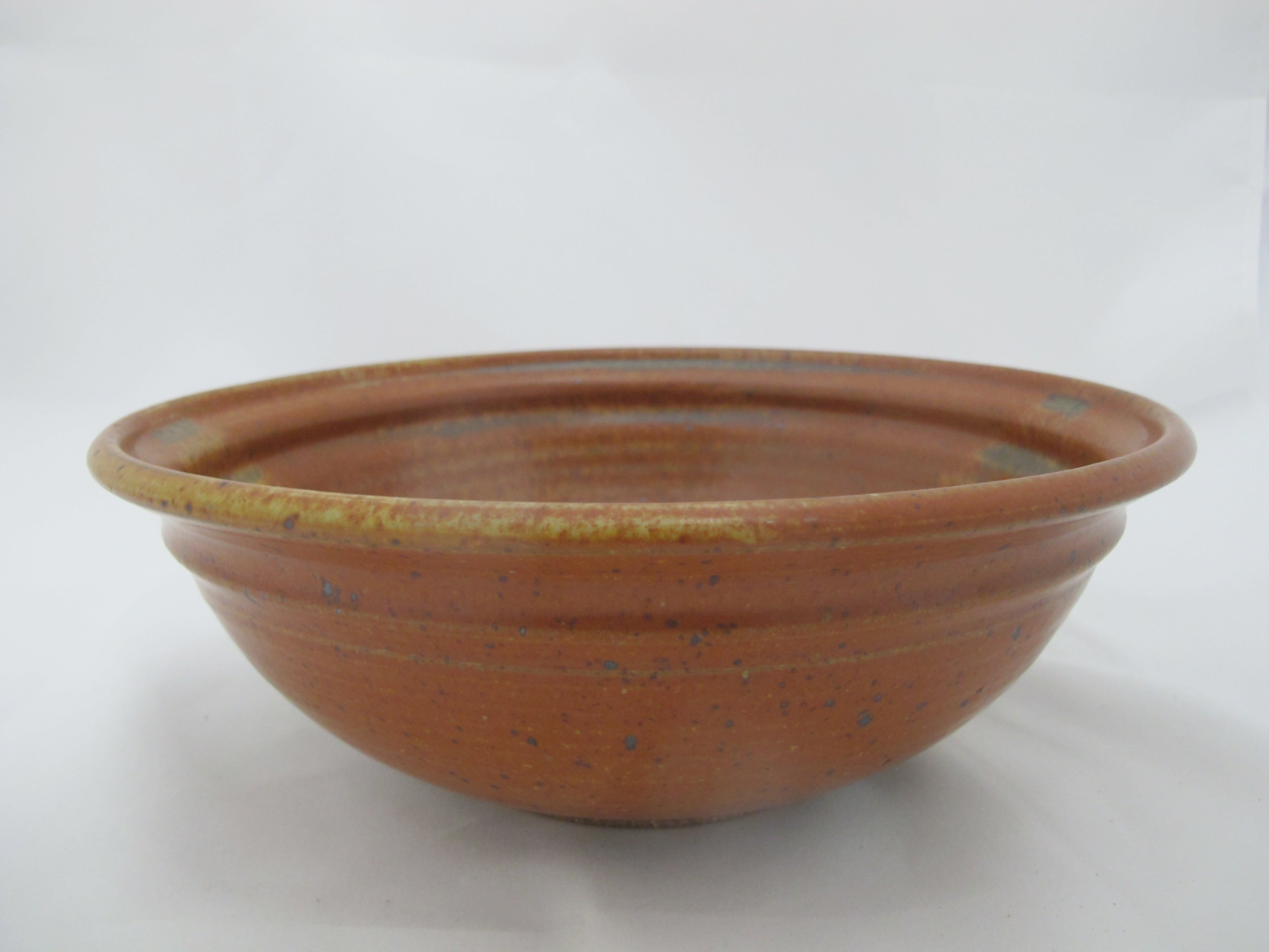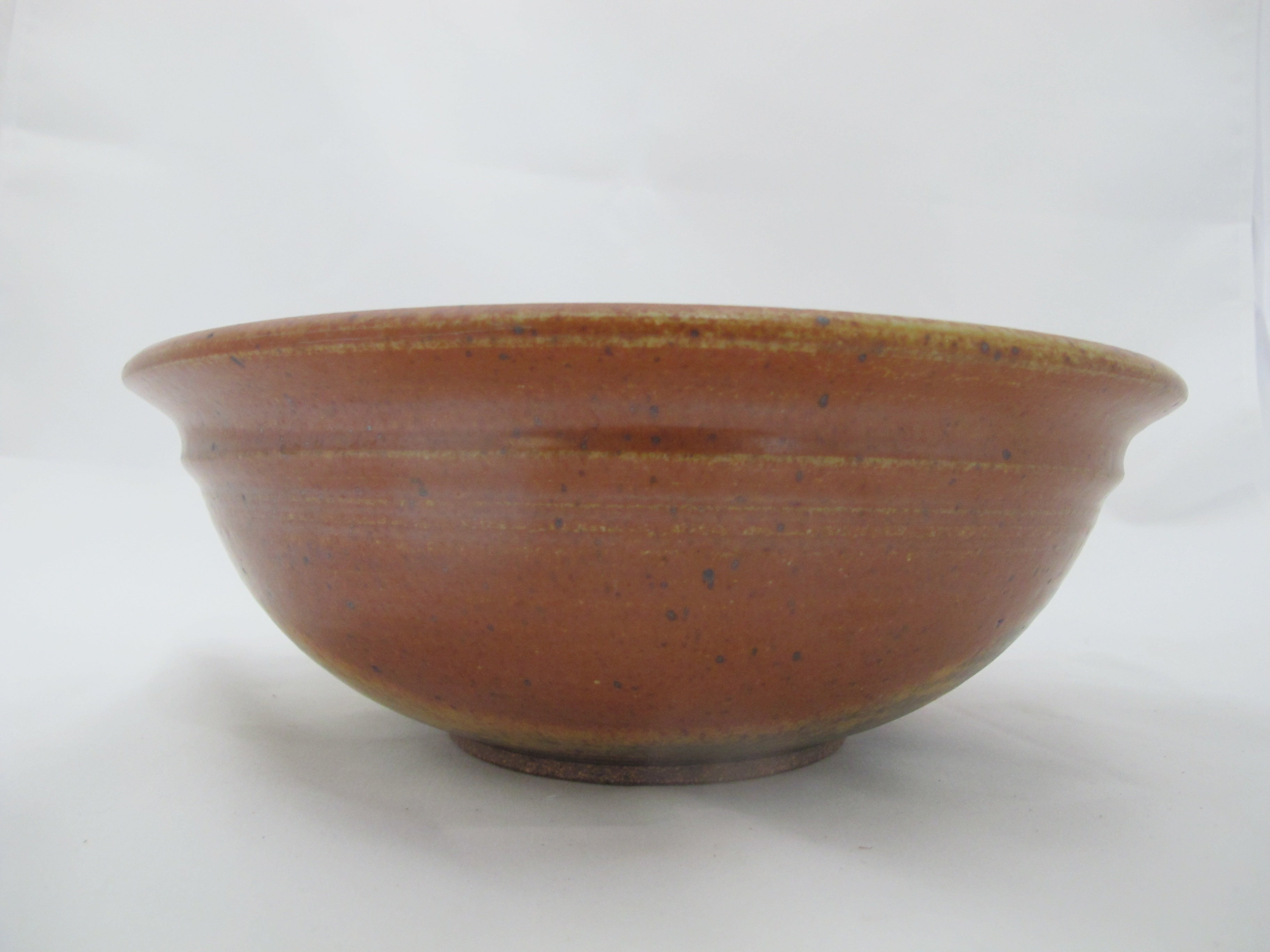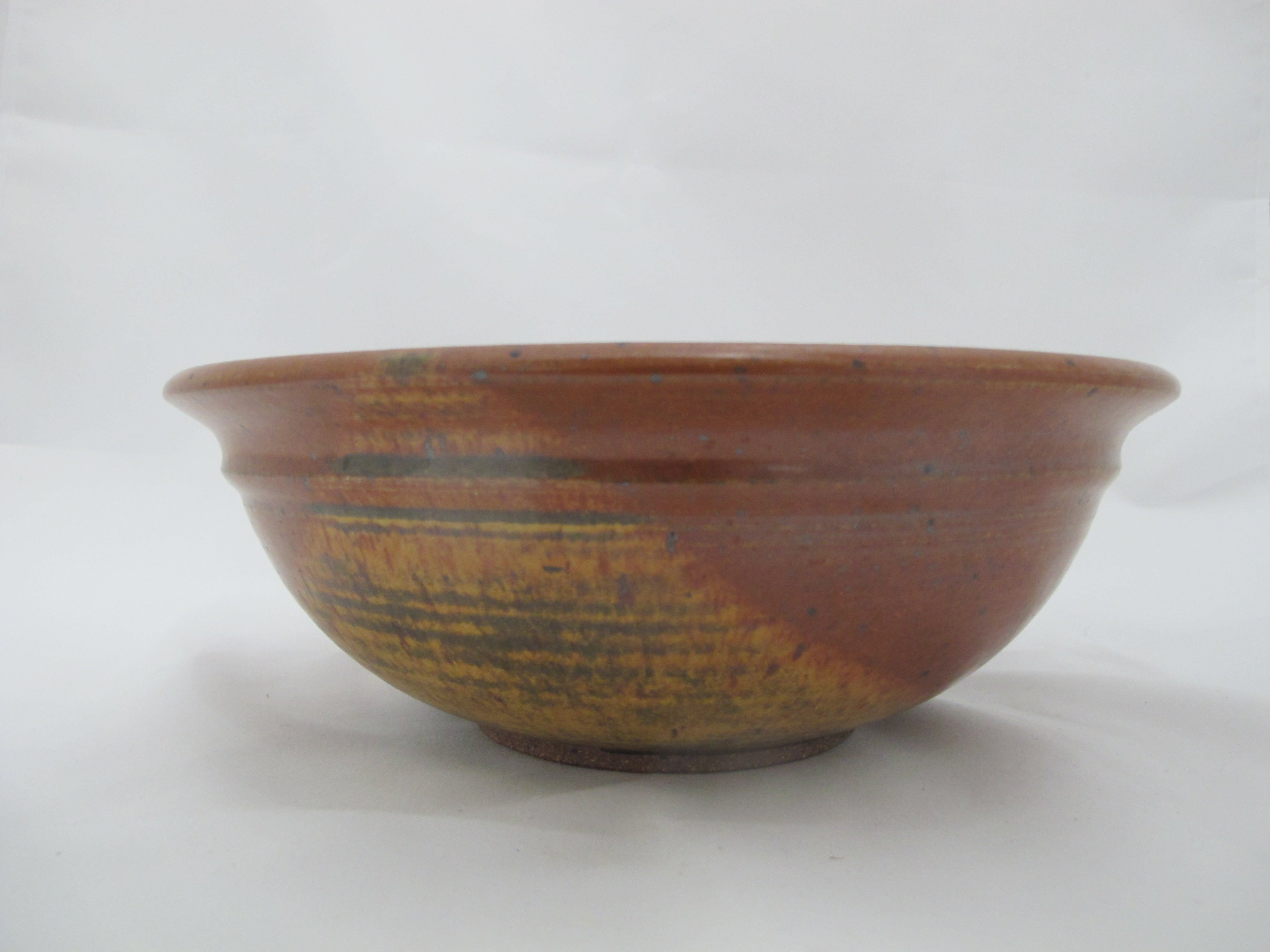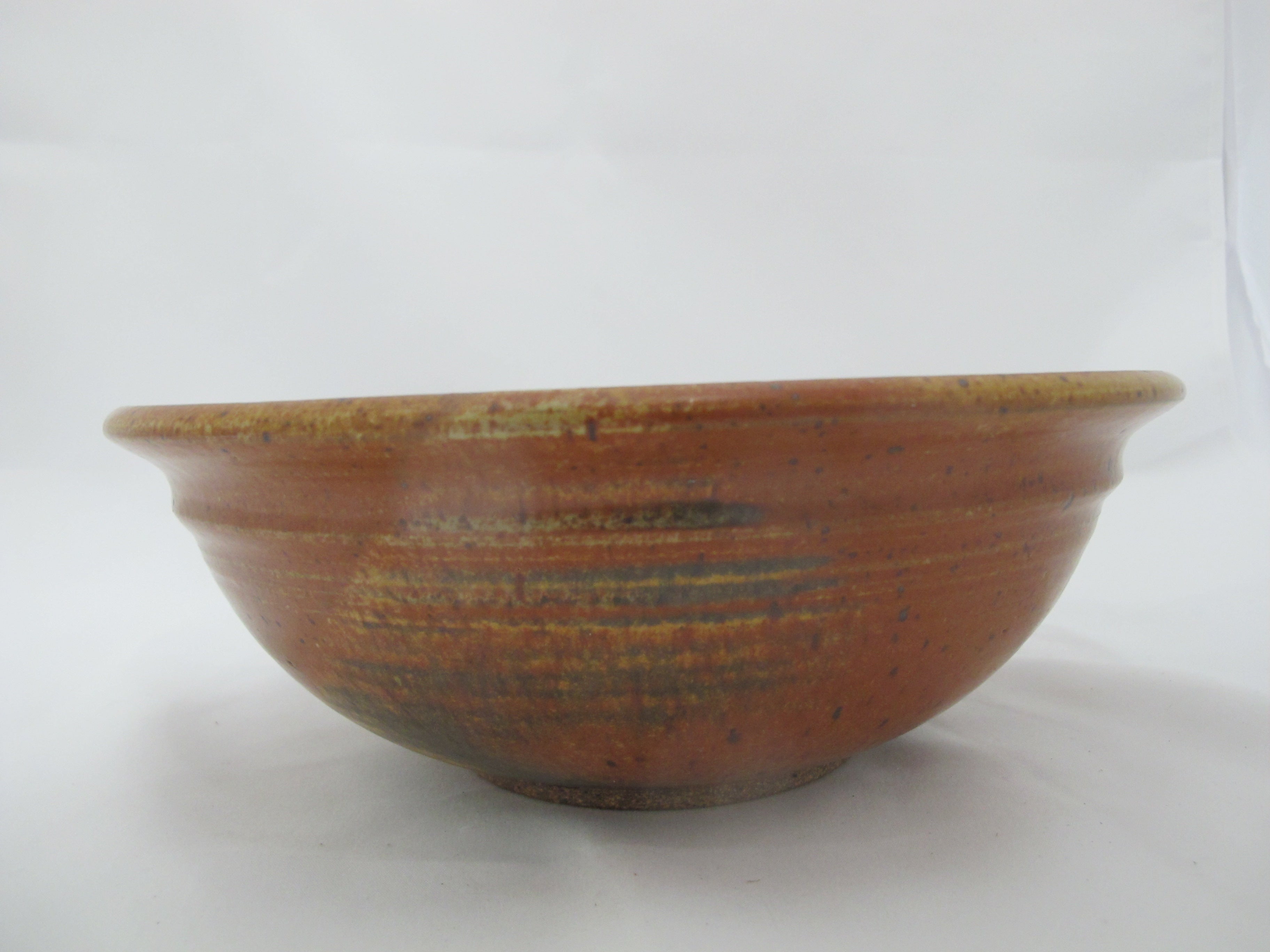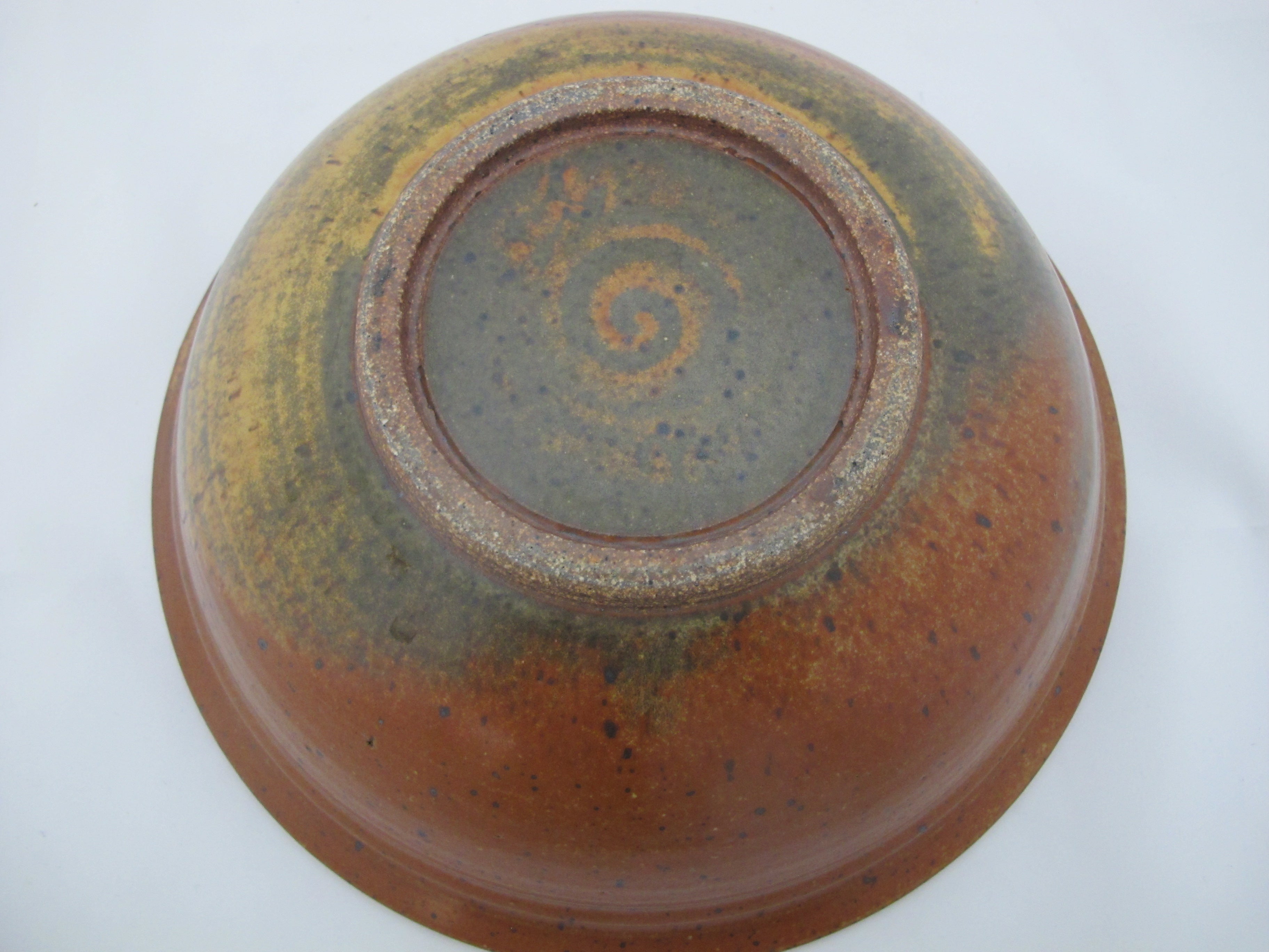 Incredibly well made and beautiful Wally Schwab studio pottery mixing bowl. Schwab is a prominent ceramic artist from Oregon known for creating functional stoneware with simple forms and vivid, earthy colors. This definitely one of those pieces, most likely dating from the 1980's.