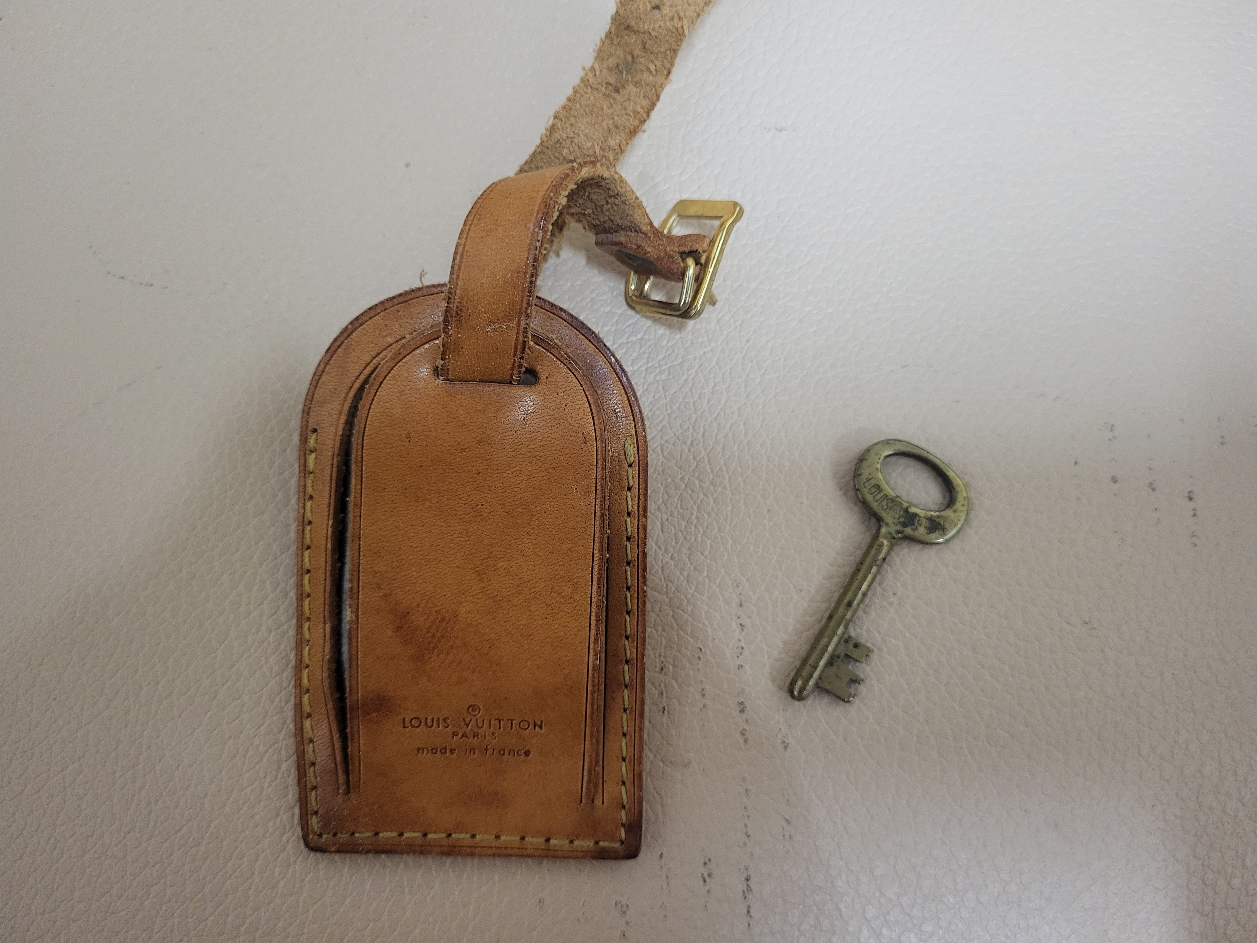 Authentic Louis Vuitton valise, The Bisten 55. Classic and beautiful Louis Vuitton monogram hard case with original key and luggage tag. Brown coated canvas with brass hardware and leather trim embellishments. The LV mono found on brass lock and clasp mounts, also marked 'Made in France' with number 159057 on lock and key. Louis Vuitton label with number attached inside case. Overall, very good condition. This was lovingly used by it's owner with some minor scuffing, throughout, [;lease review photographs